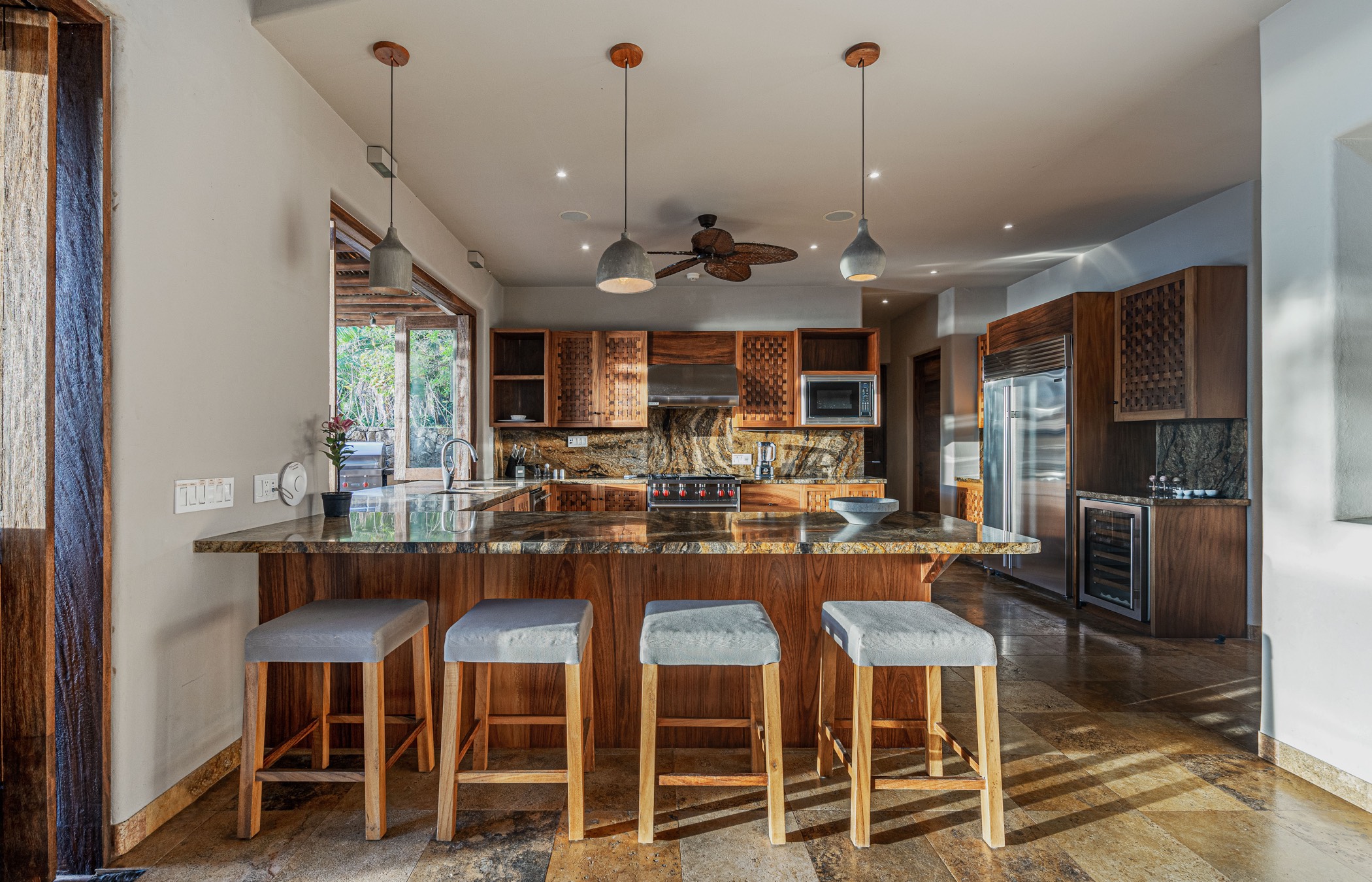 Your stay at Casa Paraiso is enhanced by the daily services of a dedicated cook who crafts delightful breakfasts and lunches to your liking (please note groceries and a shopping fee are extra). Daily housekeeping ensures a pristine environment throughout your stay, while the included golf cart provides a fun way to explore the surrounding area.