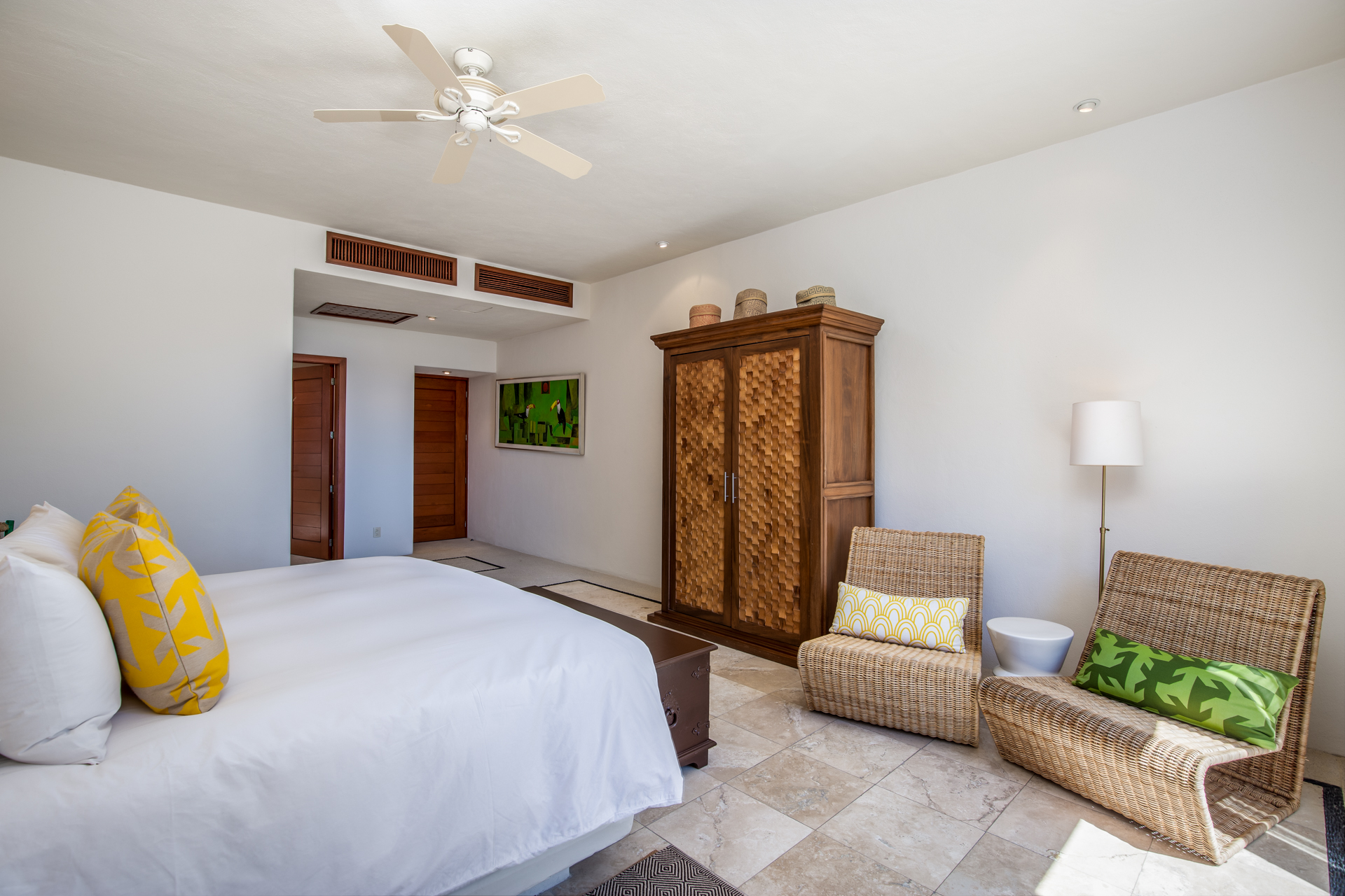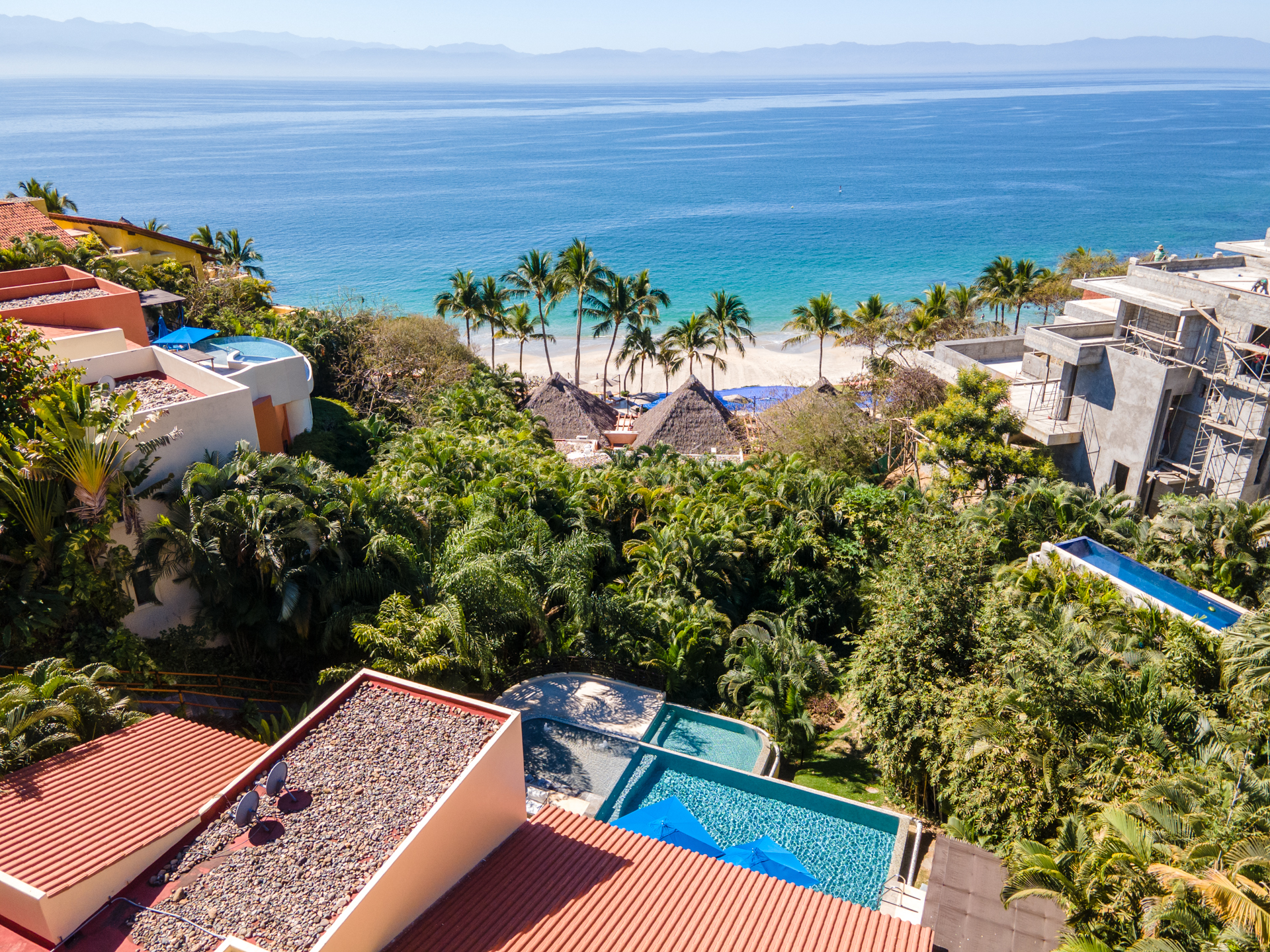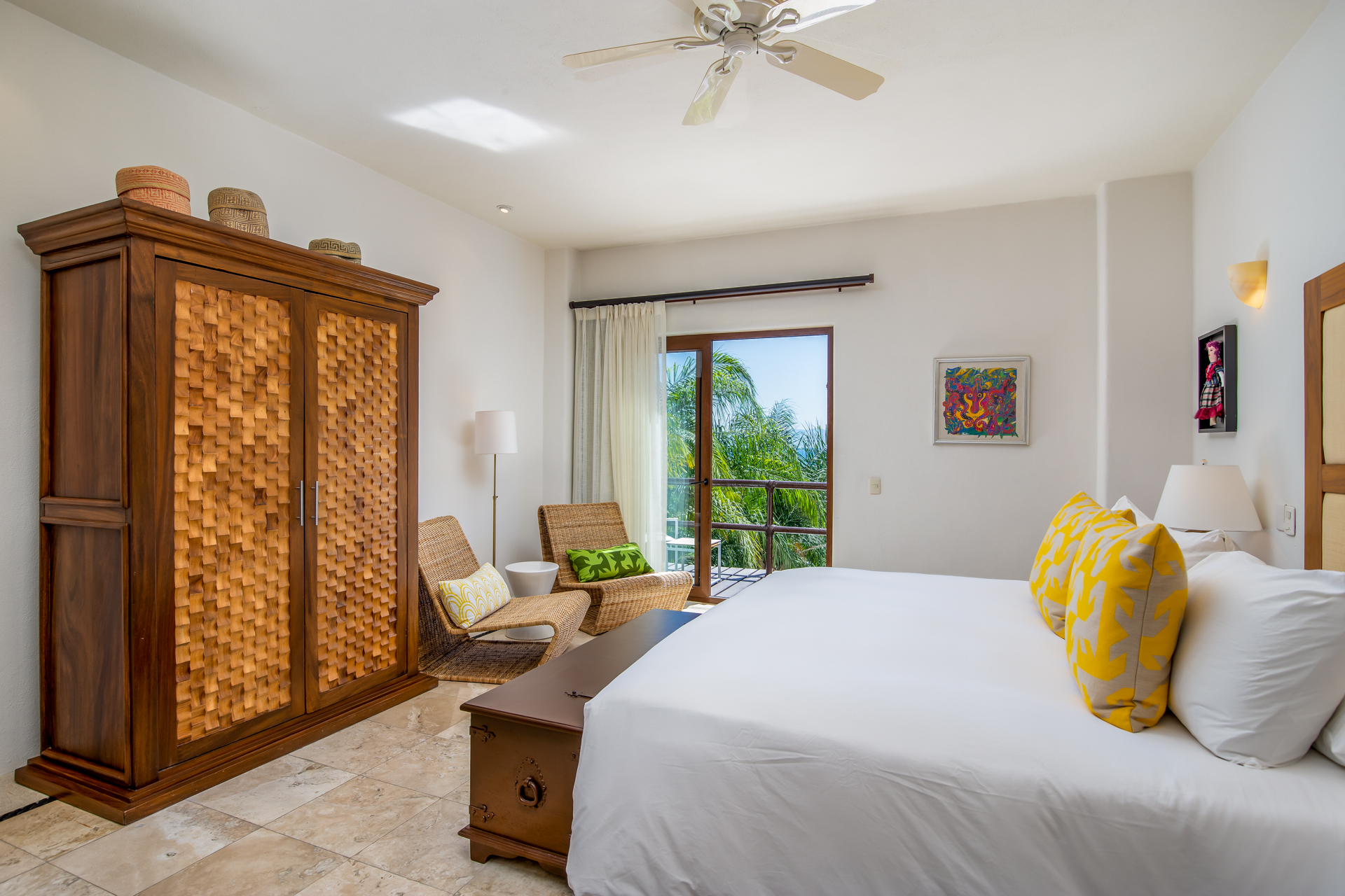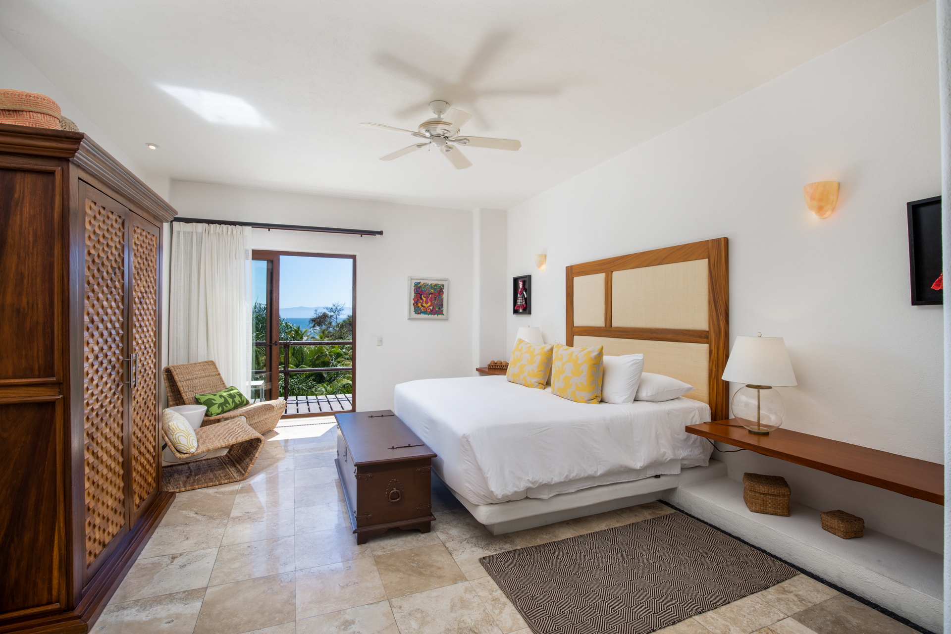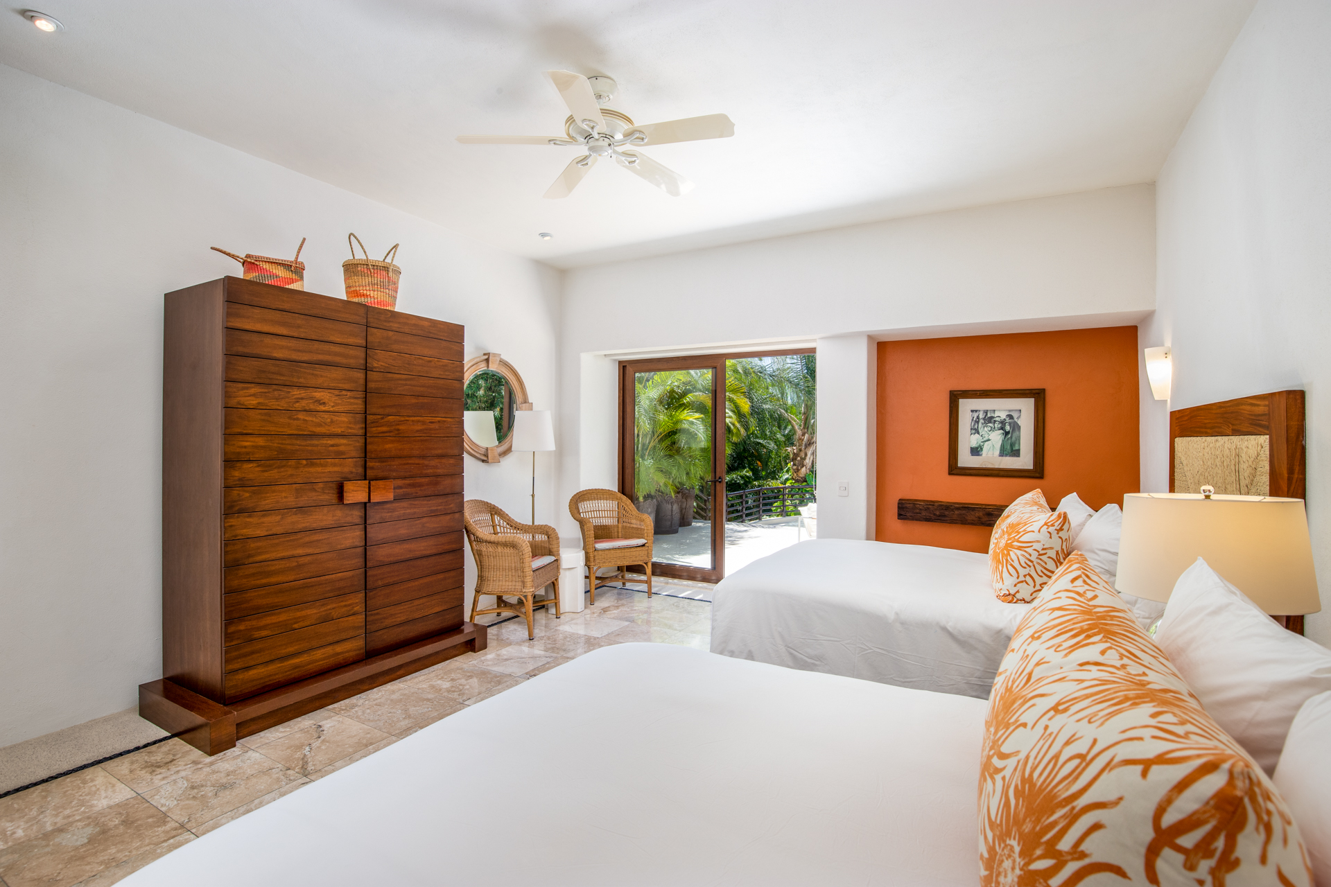 Step into the luxurious Casa Patio, nestled in the heart of the gated Real Del Mar resort. Designed for families, this villa becomes a paradise away from home. Upon entering, you’ll instantly notice the high ceilings, which, coupled with vast windows, let sea breezes dance through. A tranquil palette of calm blues mirrors the Riviera Nayarit’s serene ambiance. As you step outside, tropical palms embrace the sprawling infinity pool and jacuzzi, setting a peaceful backdrop.
