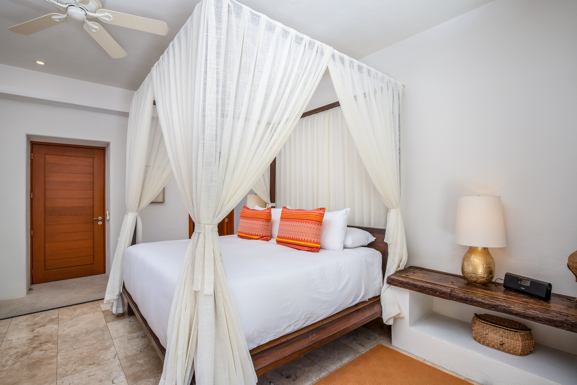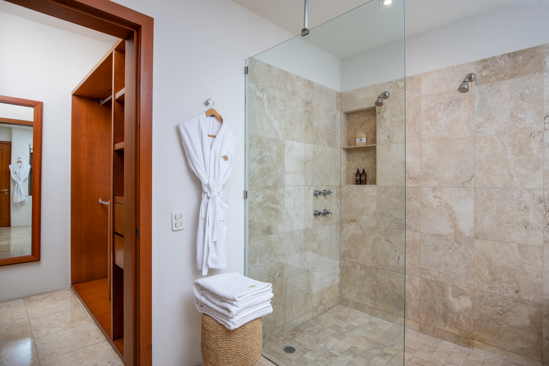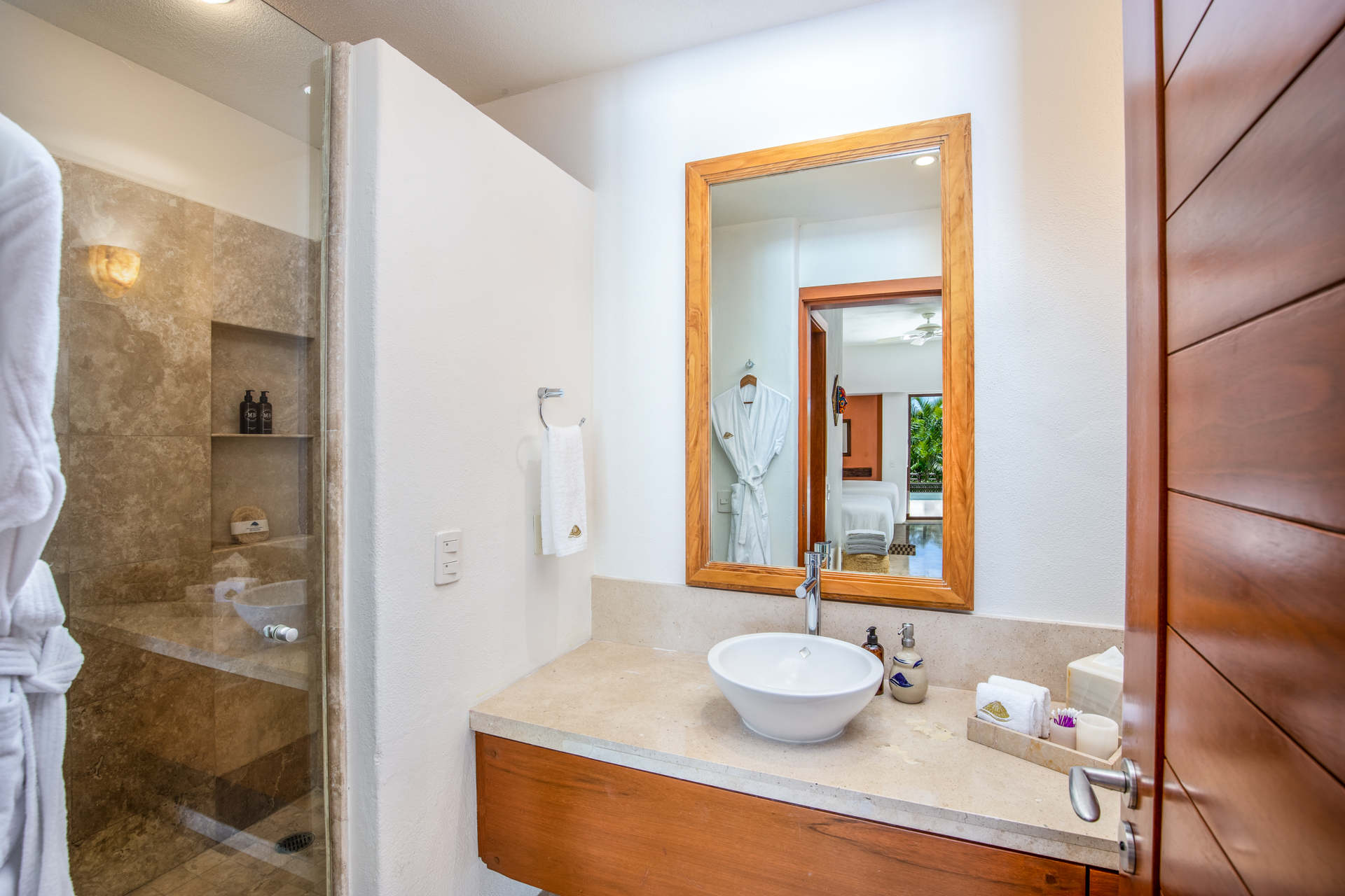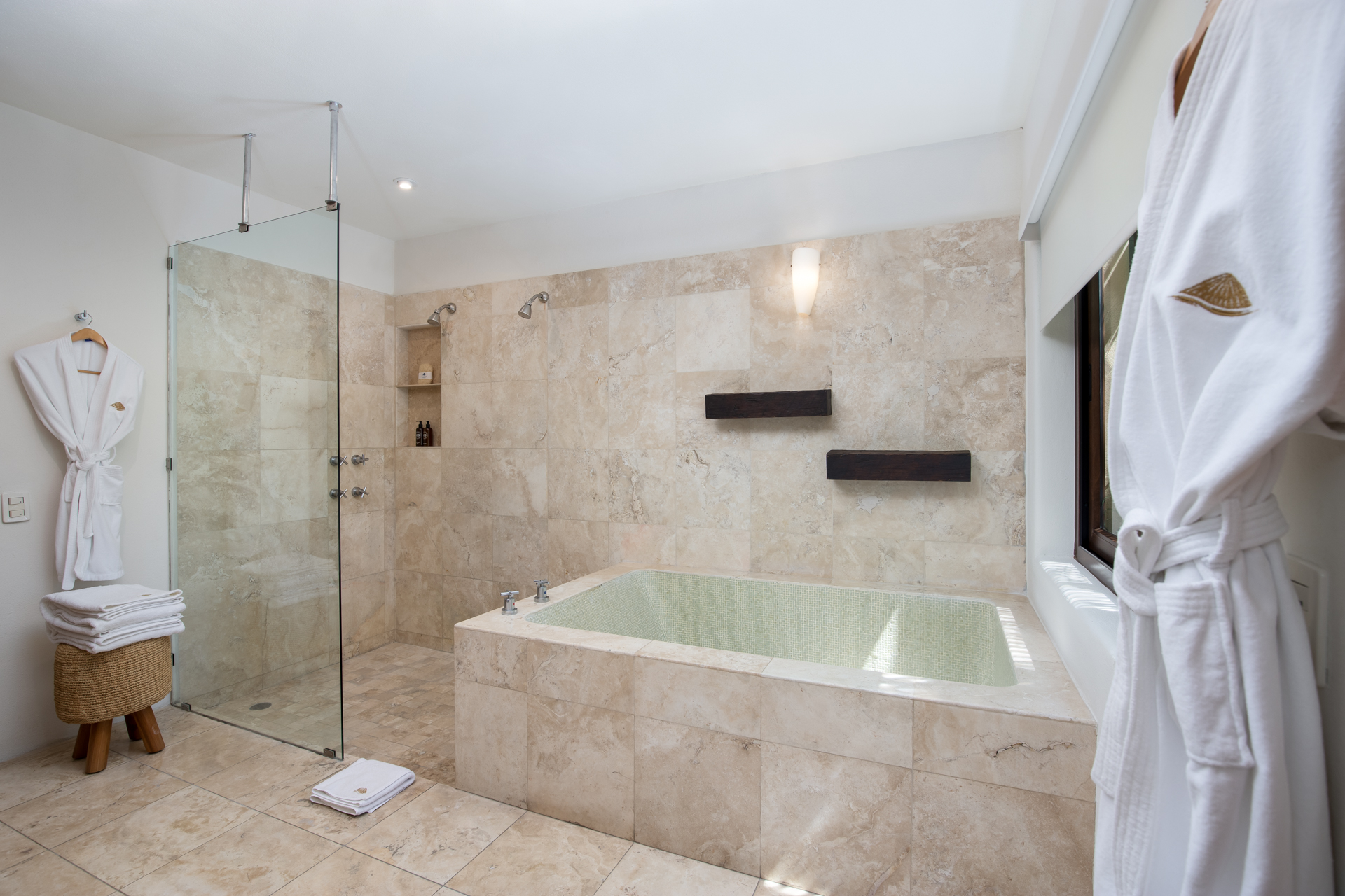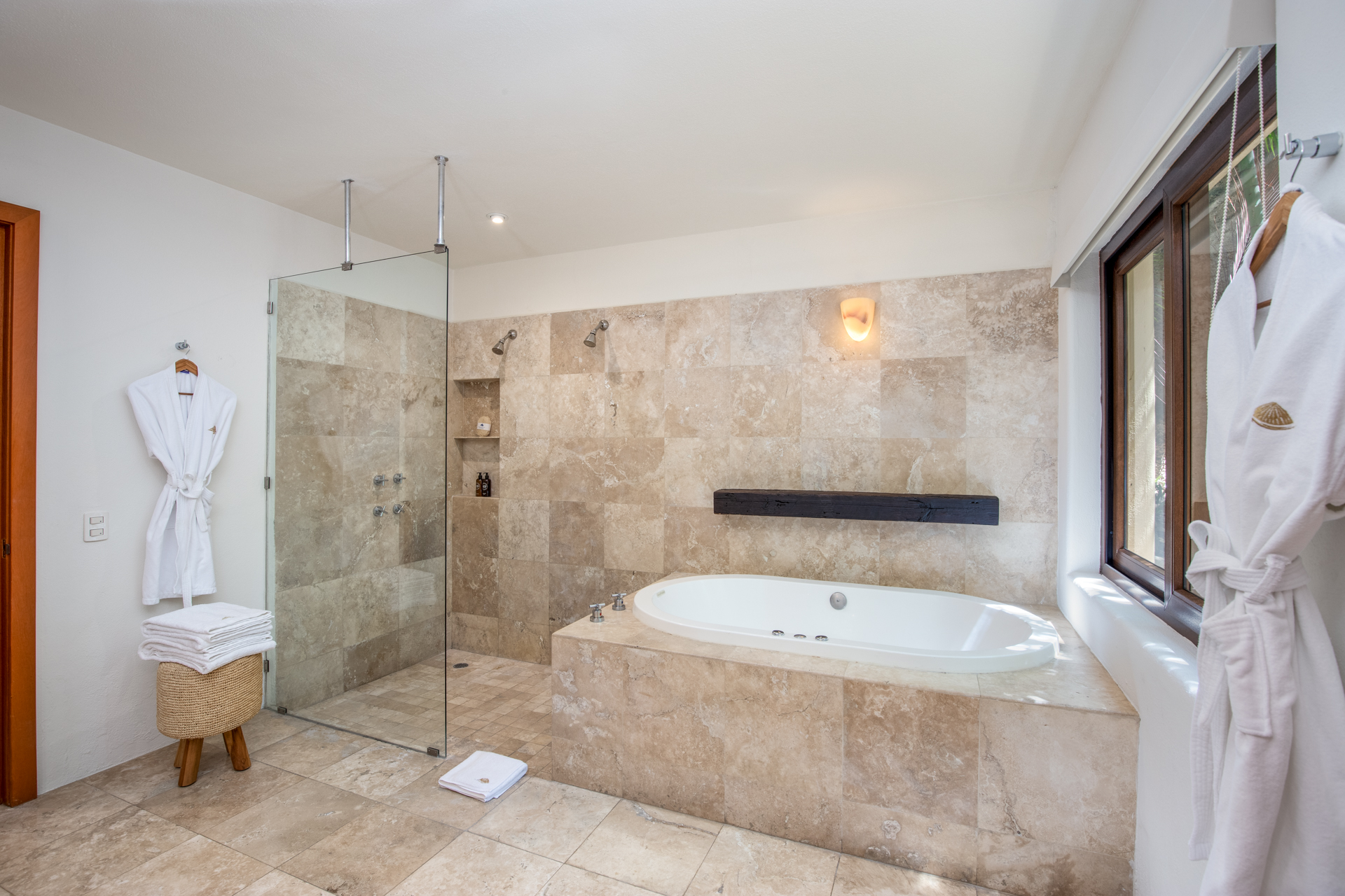 Every corner of Casa Patio exudes comfort: four opulent suites welcome guests, each adorned with essential toiletries and plush bathrobes. Moreover, a well-equipped media room promises hours of entertainment. The modern kitchen, boasting high-end appliances, offers a dining area that comfortably accommodates all guests. But you’ll feel right at home.