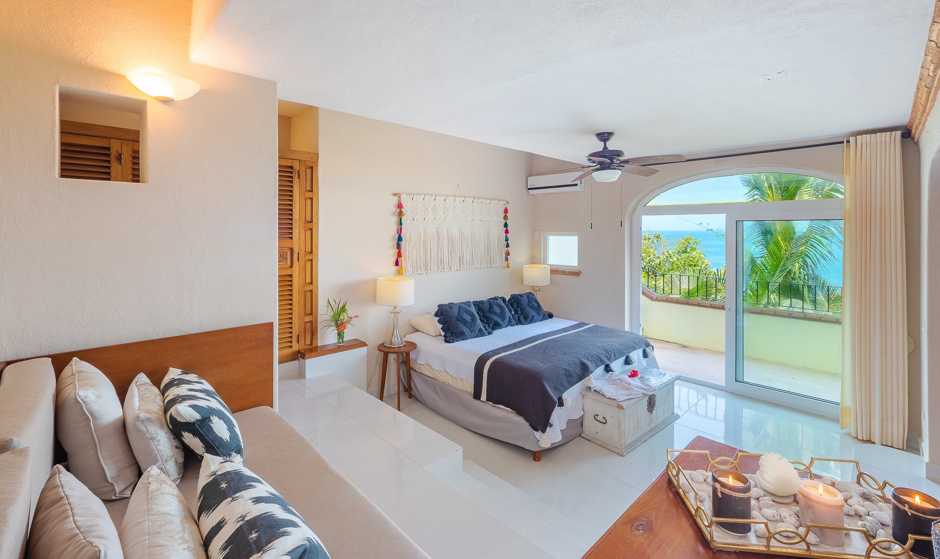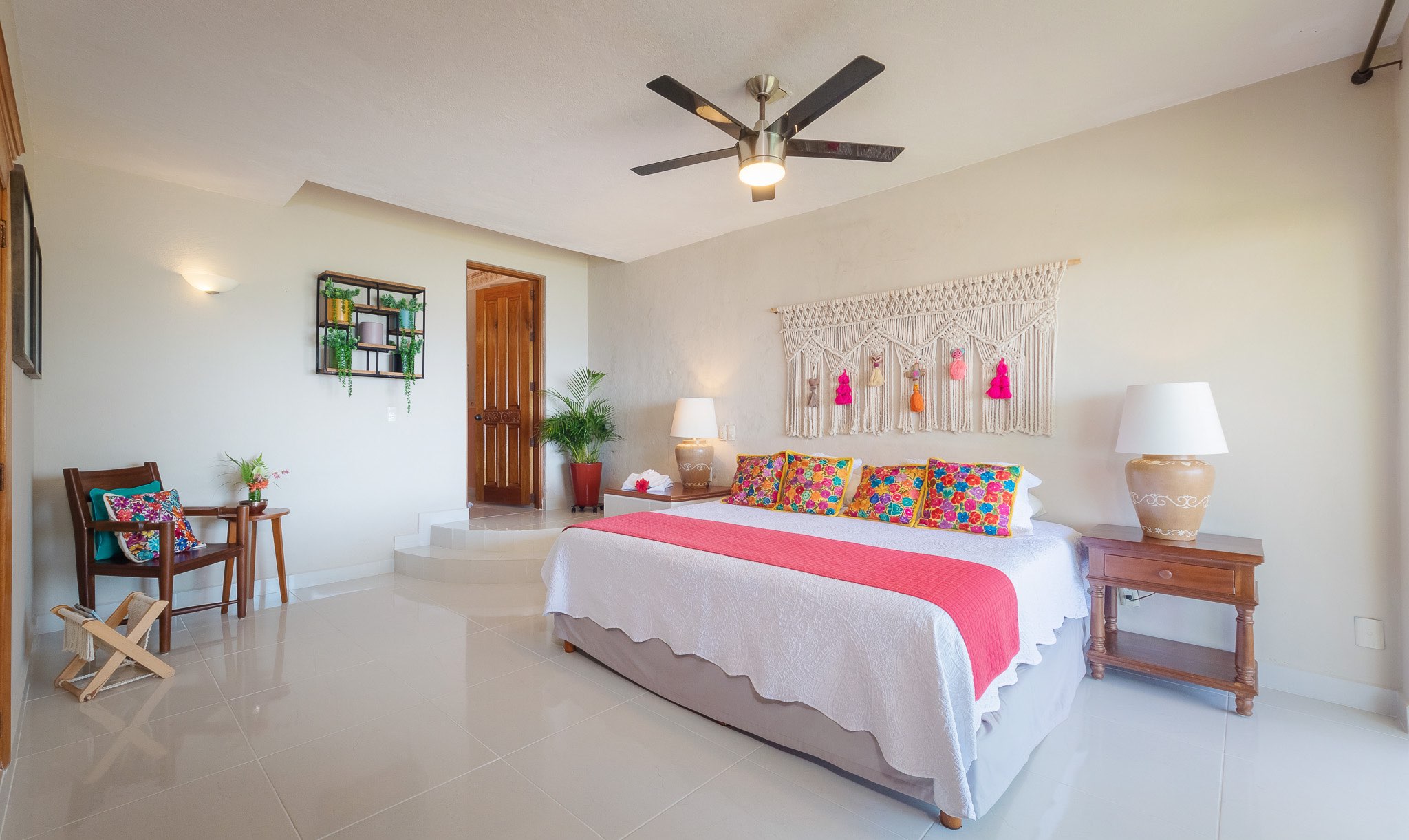 Boho Room (Lower Level): King size bed, Partial Ocean view, En-suite bathroom with shower, Safe and closet, Bathrobes