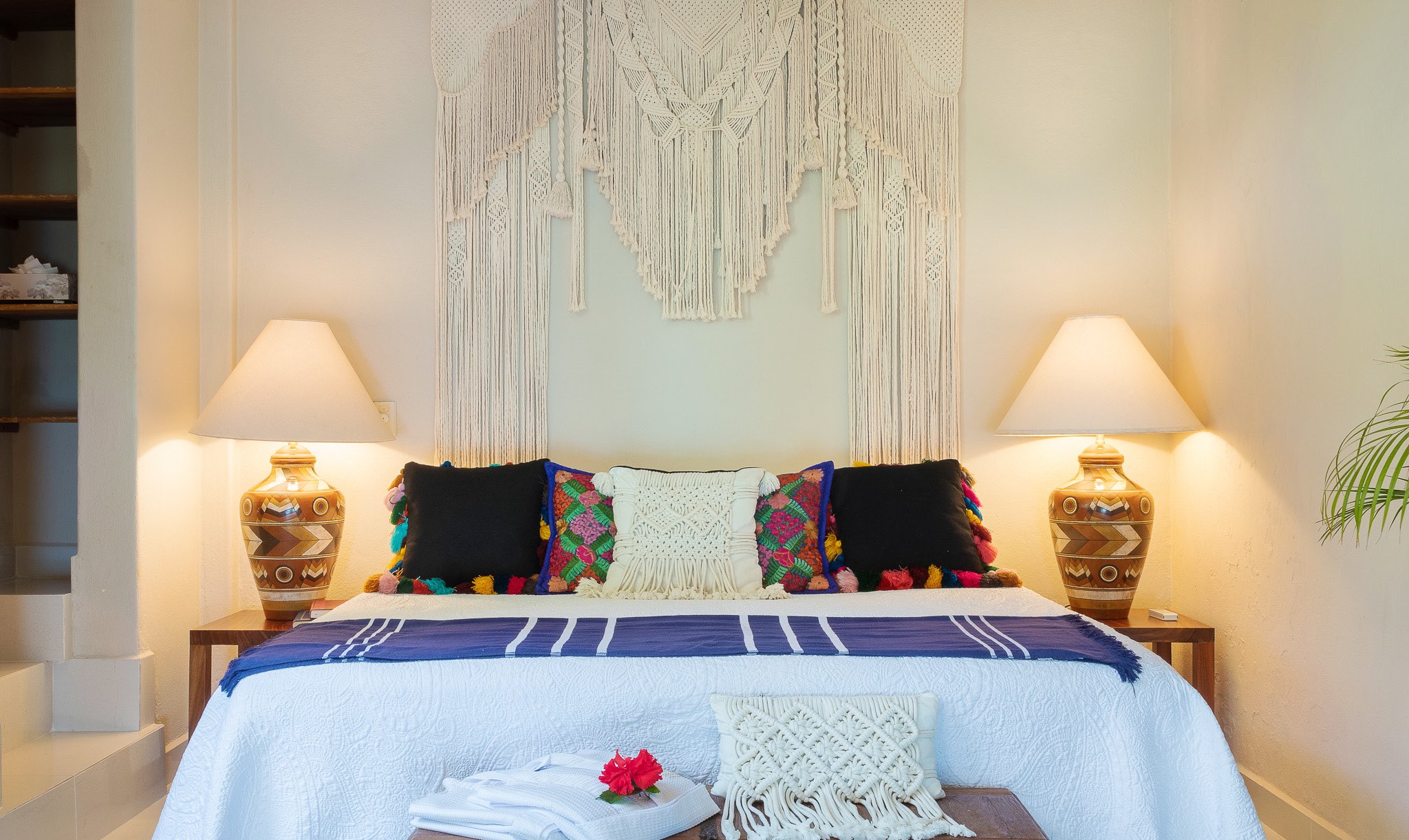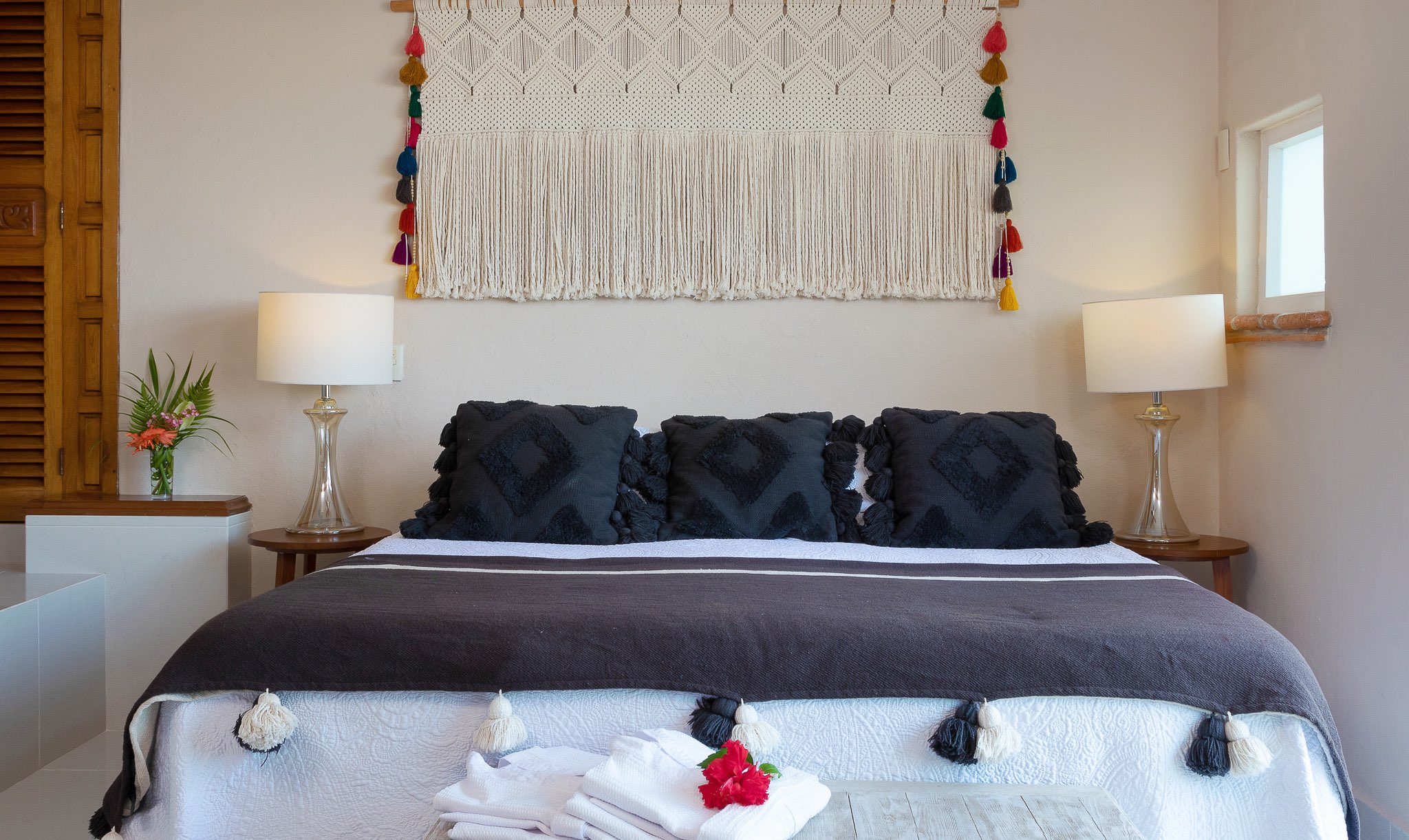 The lower level continues the sense of retreat, with Bohemia, the Boho Room, and the Bohemian Suite each offering king-size beds, partial ocean views, and ensuite bathrooms. The Bohemian Suite also includes a living area, creating a more residential feel for guests seeking extra space.