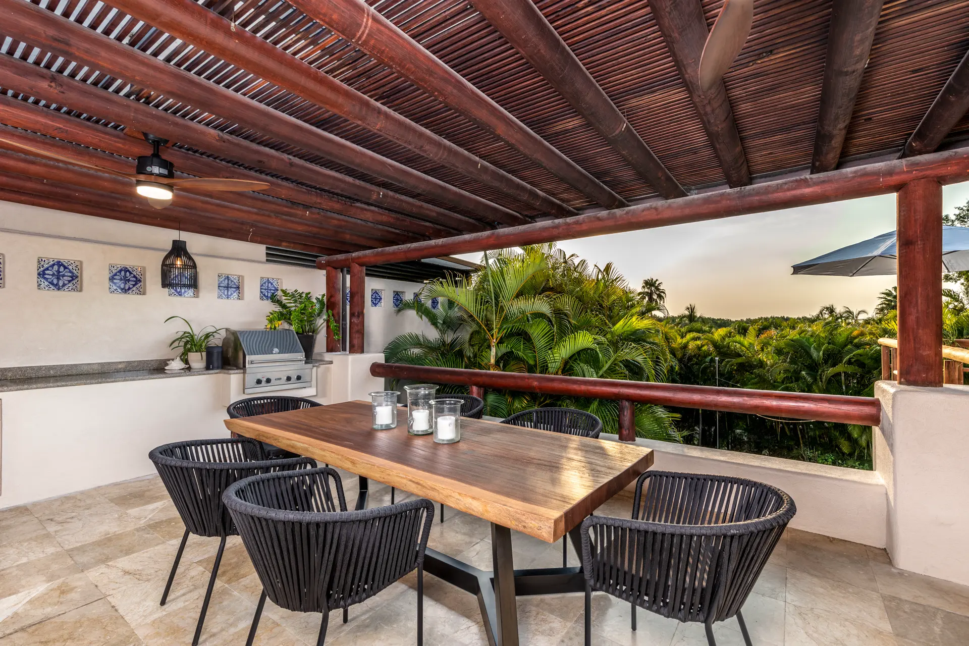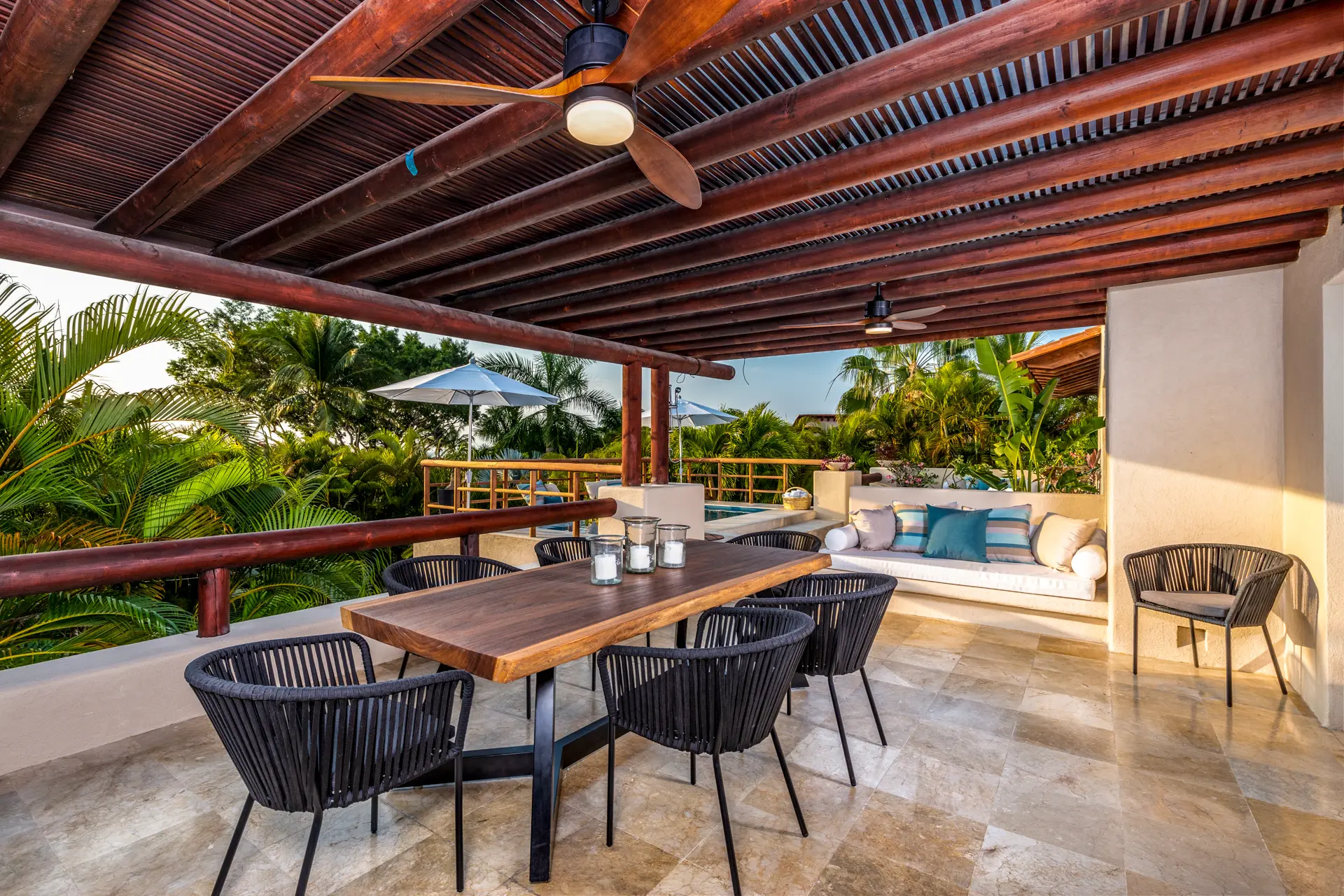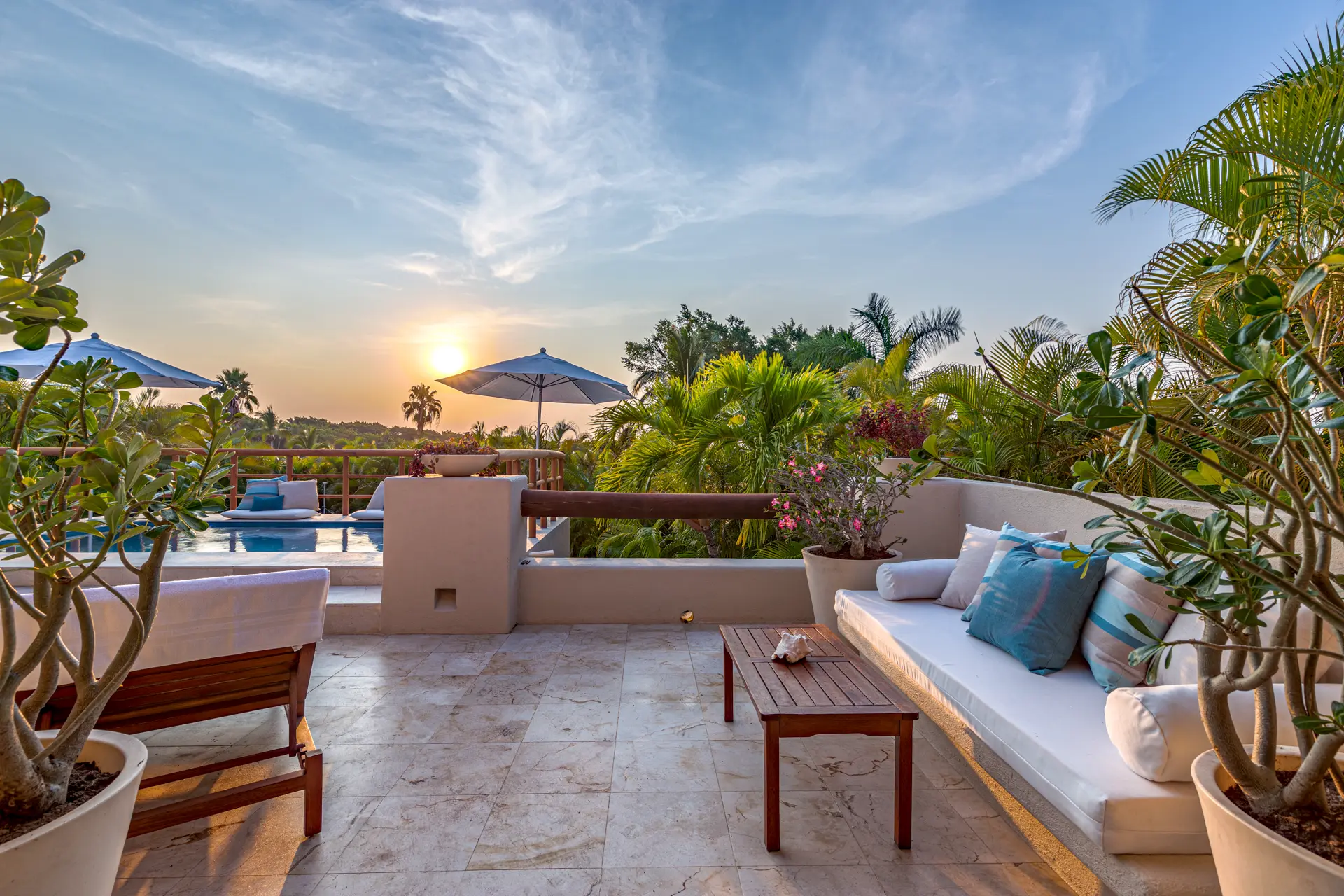 The outdoor amenities at Casa Rayo De Sol are designed to maximize your enjoyment of the beautiful surroundings. The villa features spacious covered and uncovered terrace areas, a lovely private pool with seating, and multiple relaxing outdoor areas. Enjoy the heated private pool, garden areas, and spectacular sunsets with your family and friends.