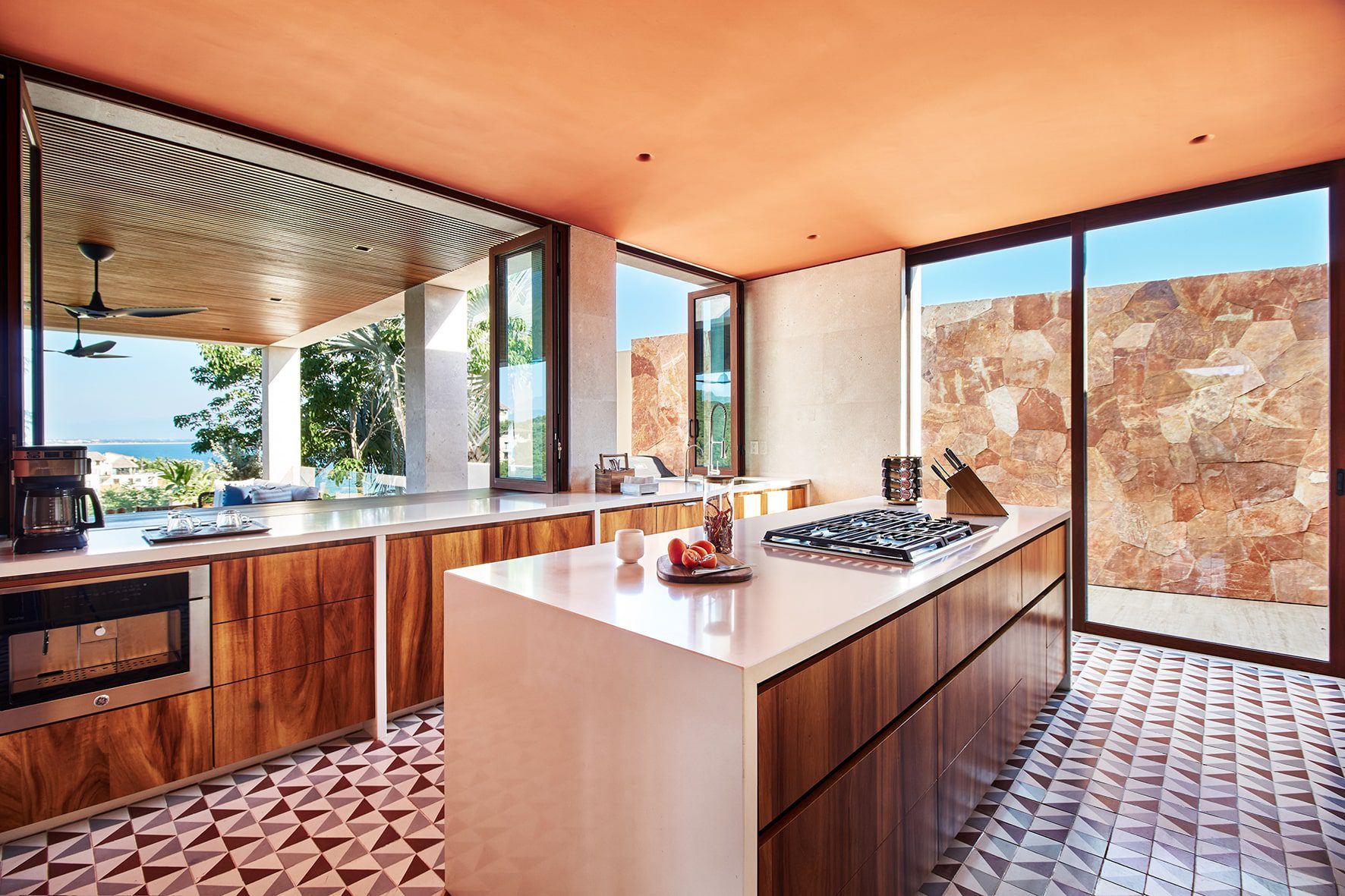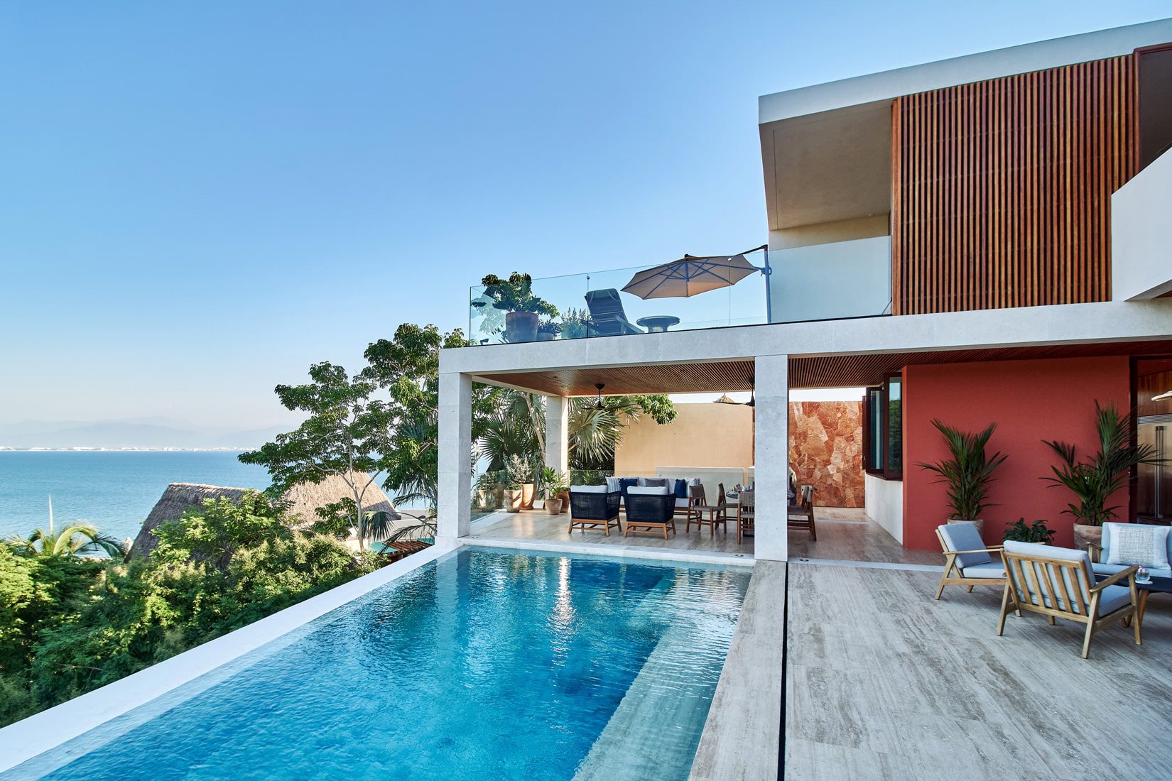 Perched atop a serene hill, Casa Sirenas Real del Mar effortlessly blends modern minimalism with traditional Mexican elegance. Here, the majestic Pacific Ocean meets the iconic Sierra Madre Mountains, providing guests with unparalleled views.