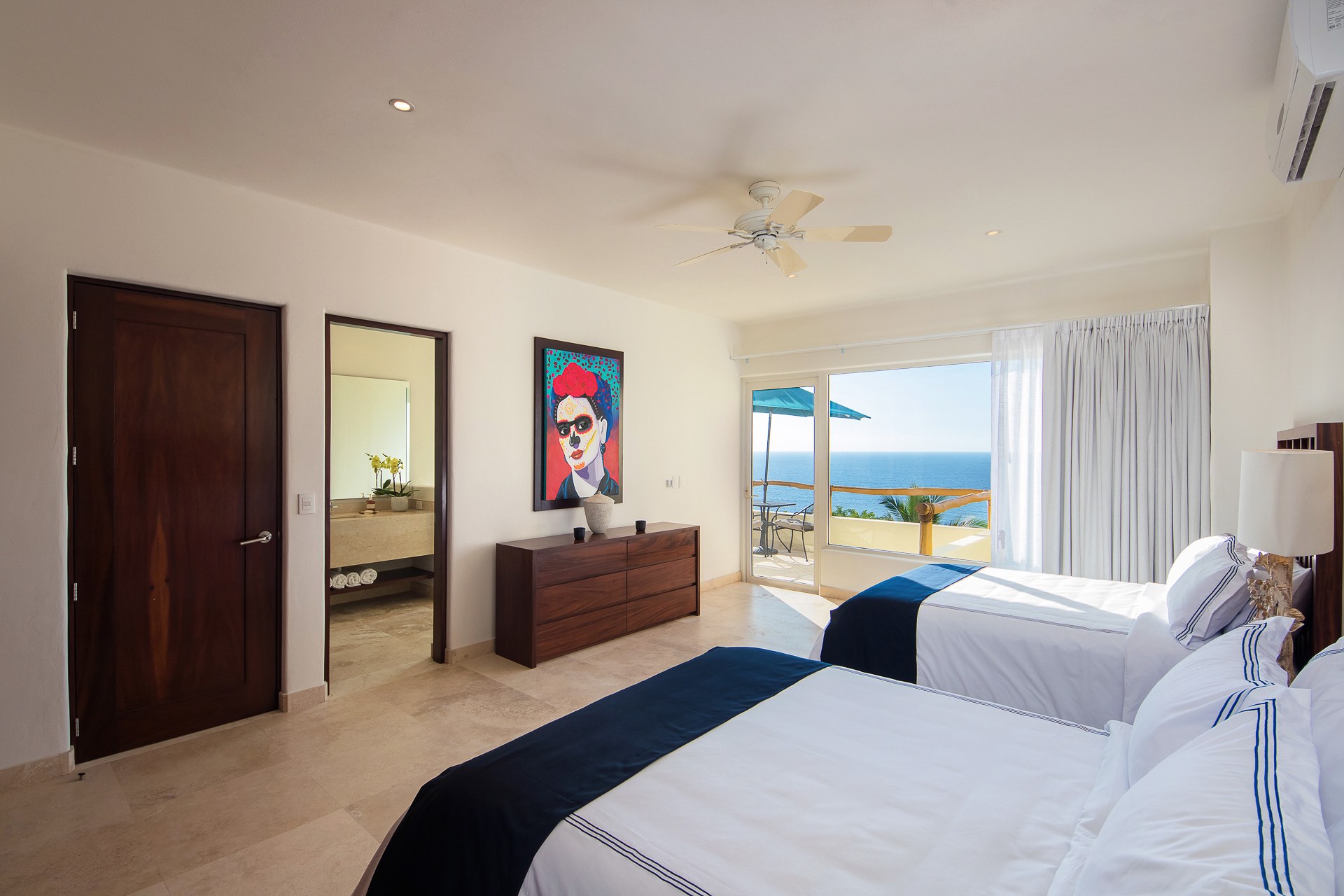 (Lower Level 2): 2 Queen size beds, En-suite bathroom, A/C, Security Safe, Shared Terrace, Ocean view