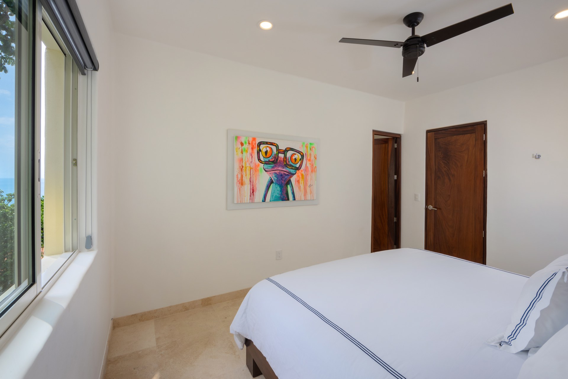 (Main Level): Queen size bed, En-suite bathroom, A/C, Security Safe, Partial Ocean view