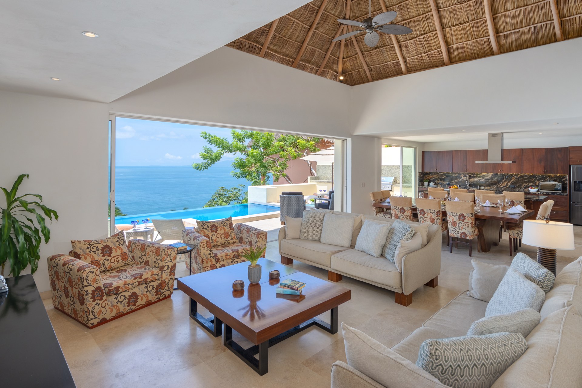 Located in the upscale community of San Xoaquin, the villa enjoys an elevated position framed by the natural drama of the Sierra Madre Mountains. The secure, residential setting contributes to a feeling of privacy and calm, while the surrounding landscape reinforces a strong sense of place. Guests are able to step into a tranquil environment that remains closely connected to one of Mexico’s most scenic coastal regions.