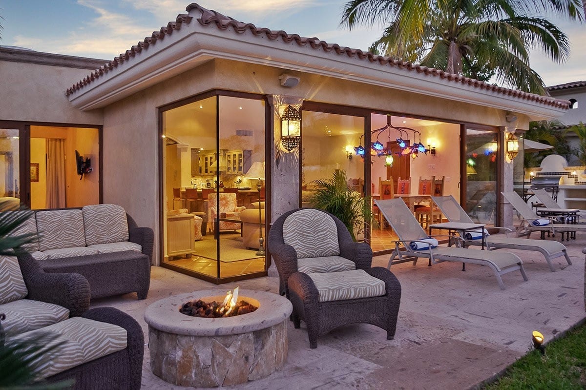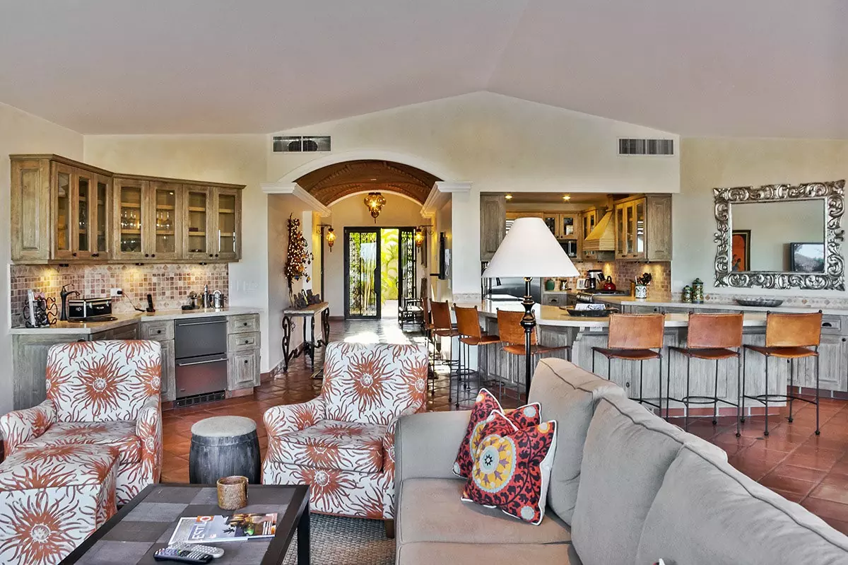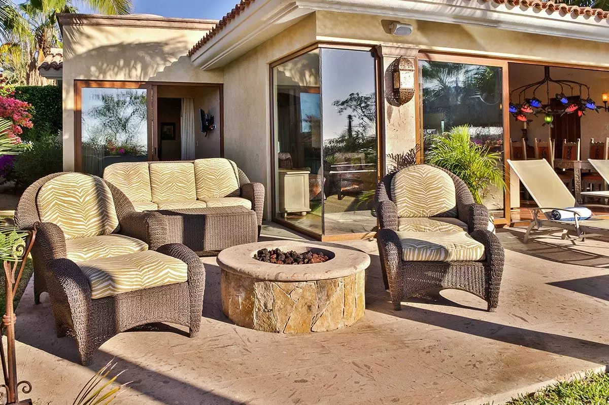The spacious patio beckons with its outdoor gas BBQ, poolside Palapa with a wet bar, and ample seating for al fresco dining or lounging by the fire pit. Enjoy panoramic views of the Cabo del Sol Golf Course while soaking in the private pool or unwinding in the bubbling jacuzzi.