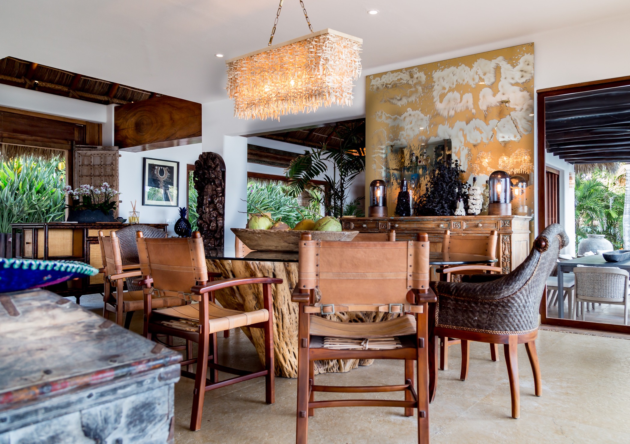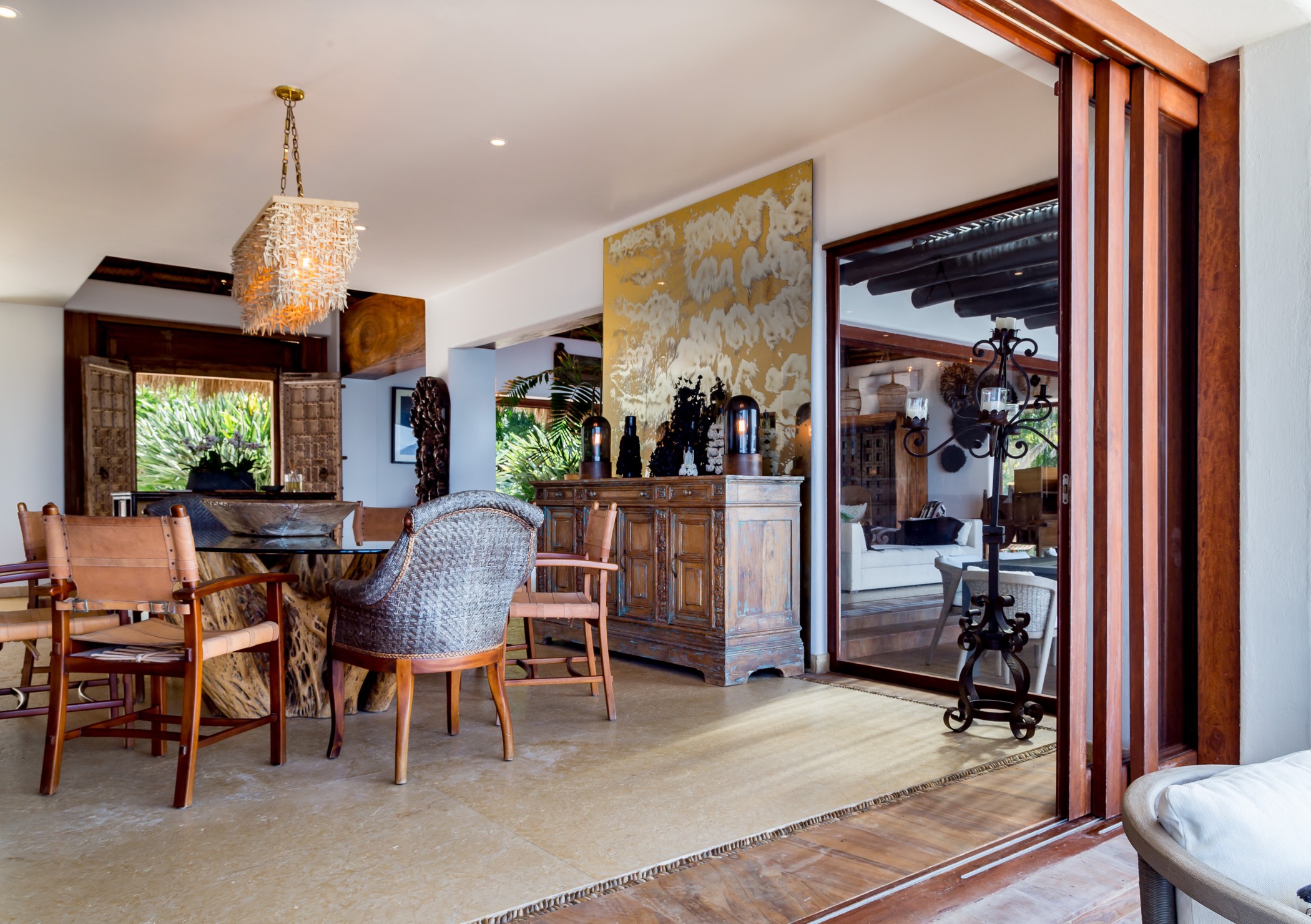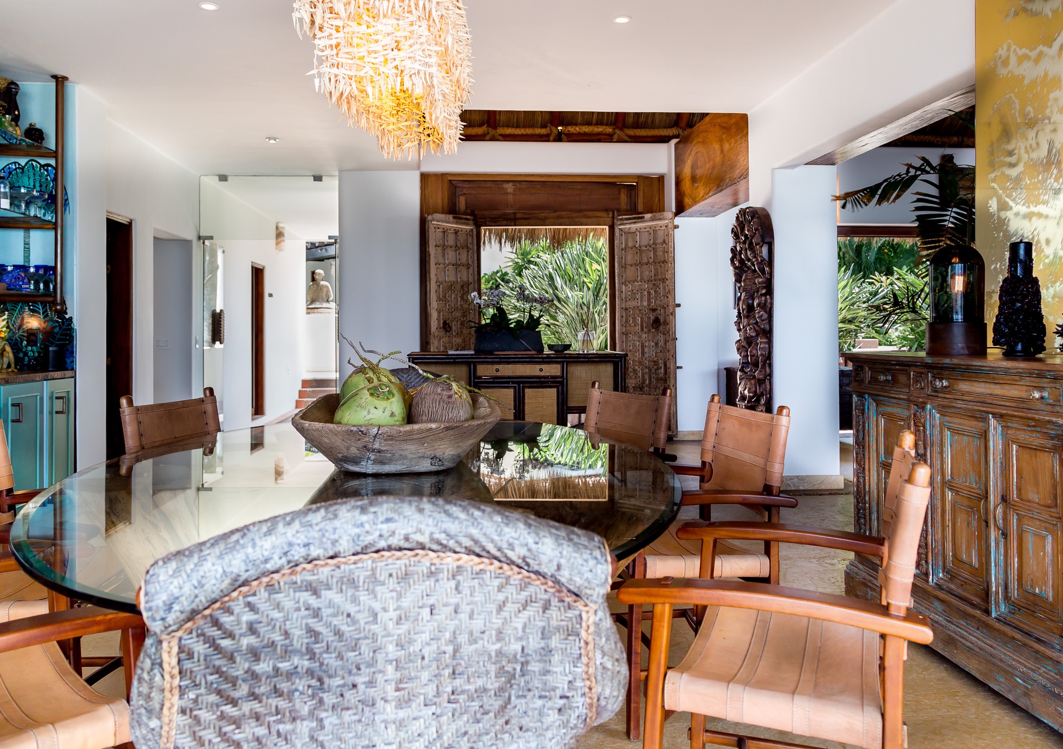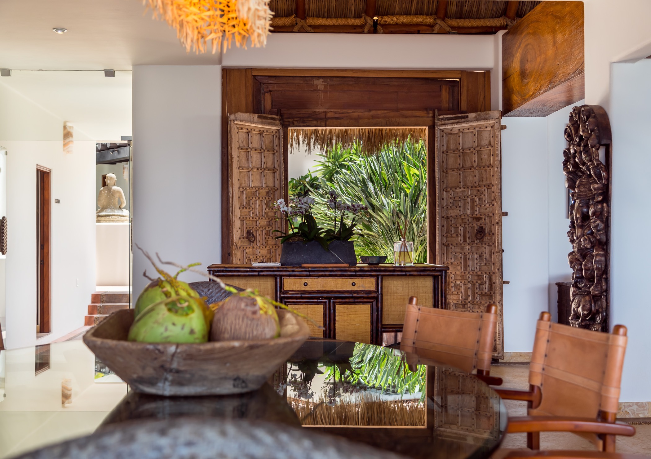 Every corner of this villa exudes tranquility, from the chef-prepared meals in the dining area to the cocktails under the handcrafted palapa living space. The villa’s design draws inspiration from Bali, ensuring a peaceful ambiance day and night.