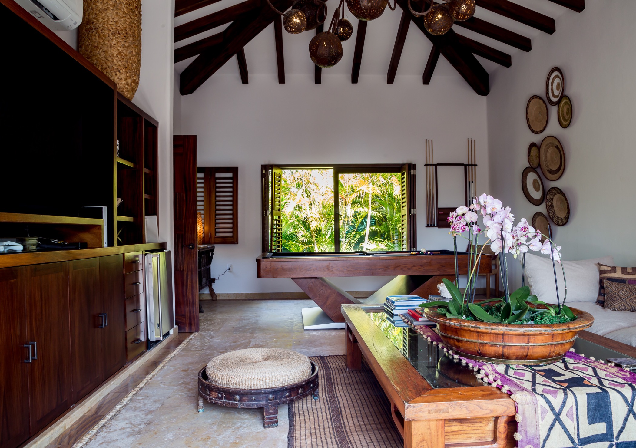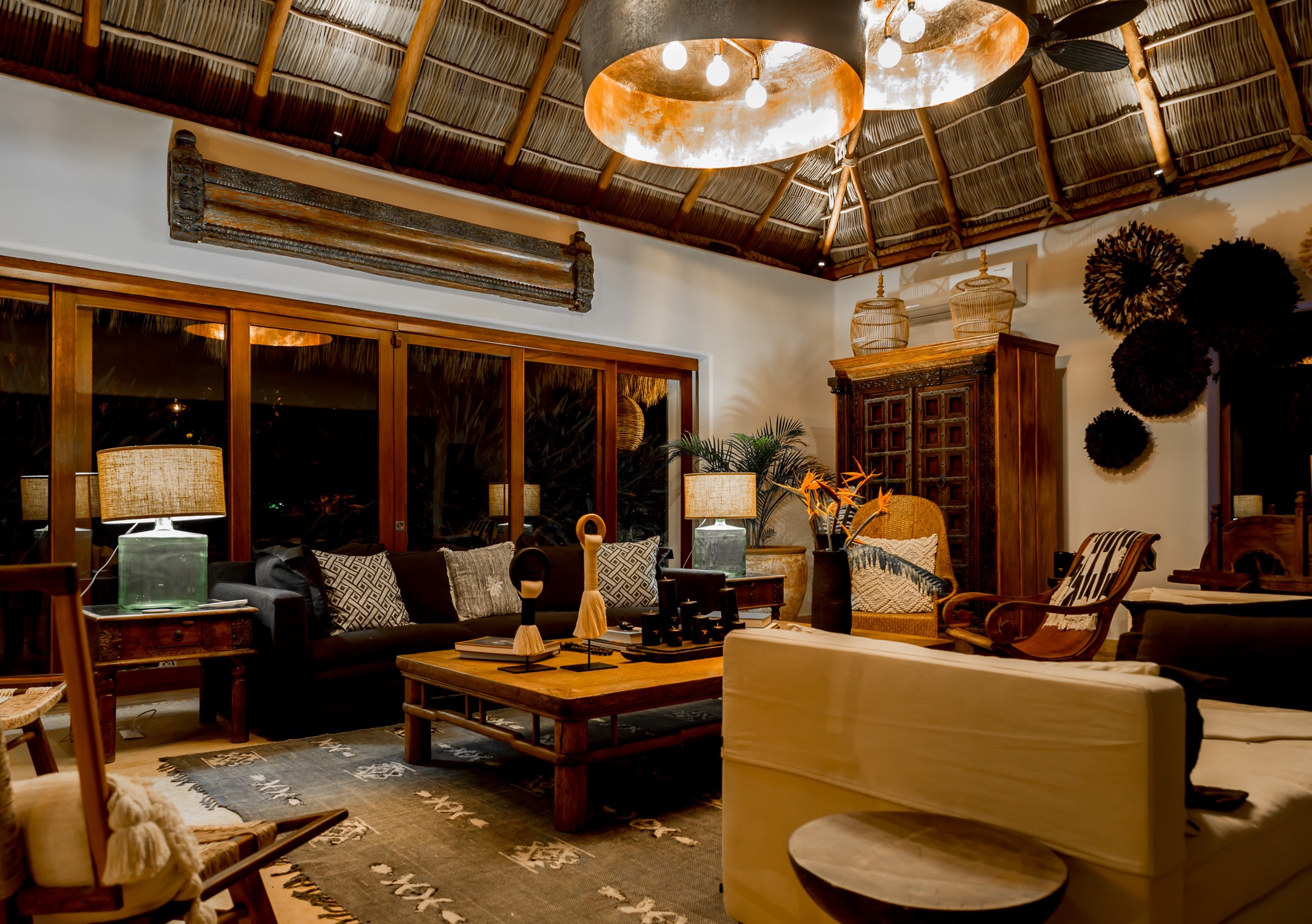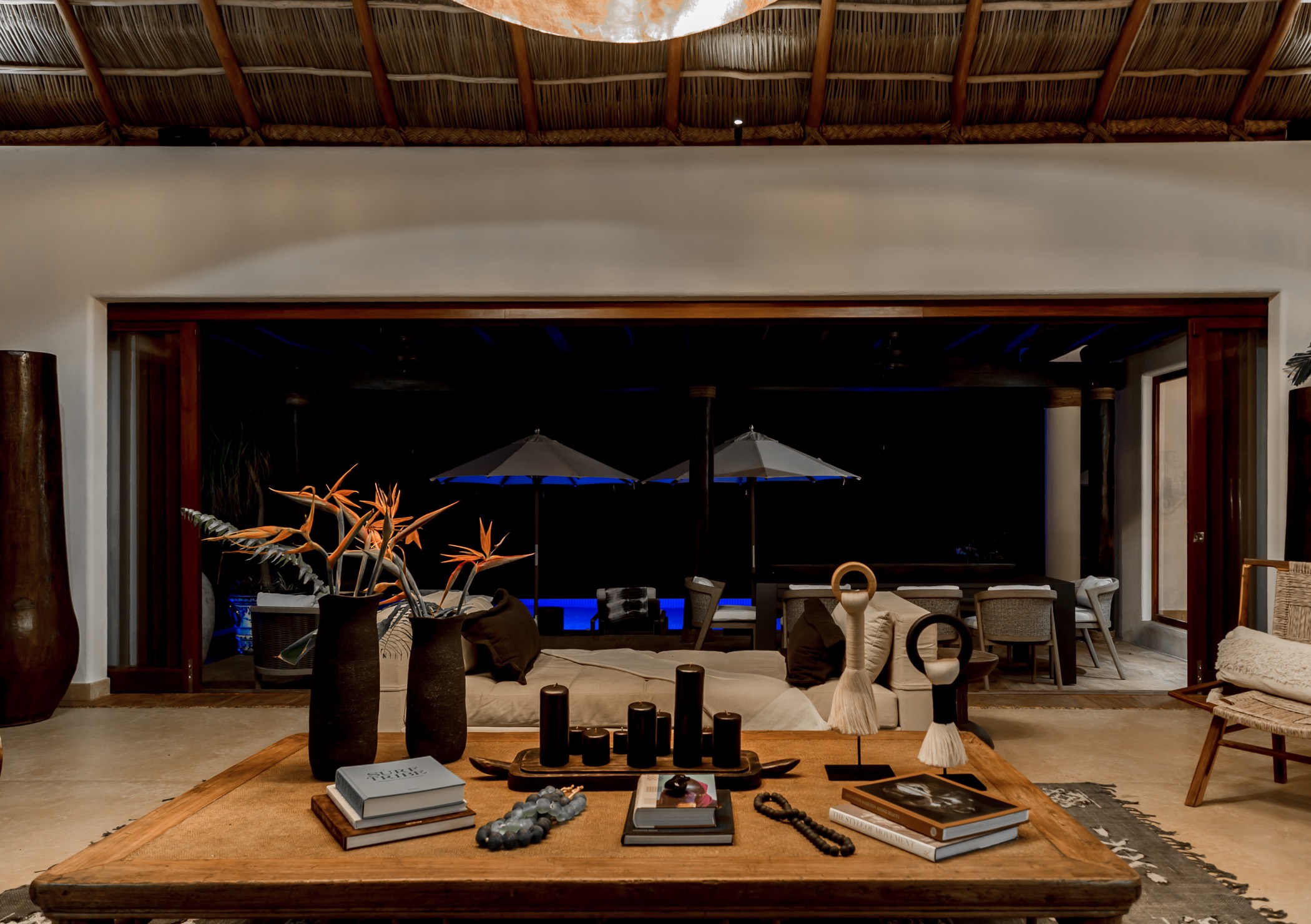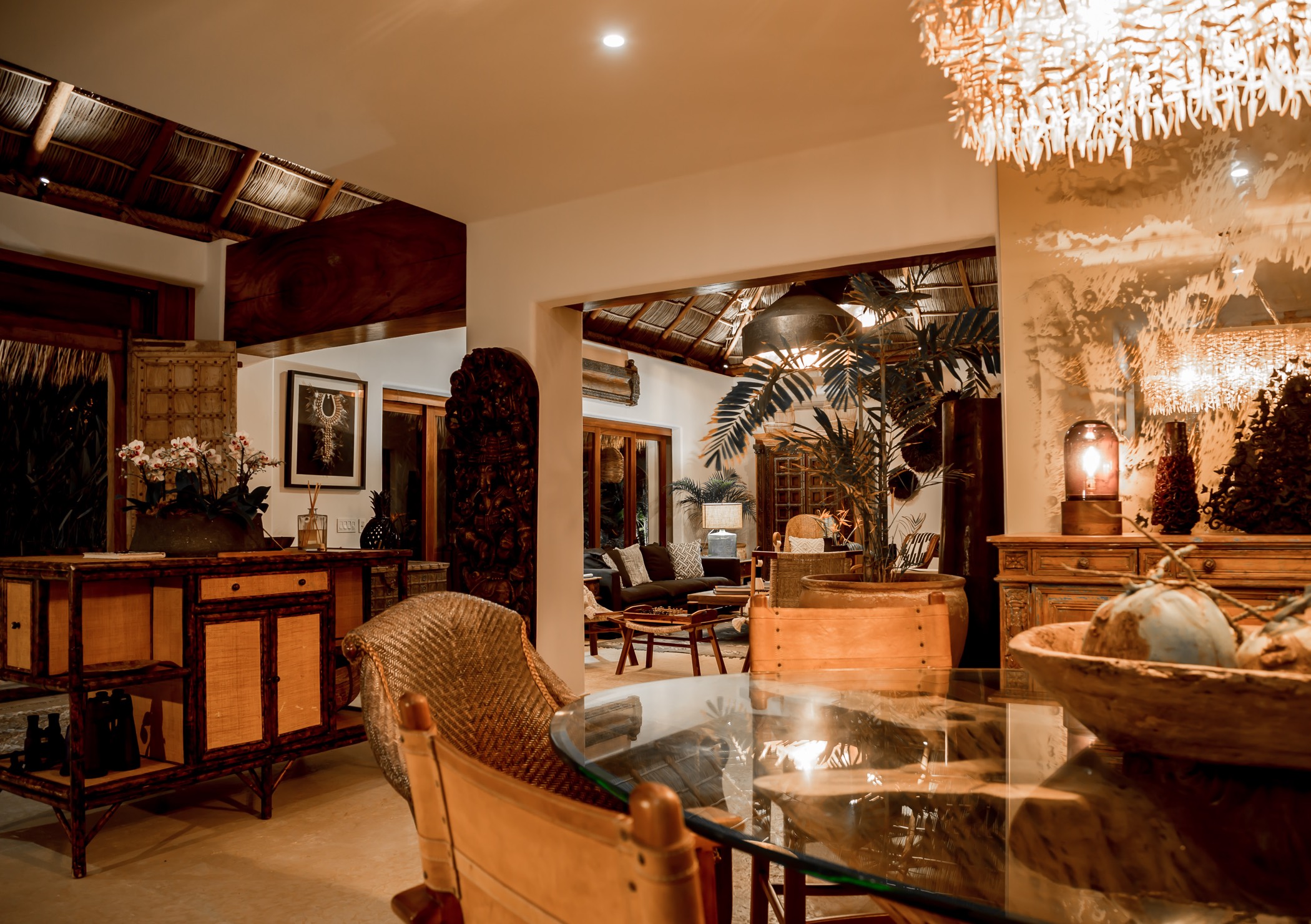 Every corner of this villa exudes tranquility, from the chef-prepared meals in the dining area to the cocktails under the handcrafted palapa living space. The villa’s design draws inspiration from Bali, ensuring a peaceful ambiance day and night.