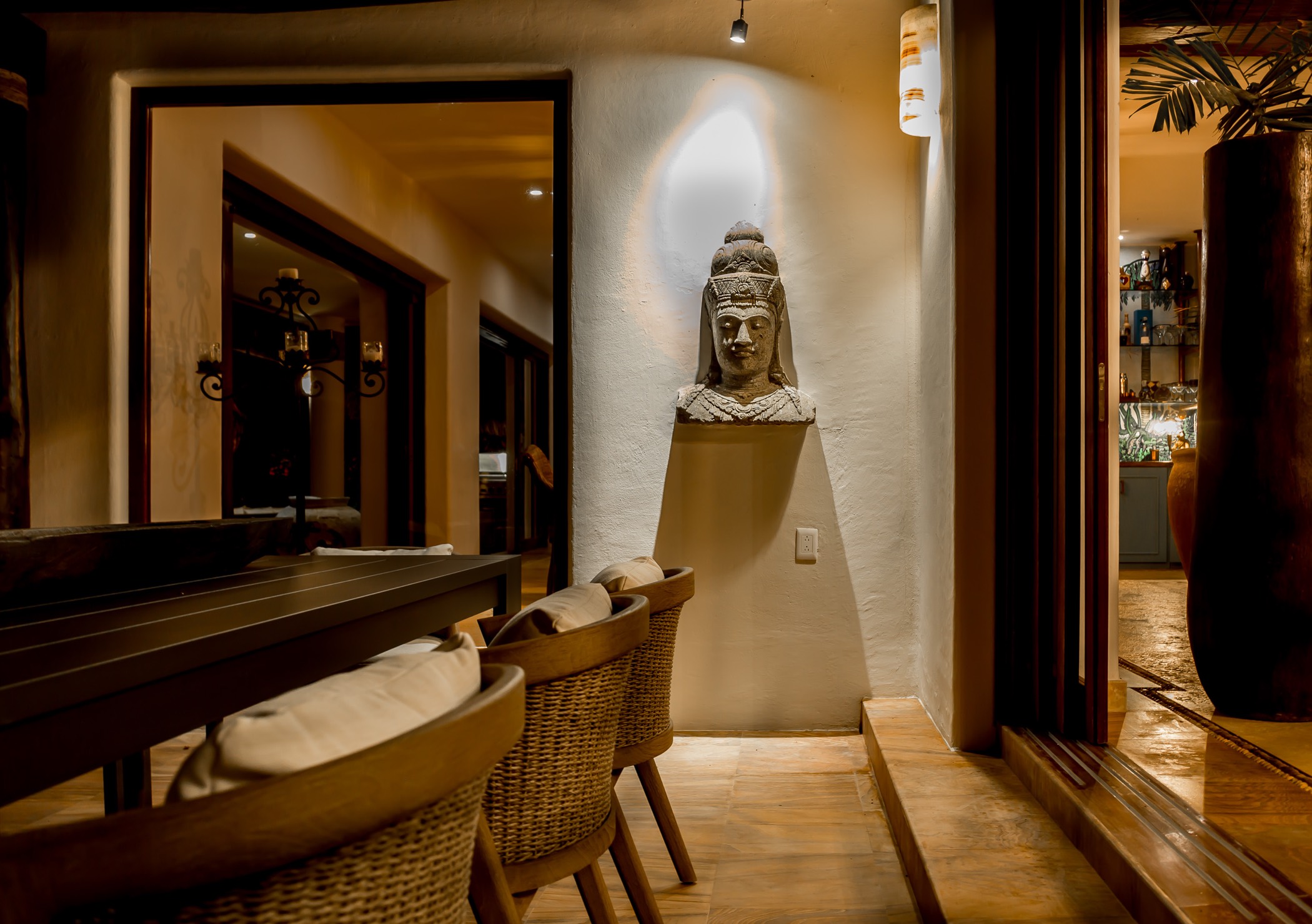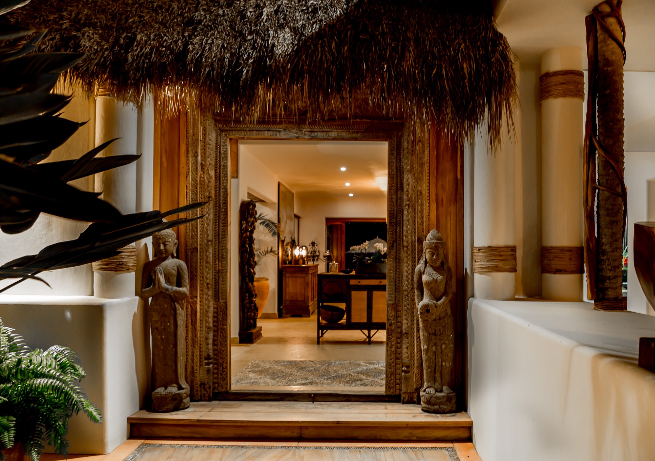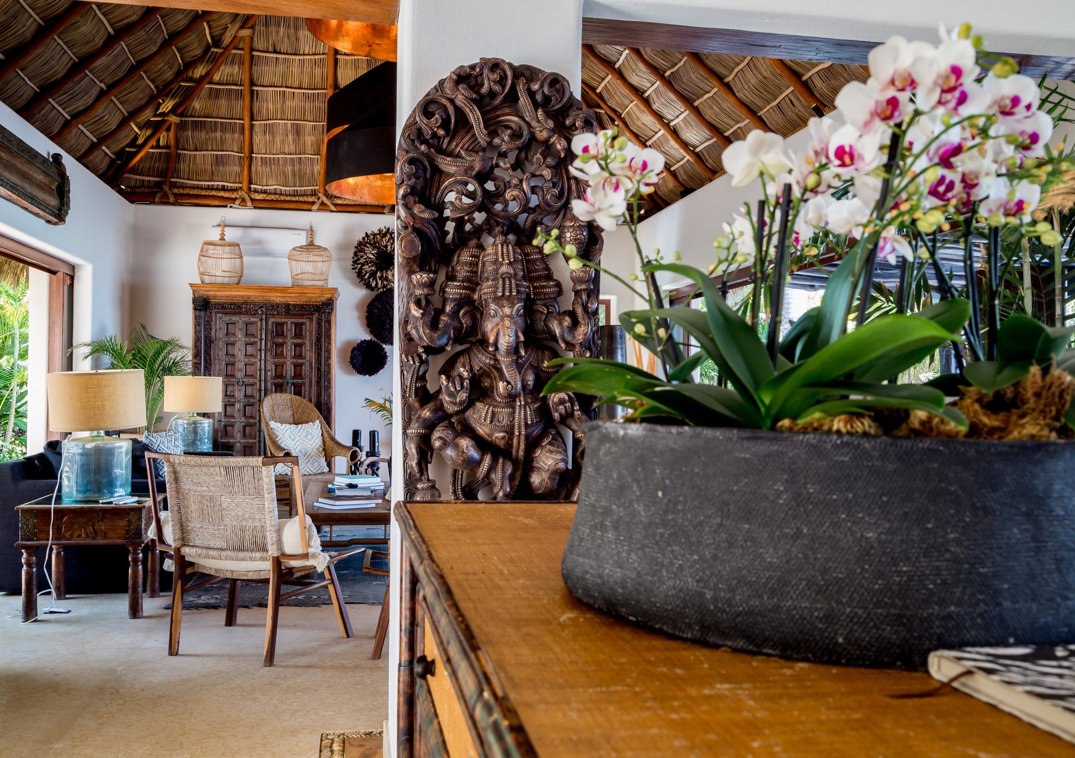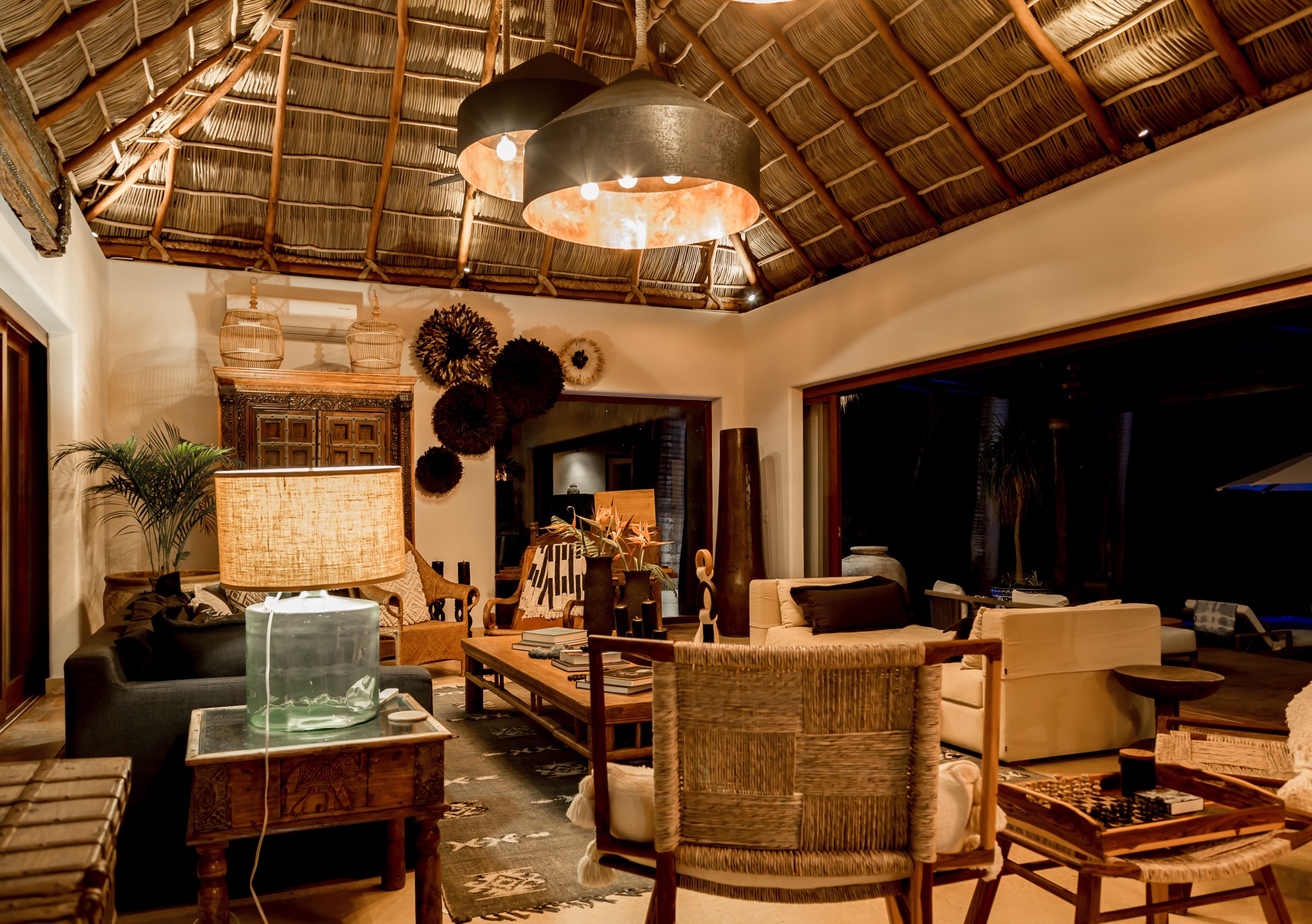 Every corner of this villa exudes tranquility, from the chef-prepared meals in the dining area to the cocktails under the handcrafted palapa living space. The villa’s design draws inspiration from Bali, ensuring a peaceful ambiance day and night.
