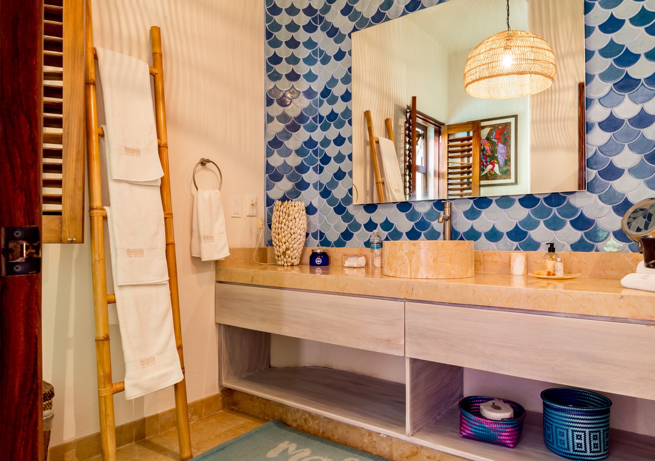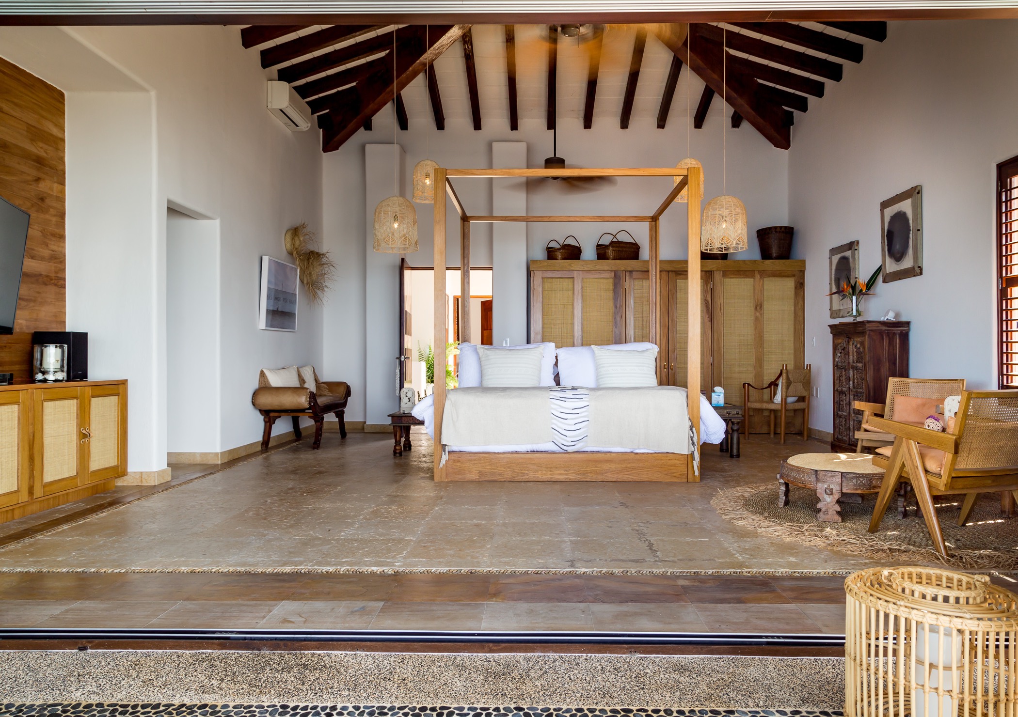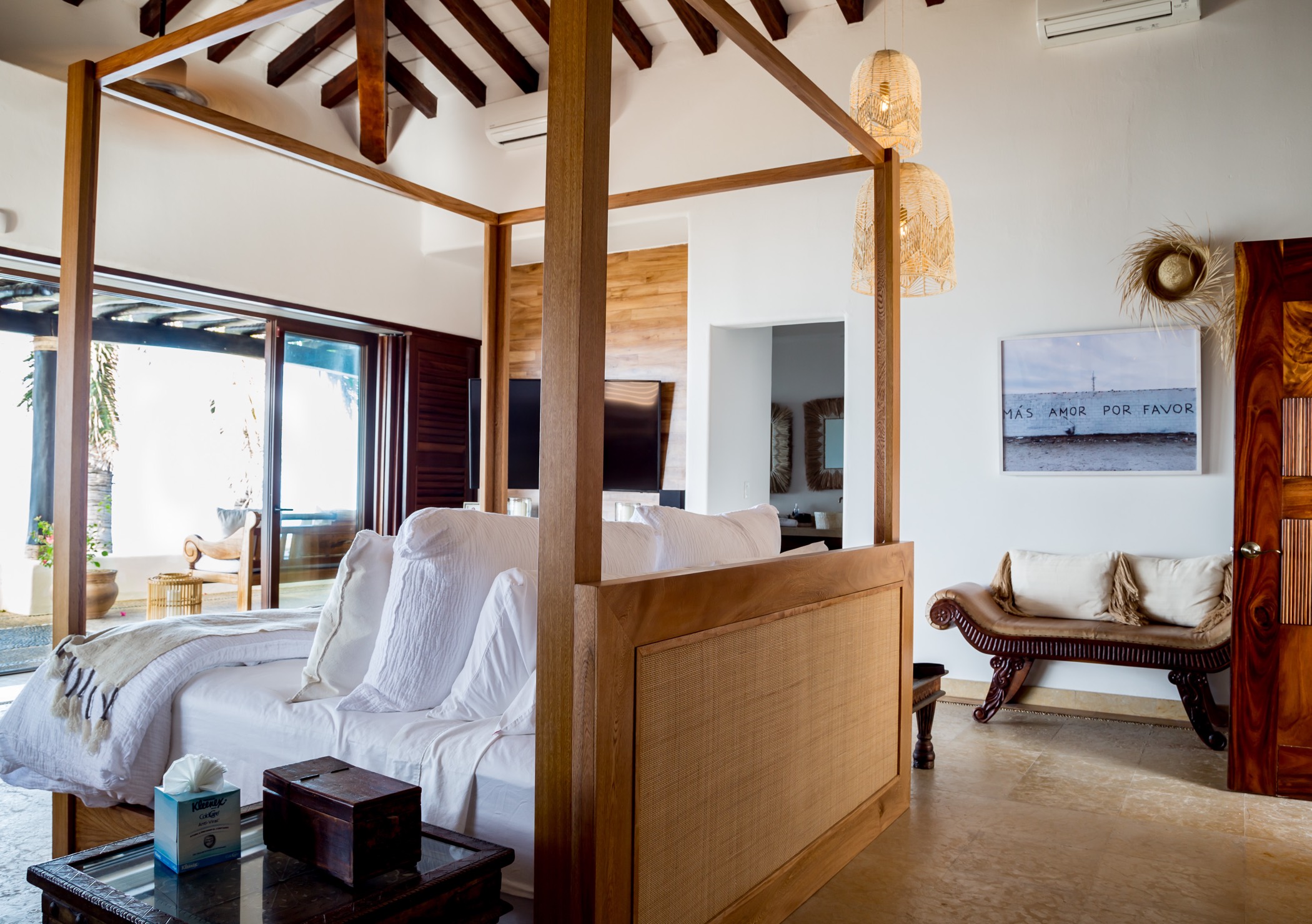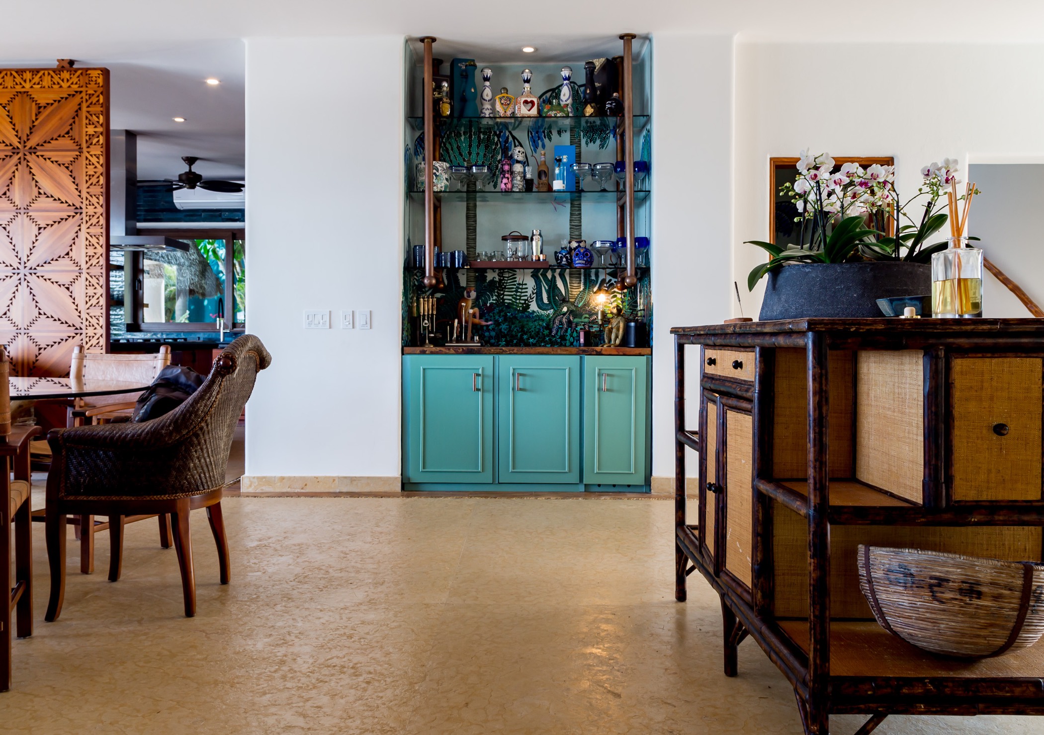 Every corner of this villa exudes tranquility, from the chef-prepared meals in the dining area to the cocktails under the handcrafted palapa living space. The villa’s design draws inspiration from Bali, ensuring a peaceful ambiance day and night.