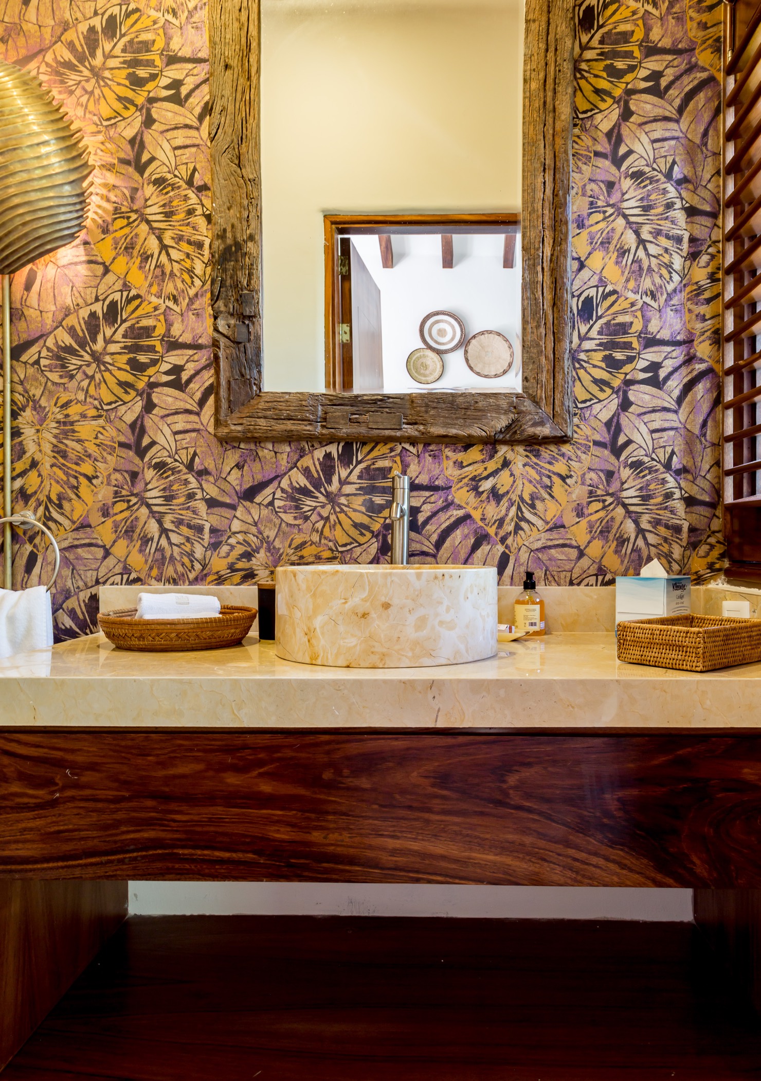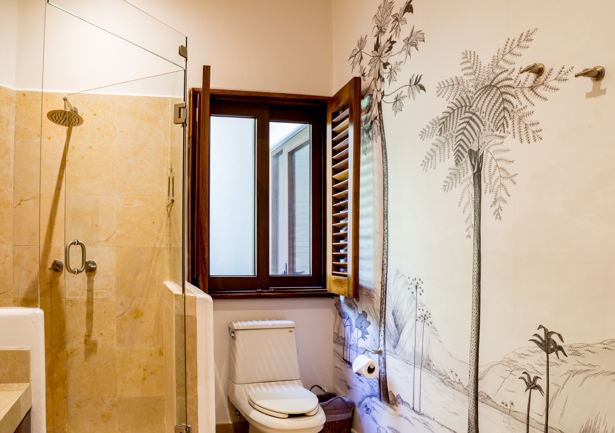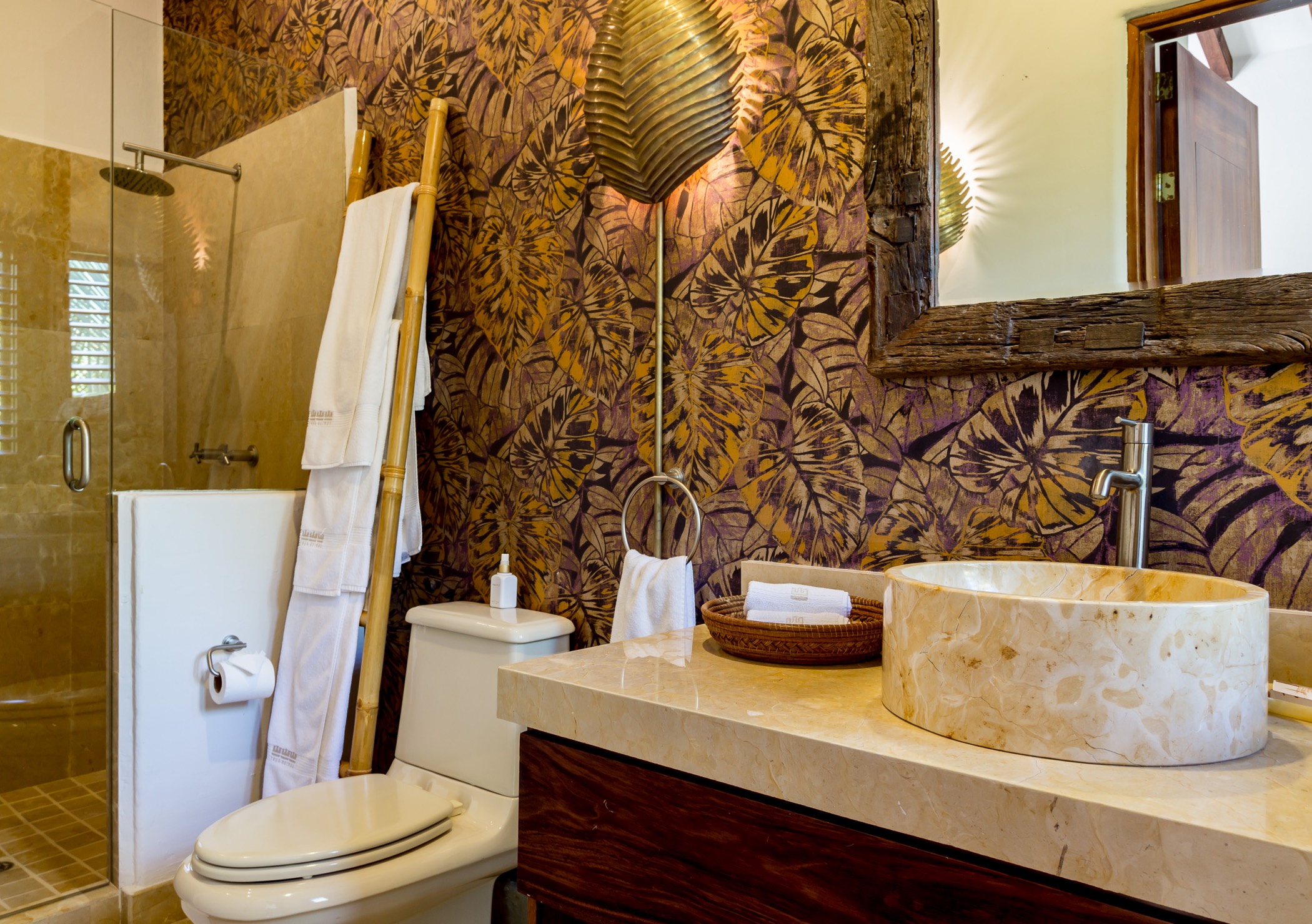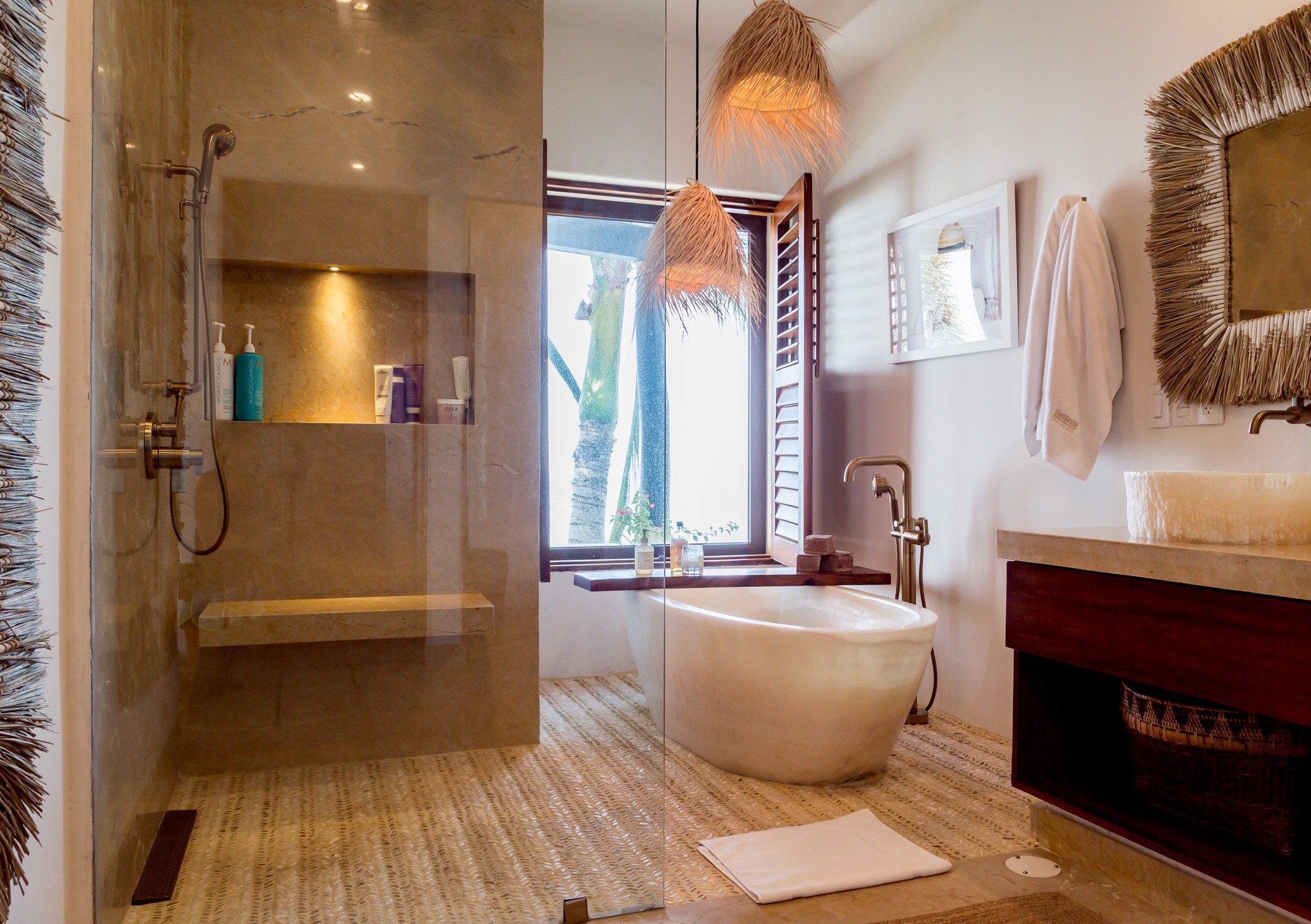 The villa boasts four distinct suites, each decorated with a unique flair. En-suite washrooms, luxury linens, and plush bedding ensure utmost comfort. The main room offers a unique quartz tub experience, allowing for a relaxing candlelit bubble bath while enjoying the sea’s vista.