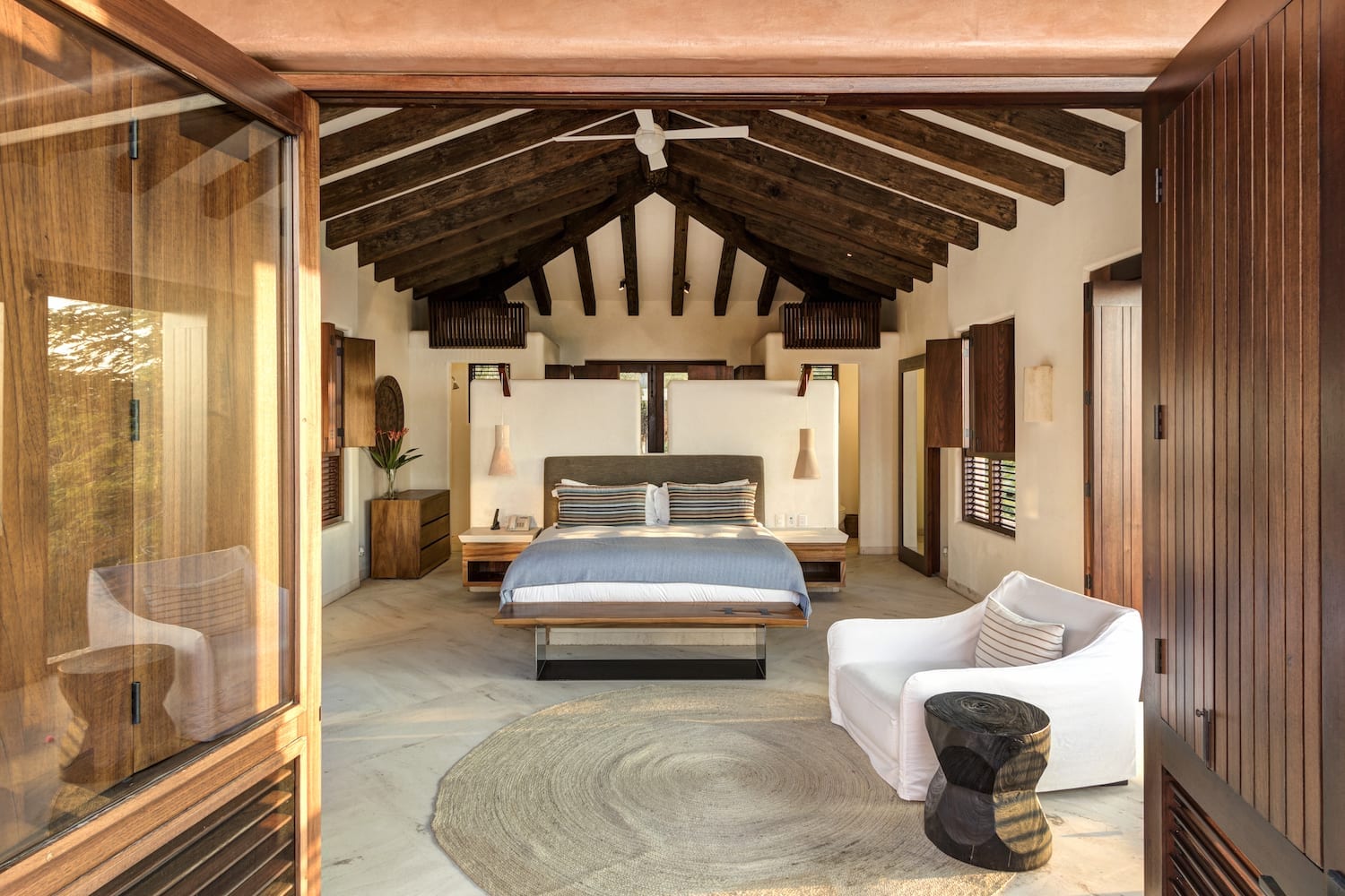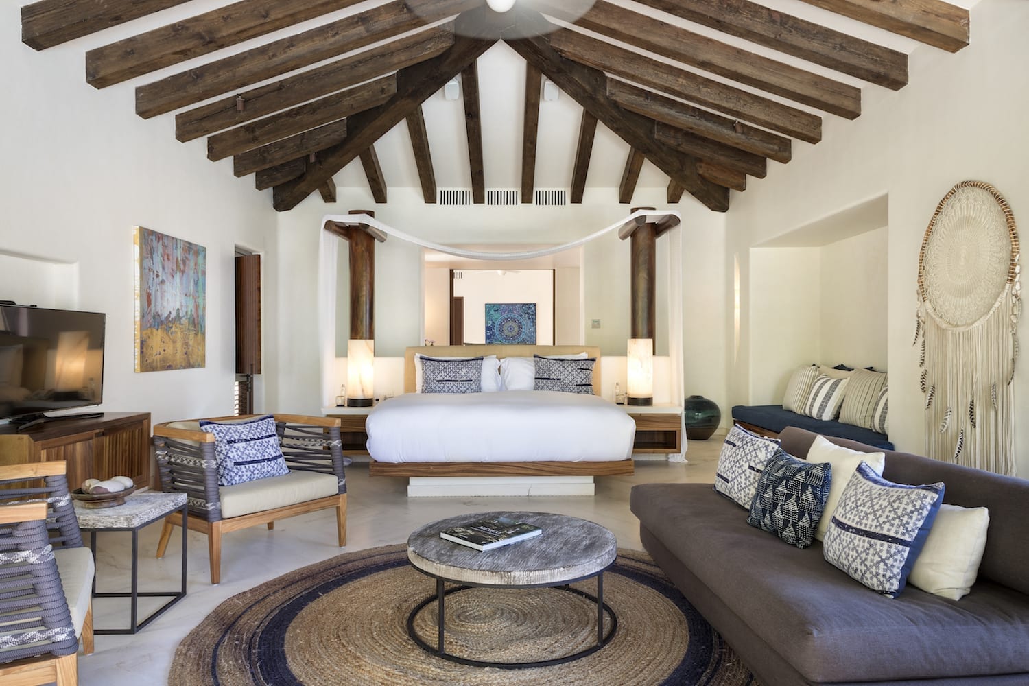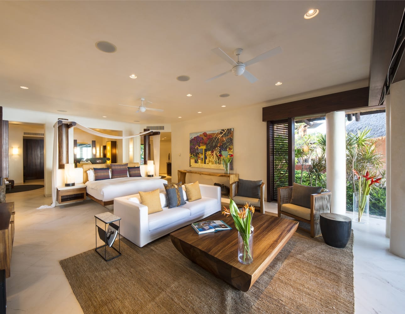 Each suite offers expansive ocean views and has plush king beds, lounges, and private terraces.