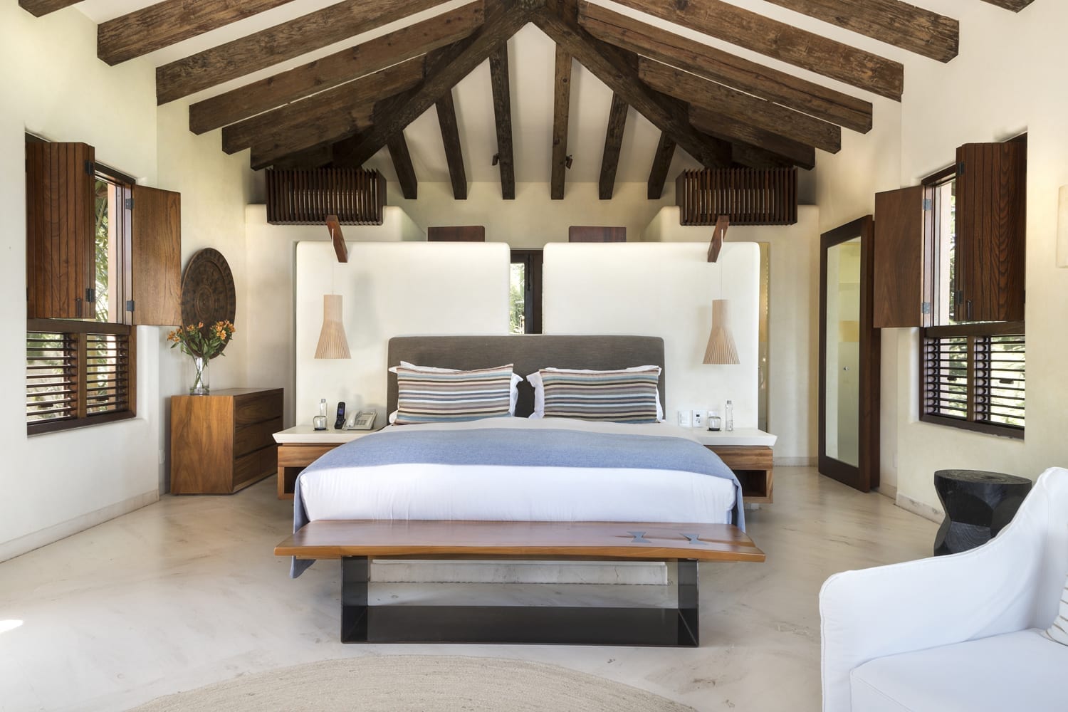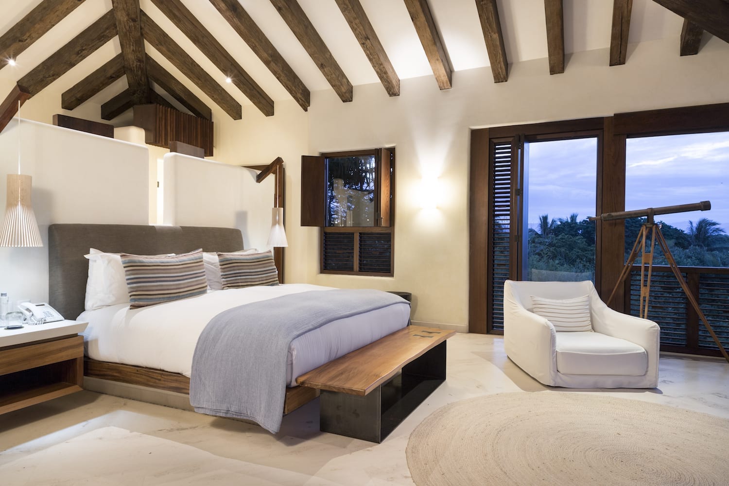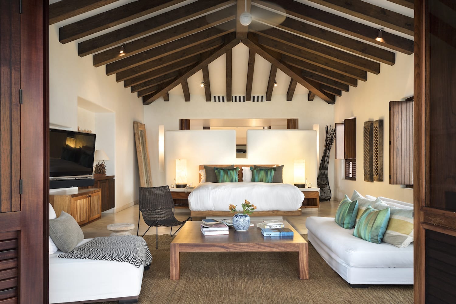Each suite offers expansive ocean views and has plush king beds, lounges, and private terraces.
