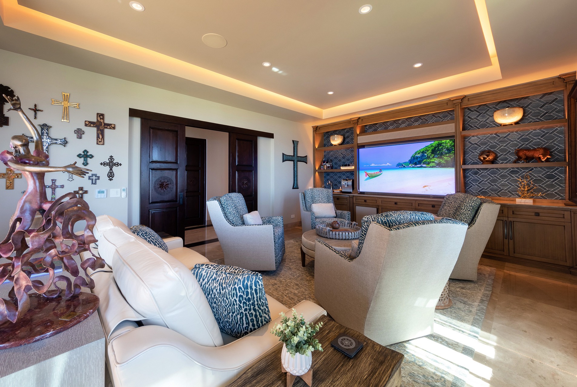 Welcome to Casa Wirikuta, a breathtaking seven-bedroom luxury villa in the prestigious La Punta Estates in Punta Mita. Overlooking the 17th hole of the renowned Four Seasons Bahia golf course, this oceanfront retreat seamlessly blends the sophistication of Riviera Nayarit with the laid-back charm of coastal living. Designed for discerning travelers, Casa Wirikuta offers exclusive accommodations, personalized service, and world-class amenities in a gated community, ensuring total privacy and tranquility.