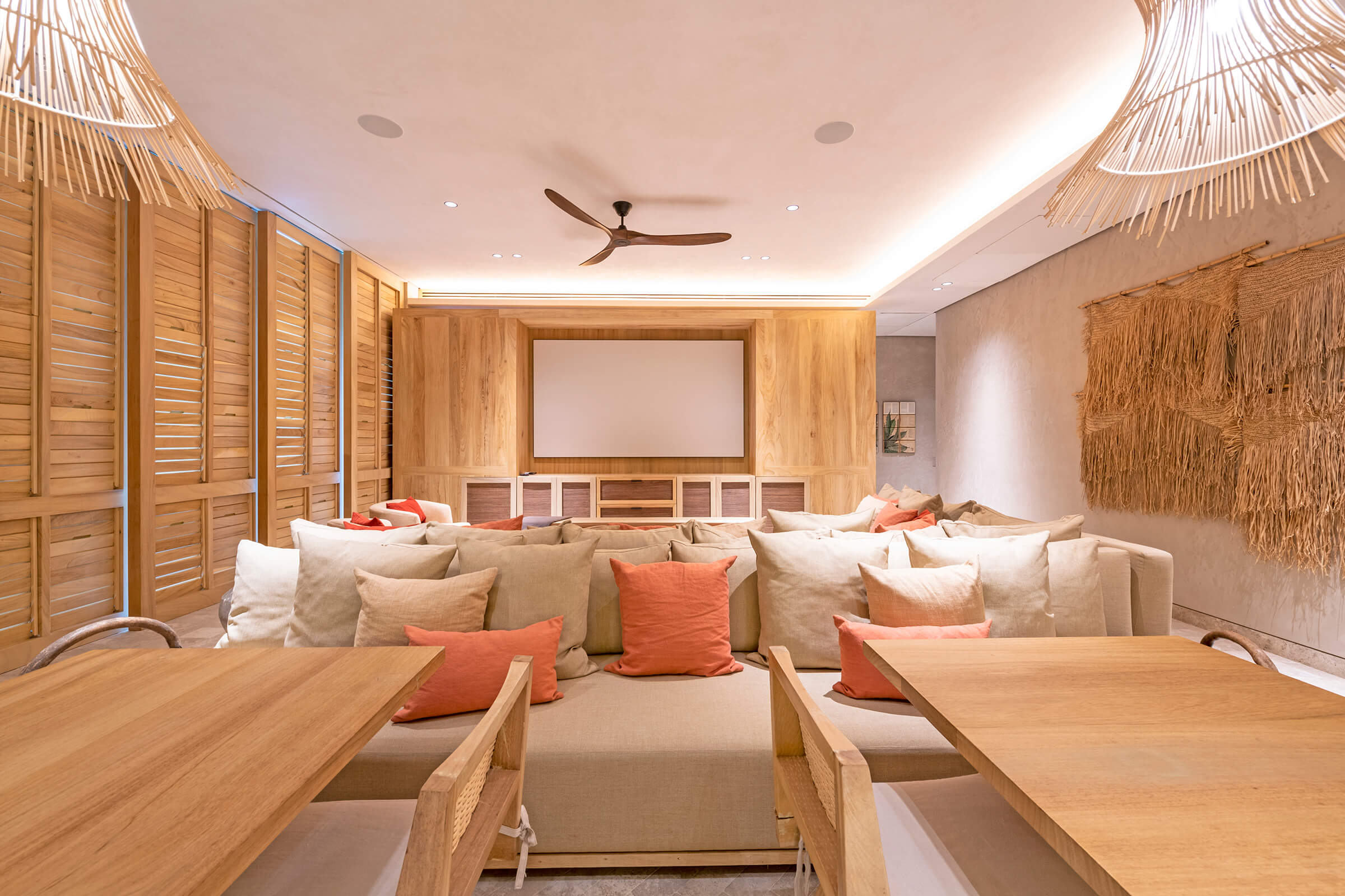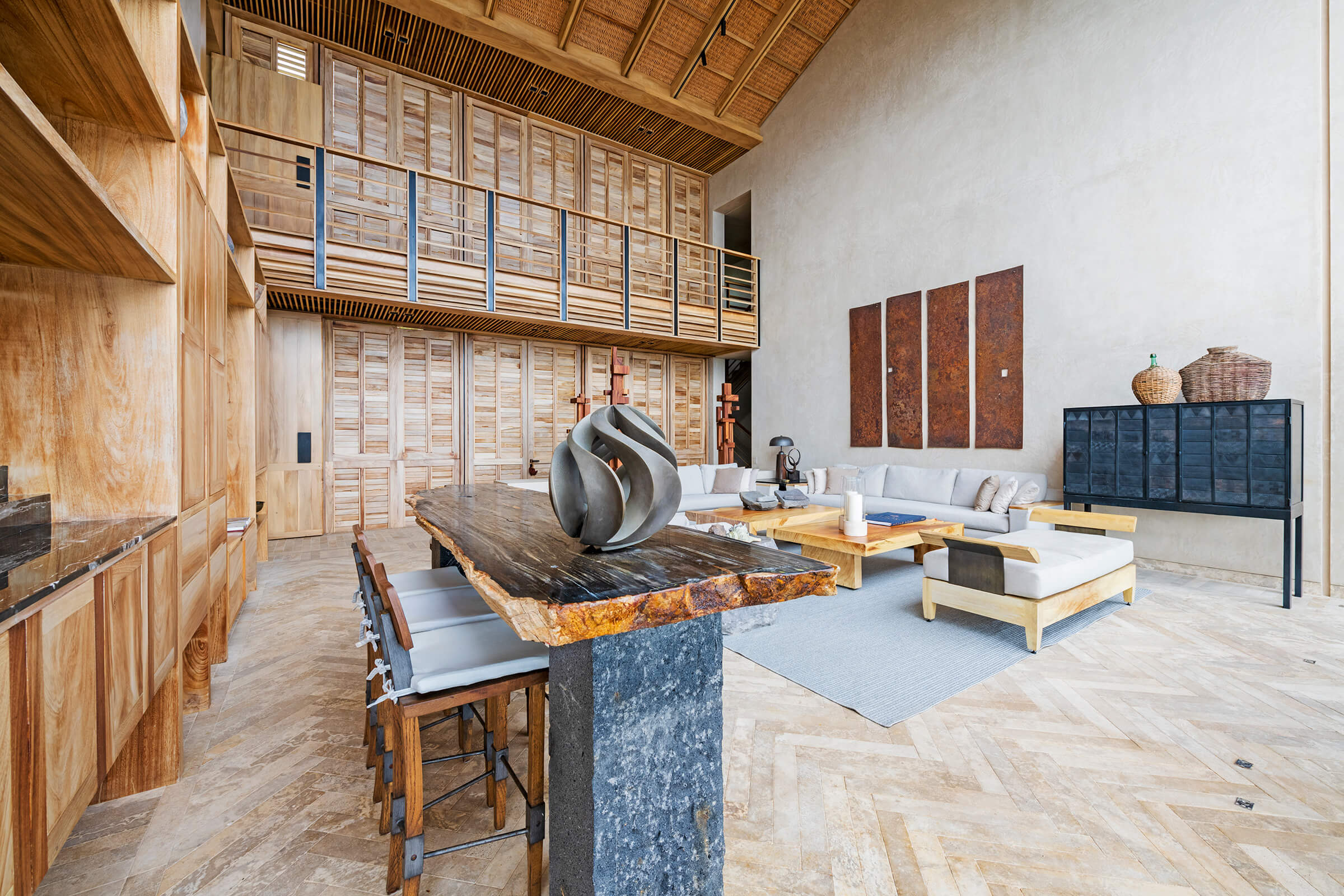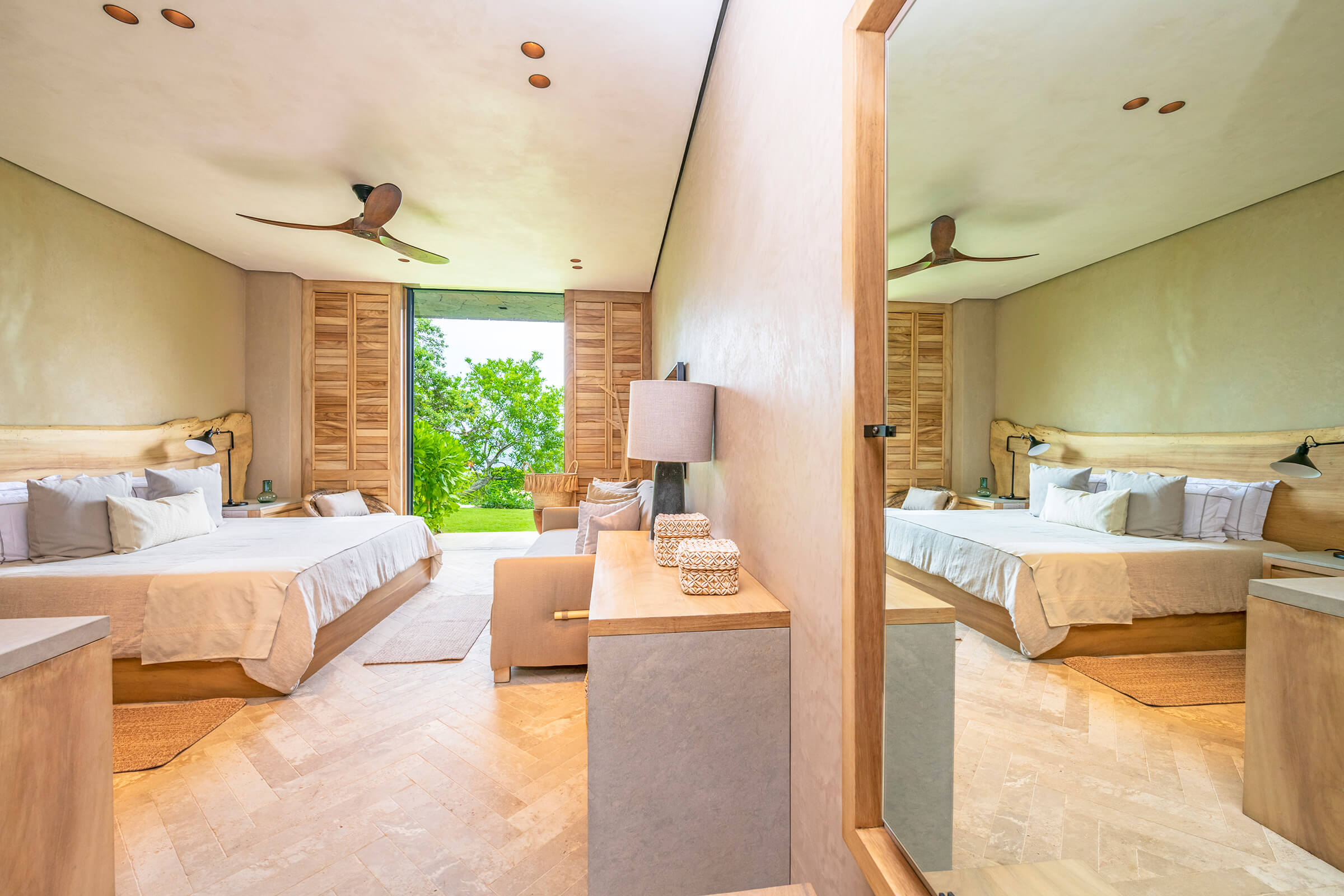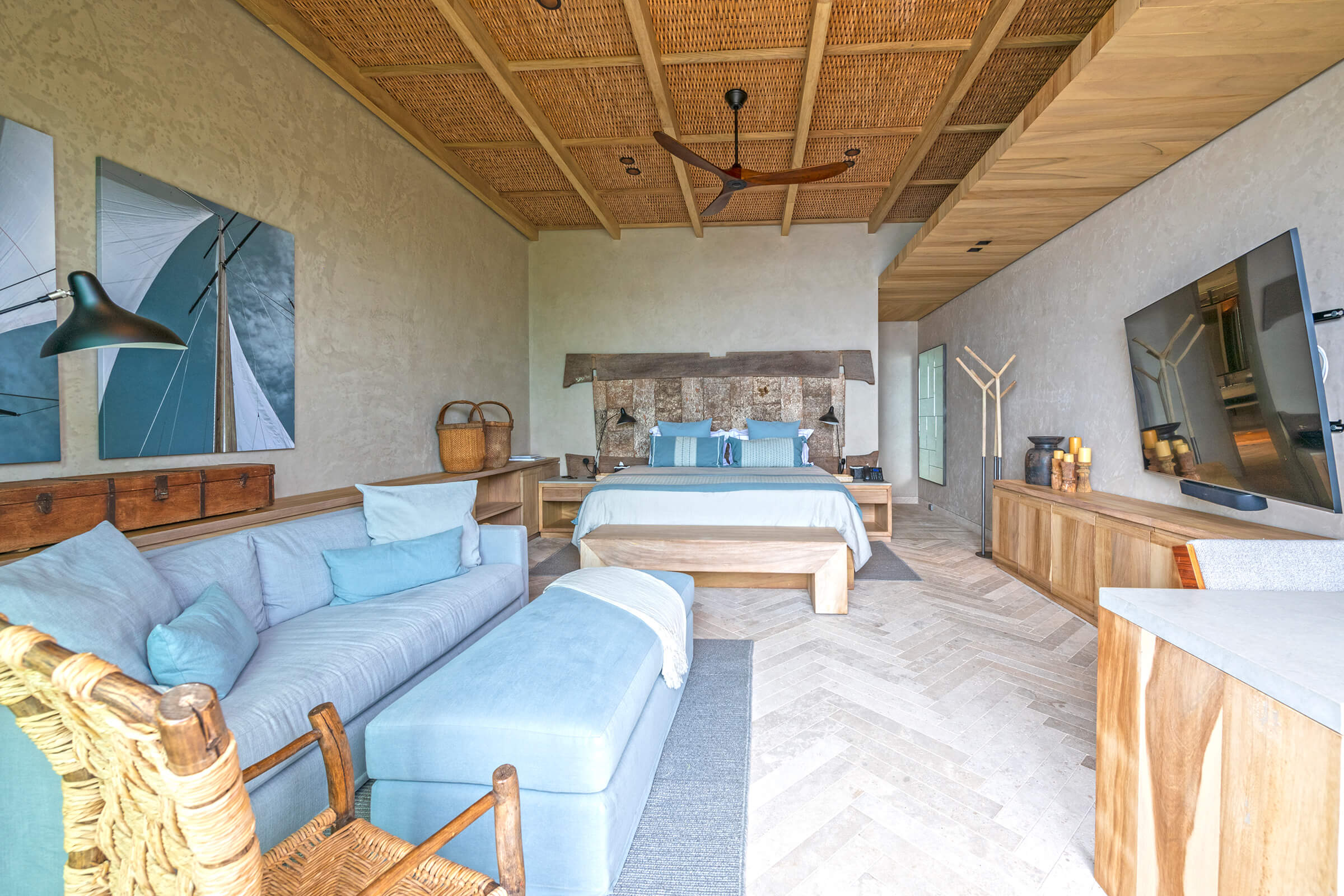 The estate, completed in 2022, was meticulously crafted to harmonize indoor and outdoor living. Its centerpiece is an inviting infinity pool and jacuzzi that offer captivating vistas of Litibu Bay. An outdoor living room and dining area beckon guests to gather and revel in the breathtaking surroundings. The estate comprises 5 + 1 rooms, including three main bedrooms with king-size beds, two family rooms with two queen-size beds each, and a charming kids’ room with bunk beds. The architectural design pays homage to the Coras patterns, marrying modern aesthetics with cultural influences.