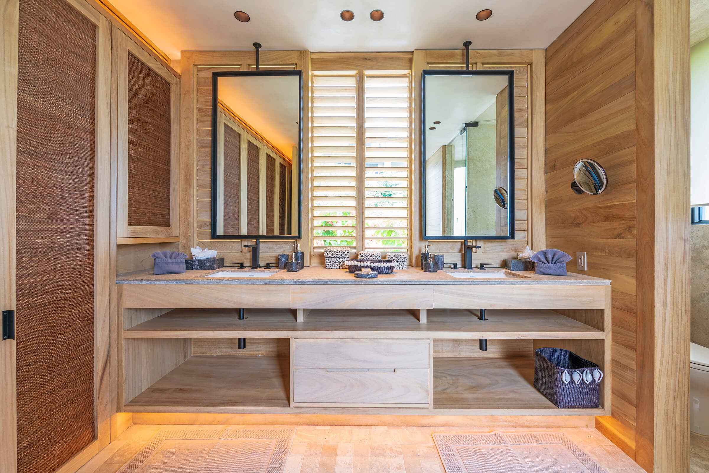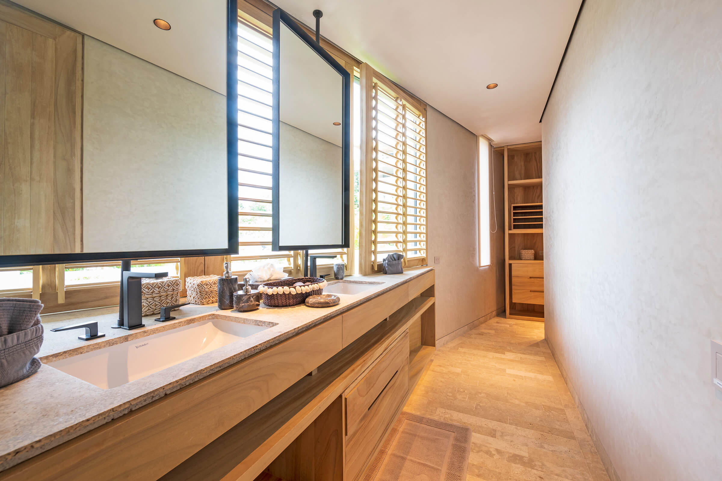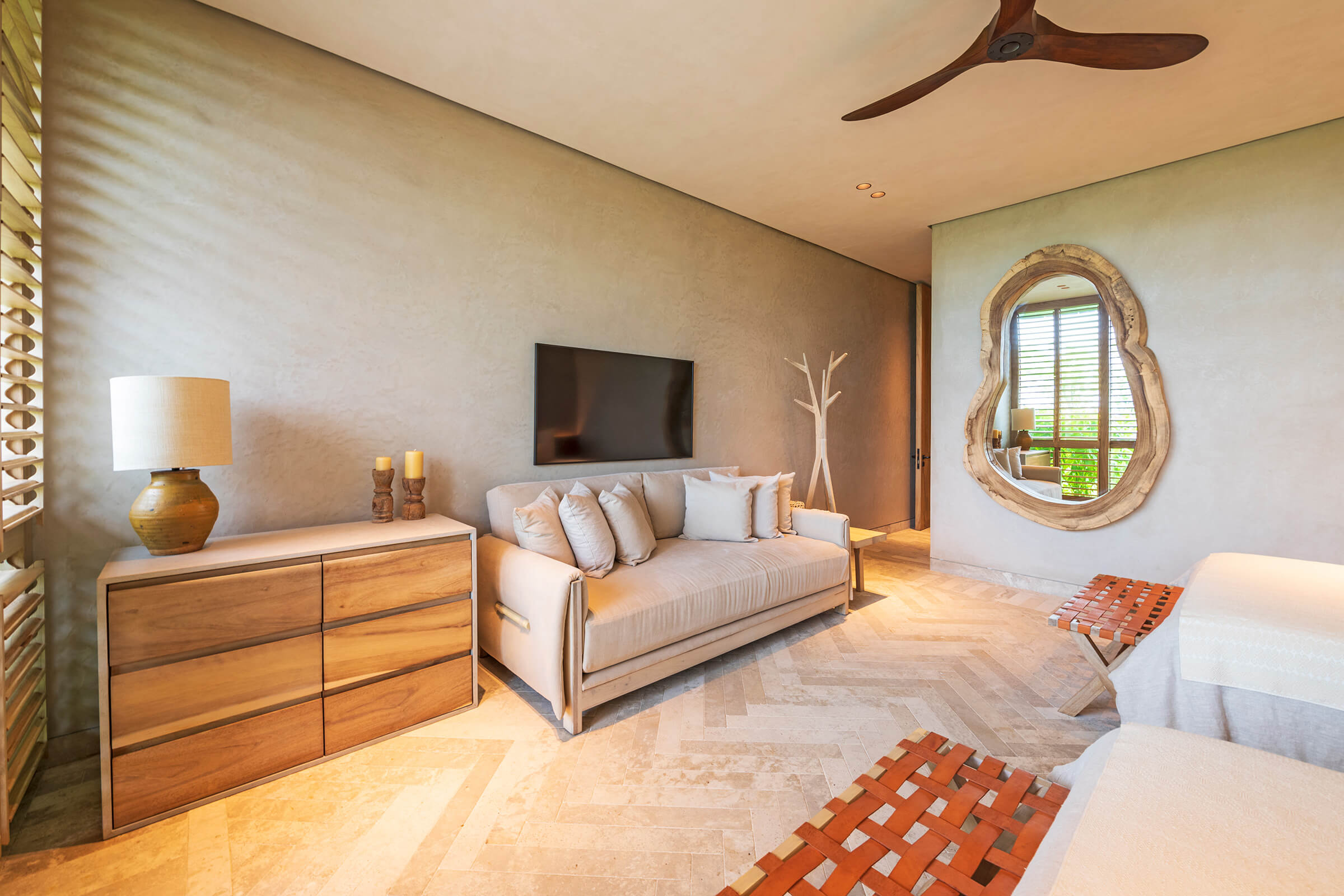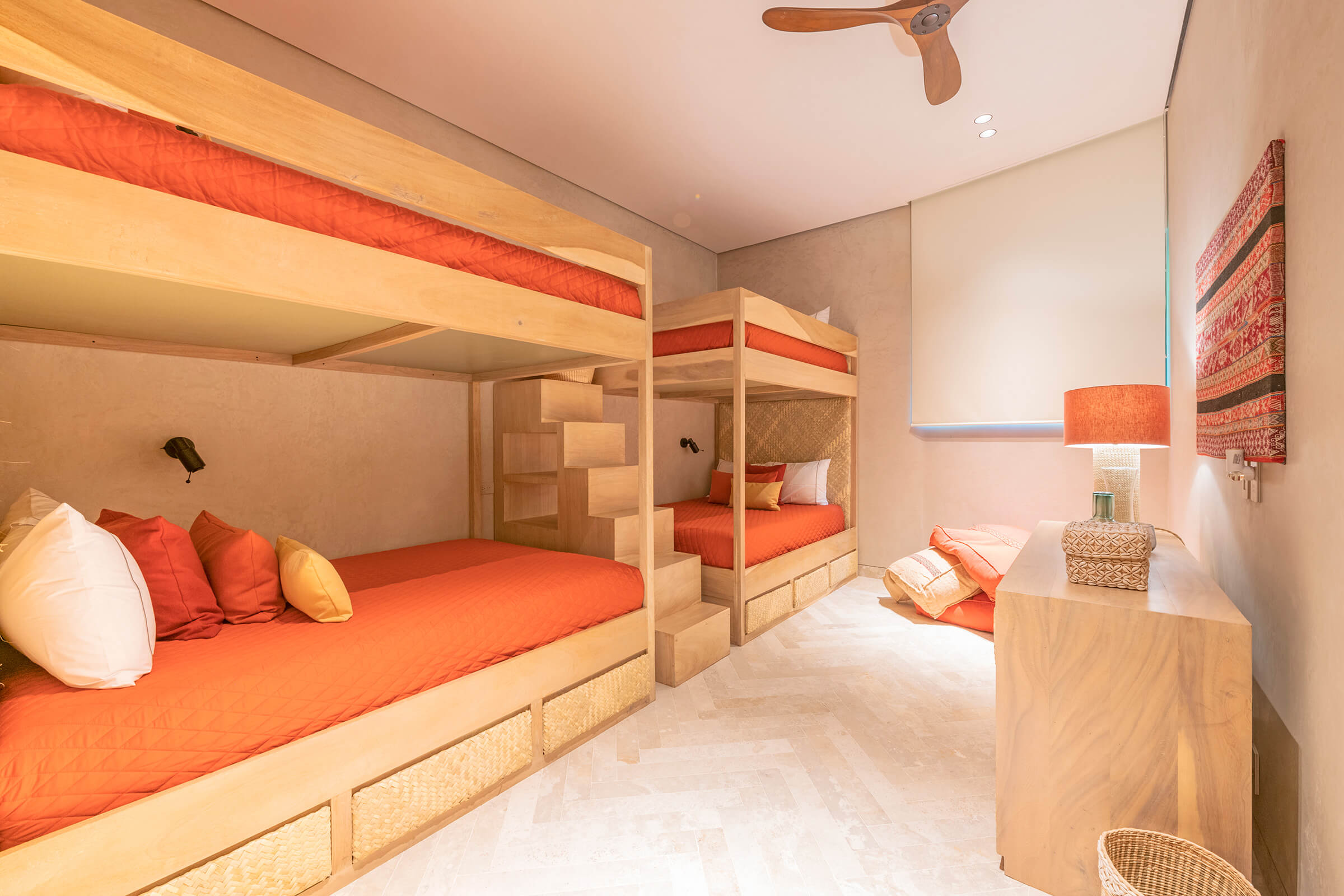 The estate, completed in 2022, was meticulously crafted to harmonize indoor and outdoor living. Its centerpiece is an inviting infinity pool and jacuzzi that offer captivating vistas of Litibu Bay. An outdoor living room and dining area beckon guests to gather and revel in the breathtaking surroundings. The estate comprises 5 + 1 rooms, including three main bedrooms with king-size beds, two family rooms with two queen-size beds each, and a charming kids’ room with bunk beds. The architectural design pays homage to the Coras patterns, marrying modern aesthetics with cultural influences.
