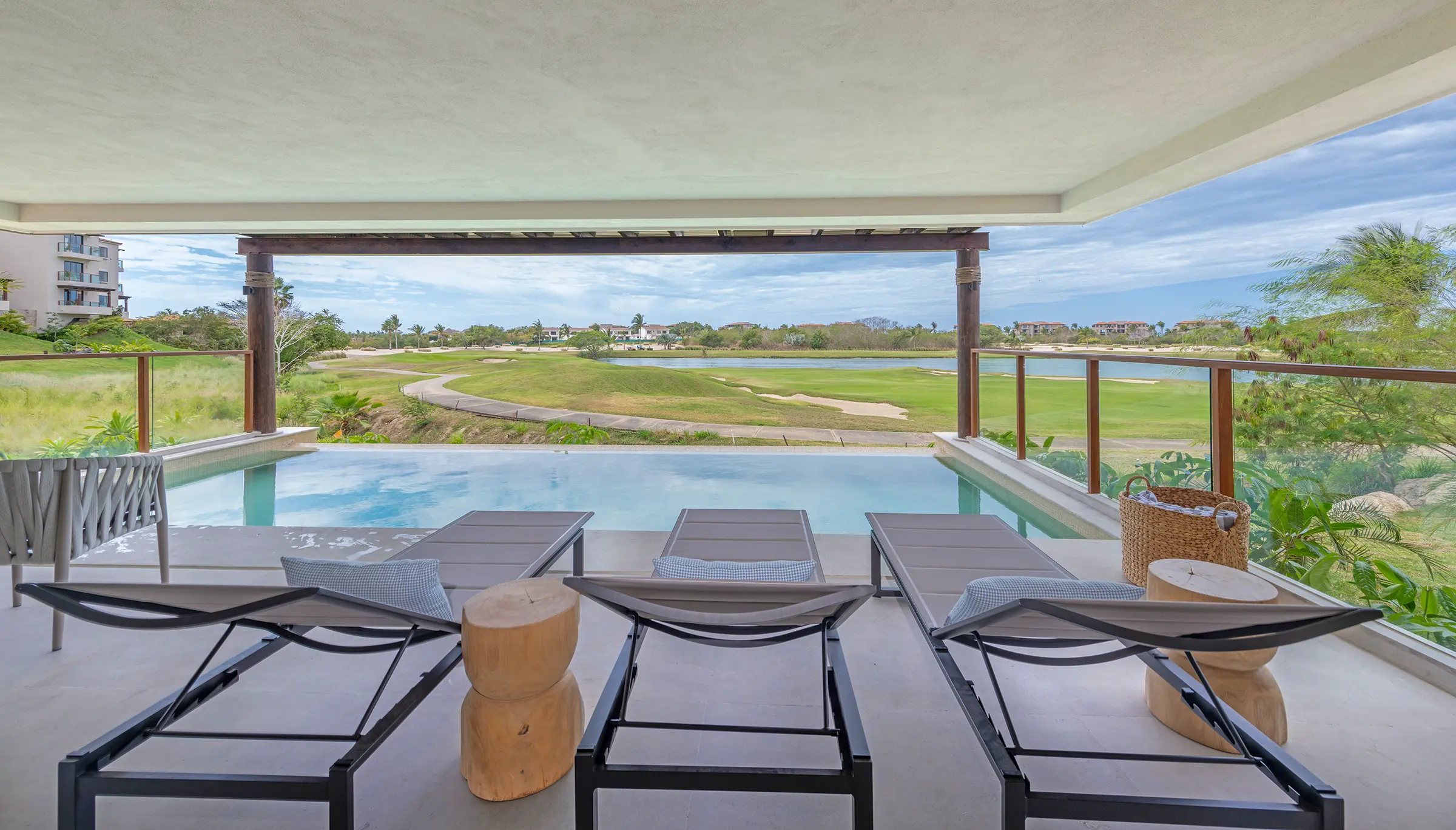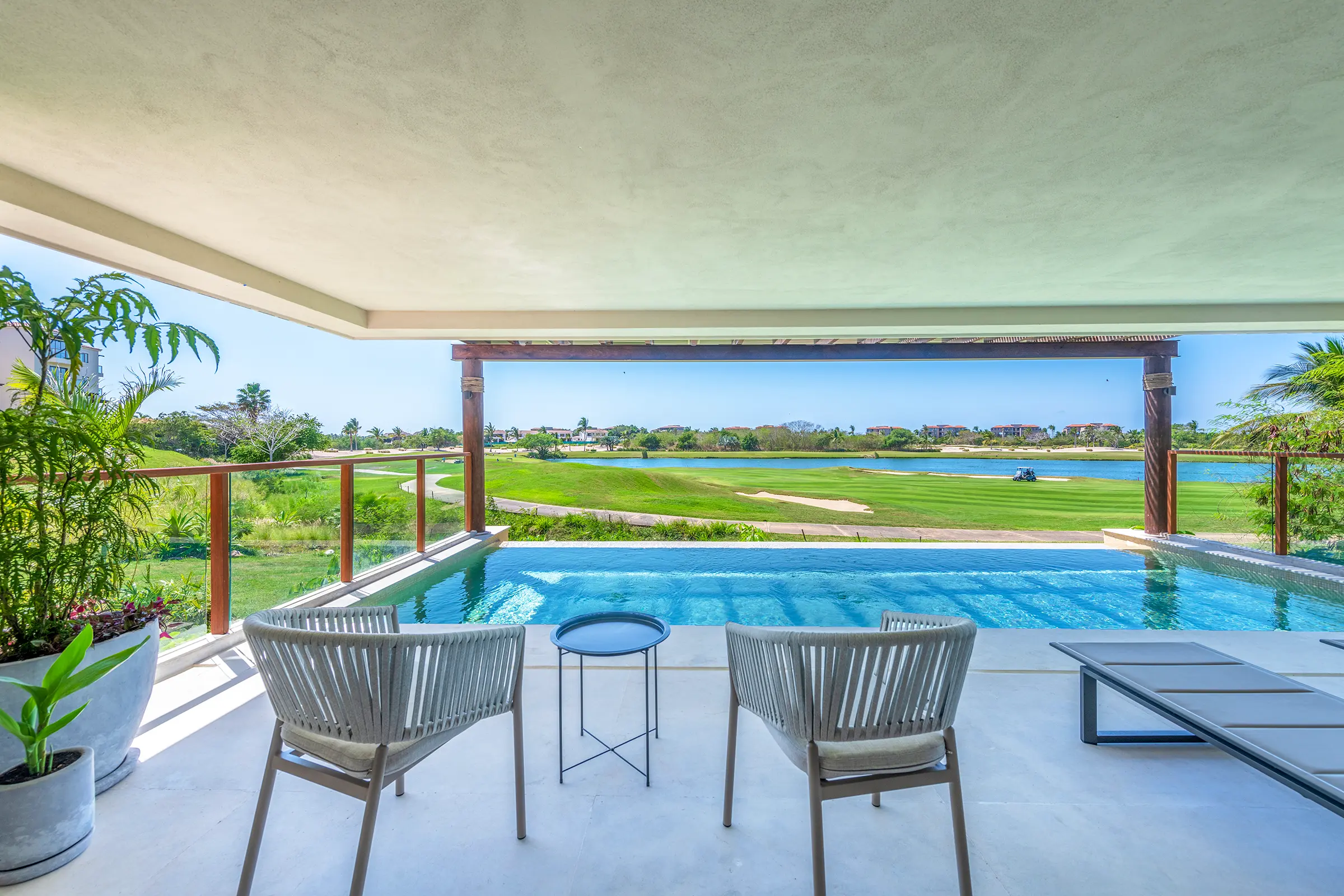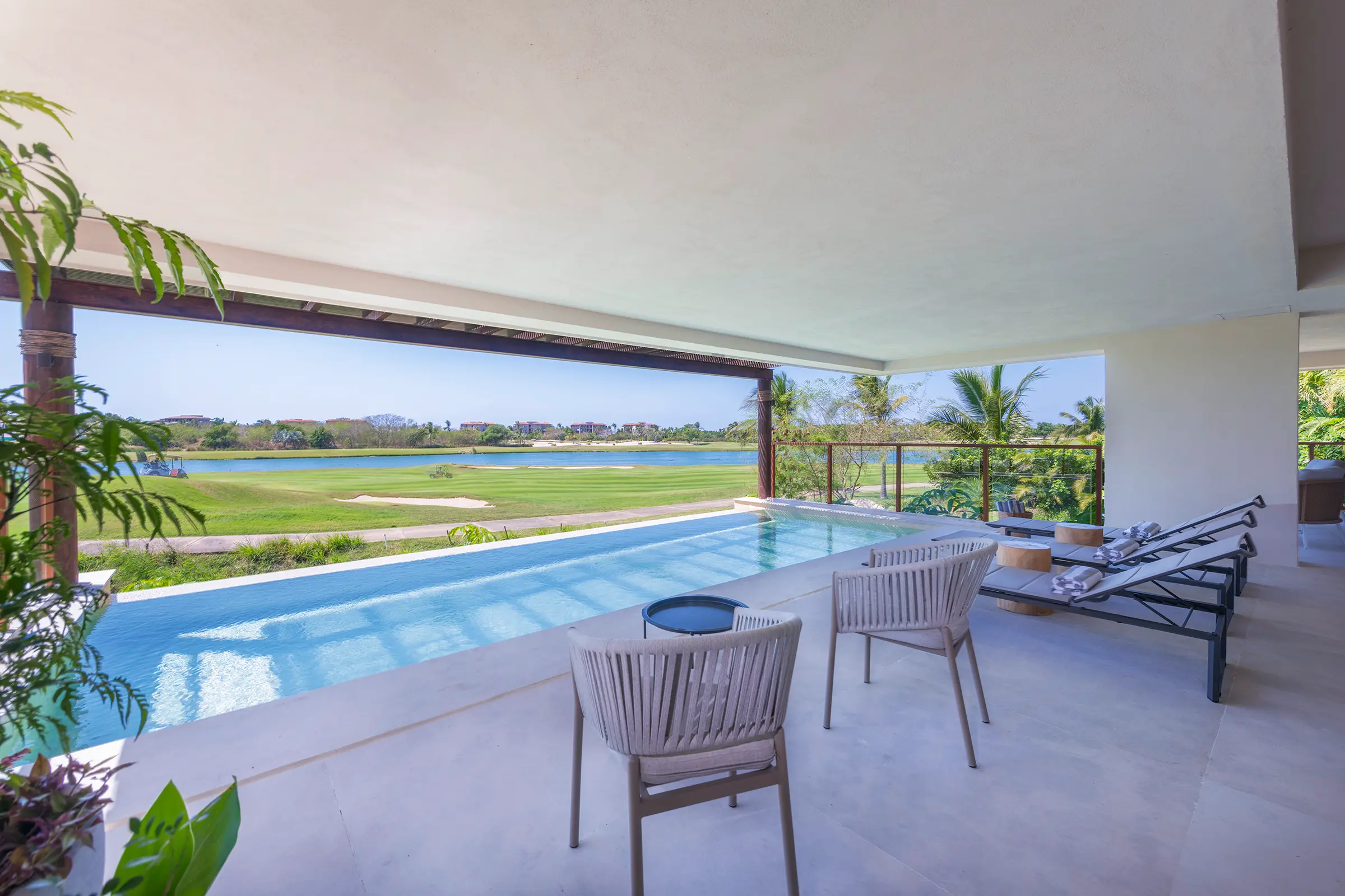 – Private plunge pool with a terrace overlooking the golf course.