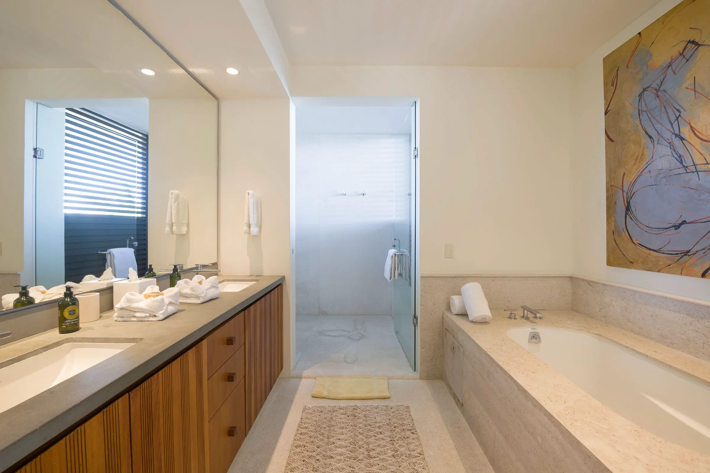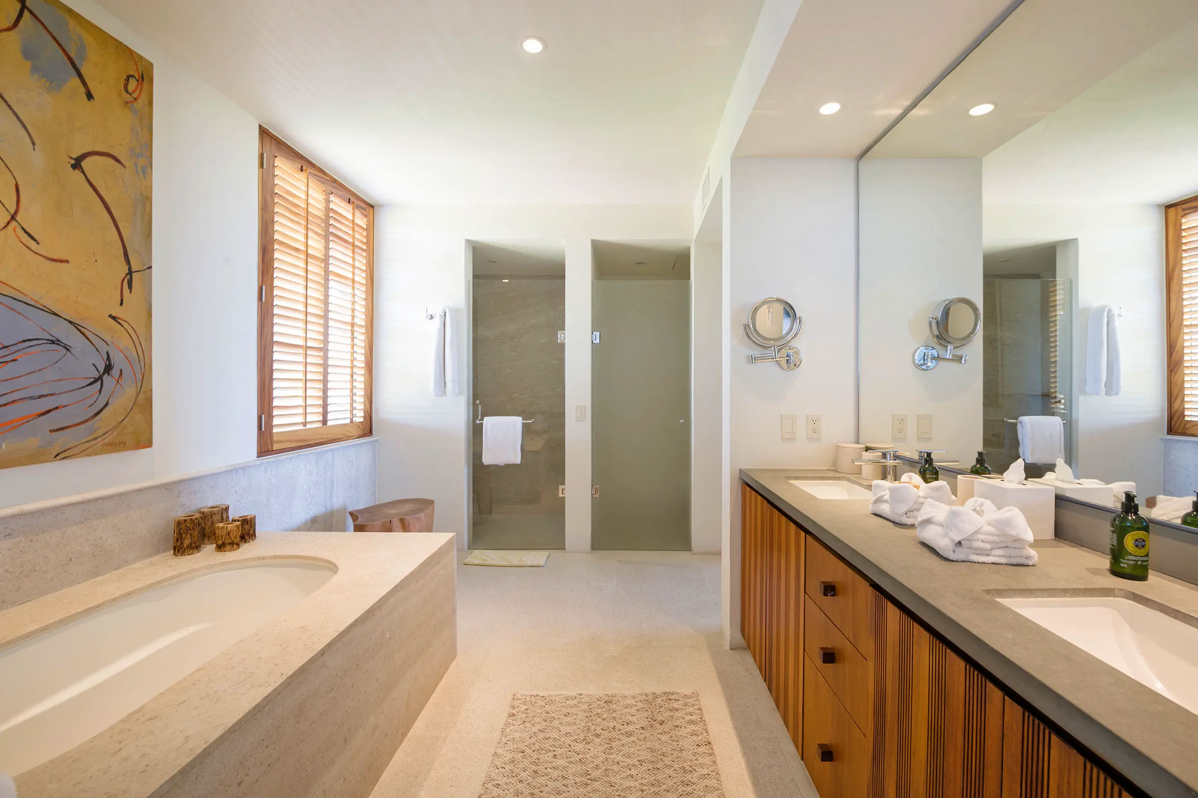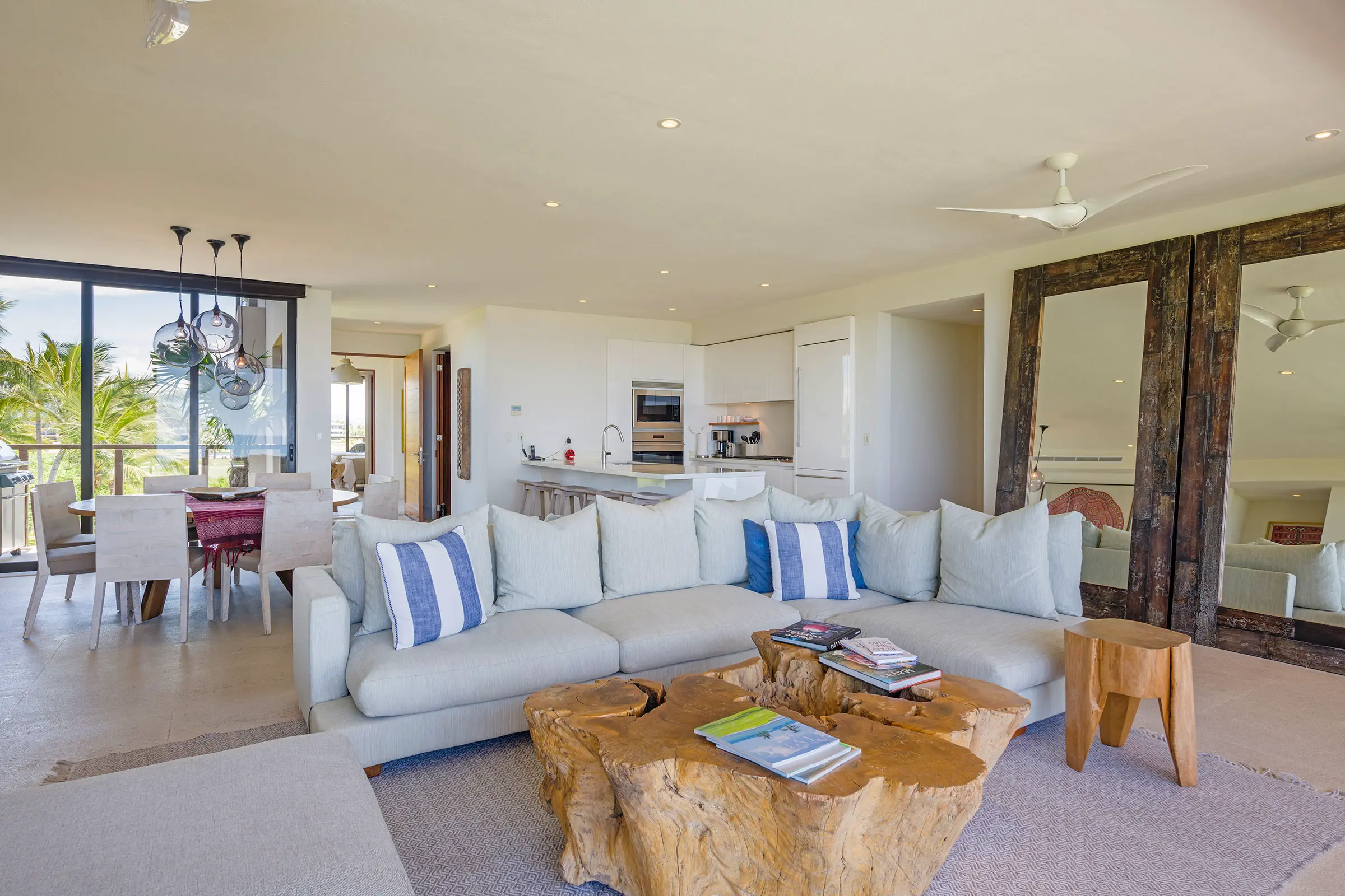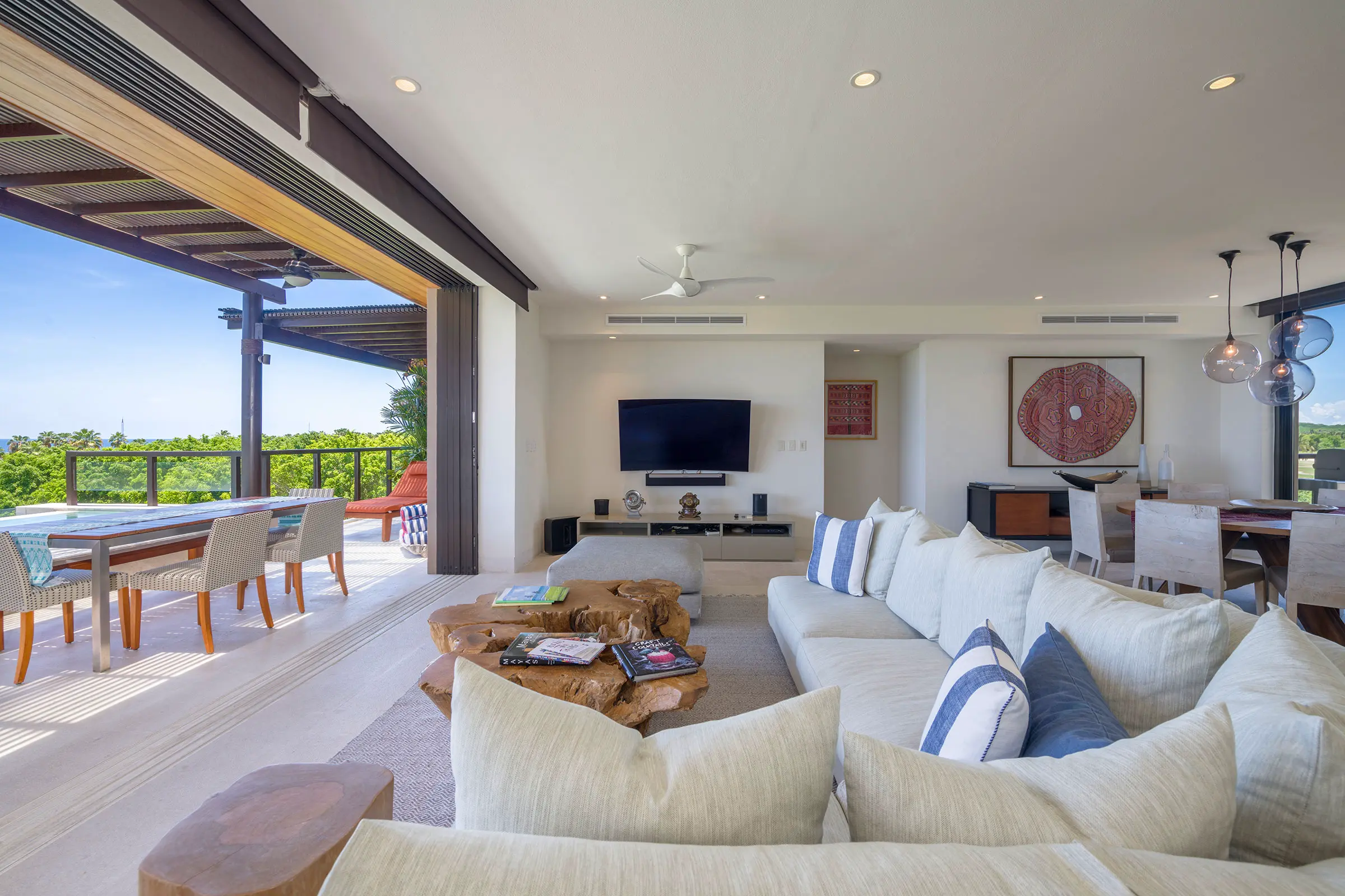 The condo has a private plunge pool, perfect for cooling off while admiring the ocean views, and a 6-person golf cart, making exploring Punta Mita’s beautiful surroundings easy. In addition, guests benefit from Premier Golf Membership, which grants access to Punta Mita’s world-class golf courses, beach clubs, and various exclusive amenities.