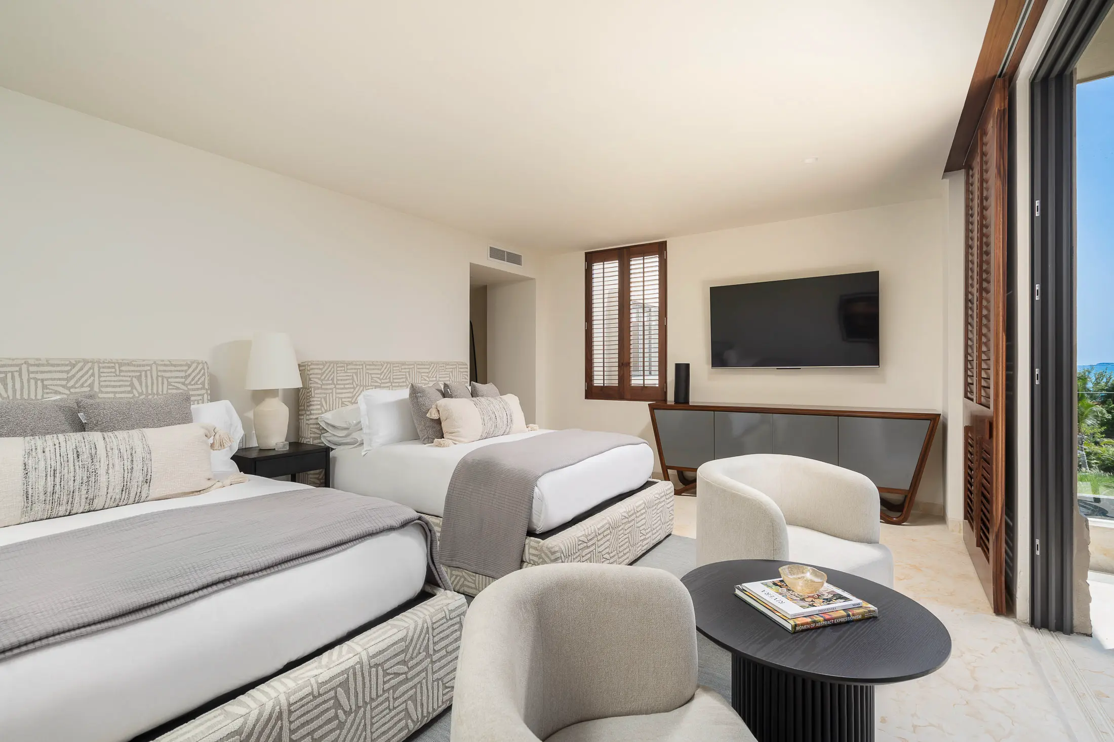 Perfect for families, this room provides two queen-size beds, an en-suite bathroom with a rain shower, and ceiling fans with air conditioning to keep the room cool and comfortable.