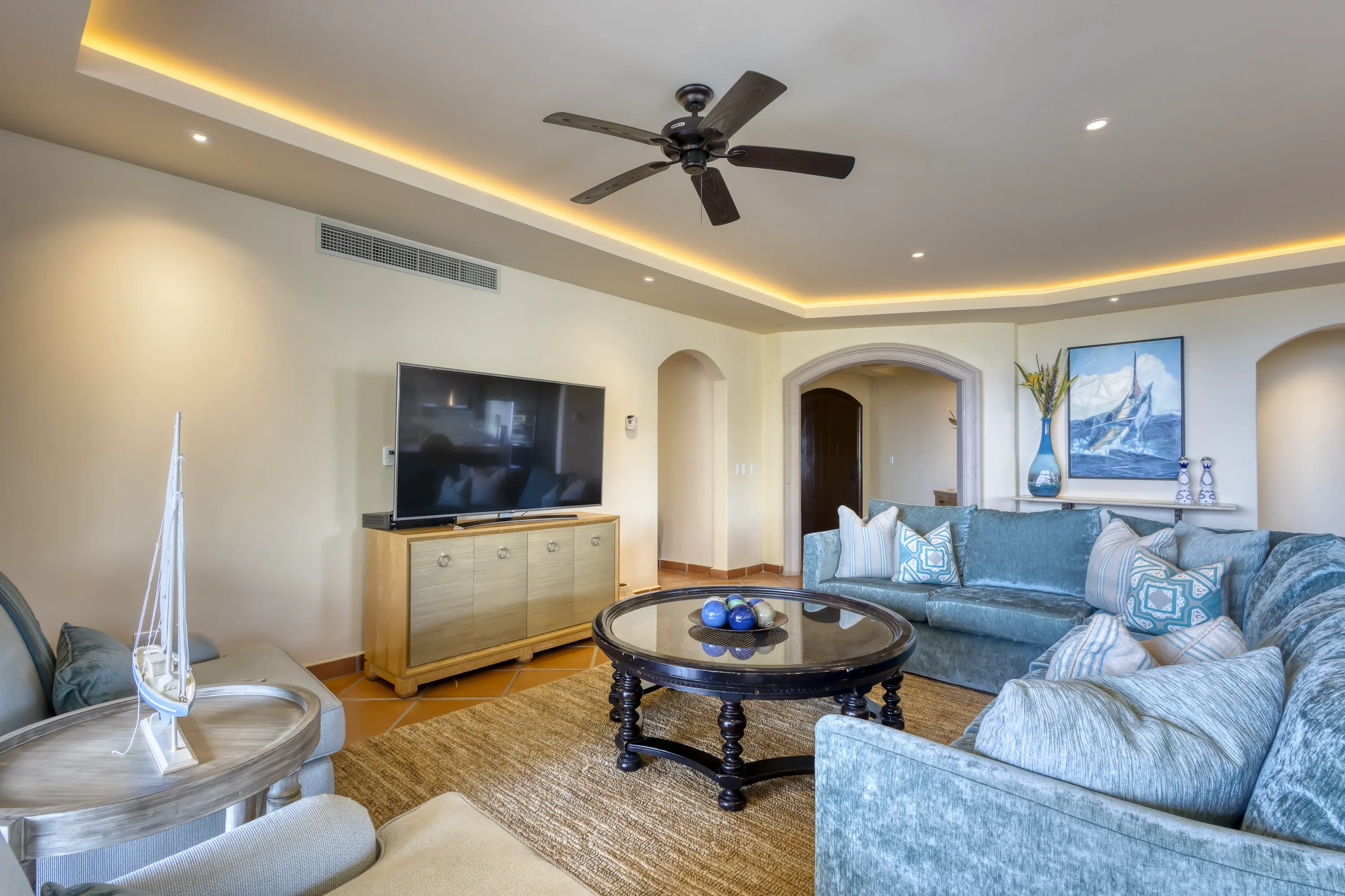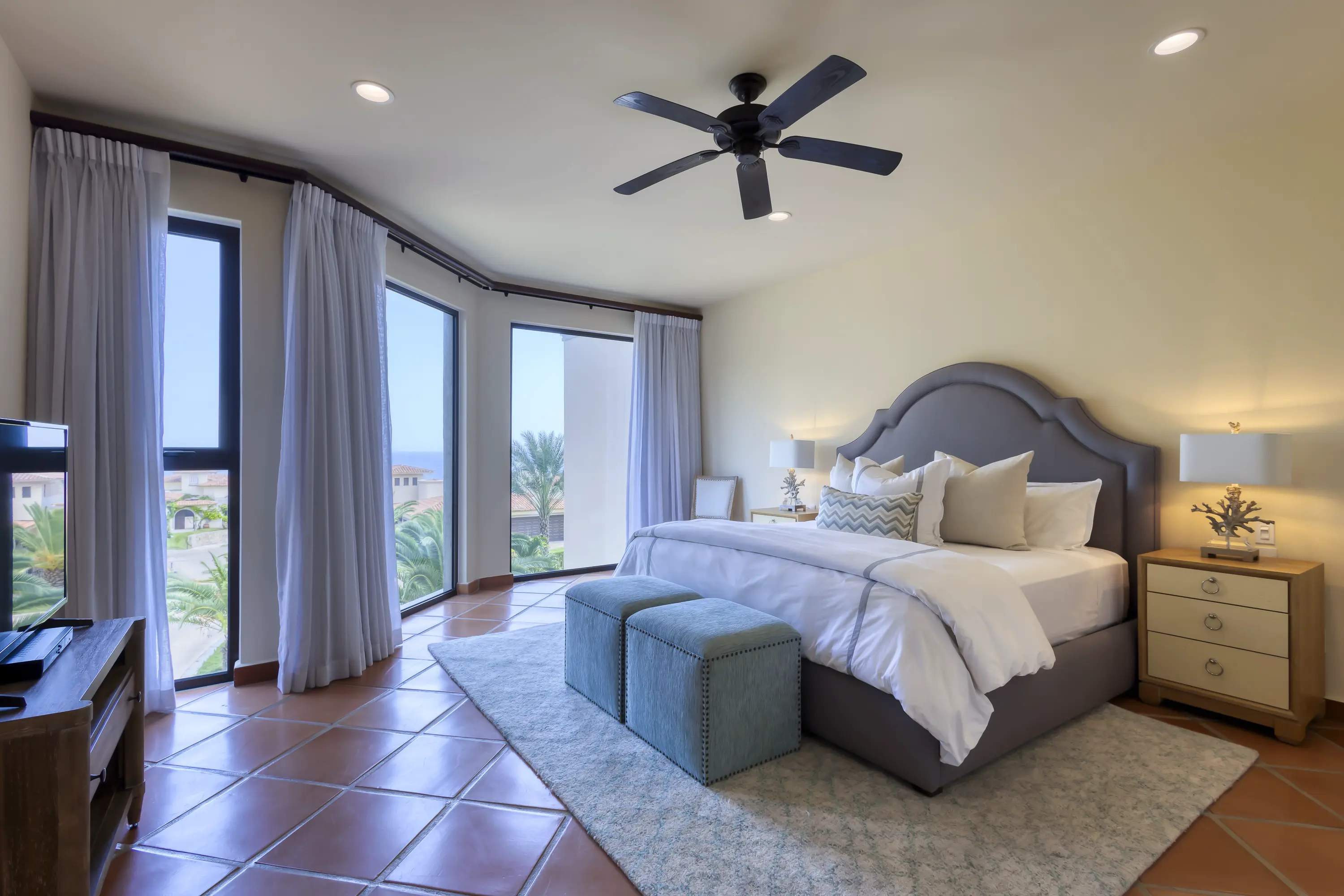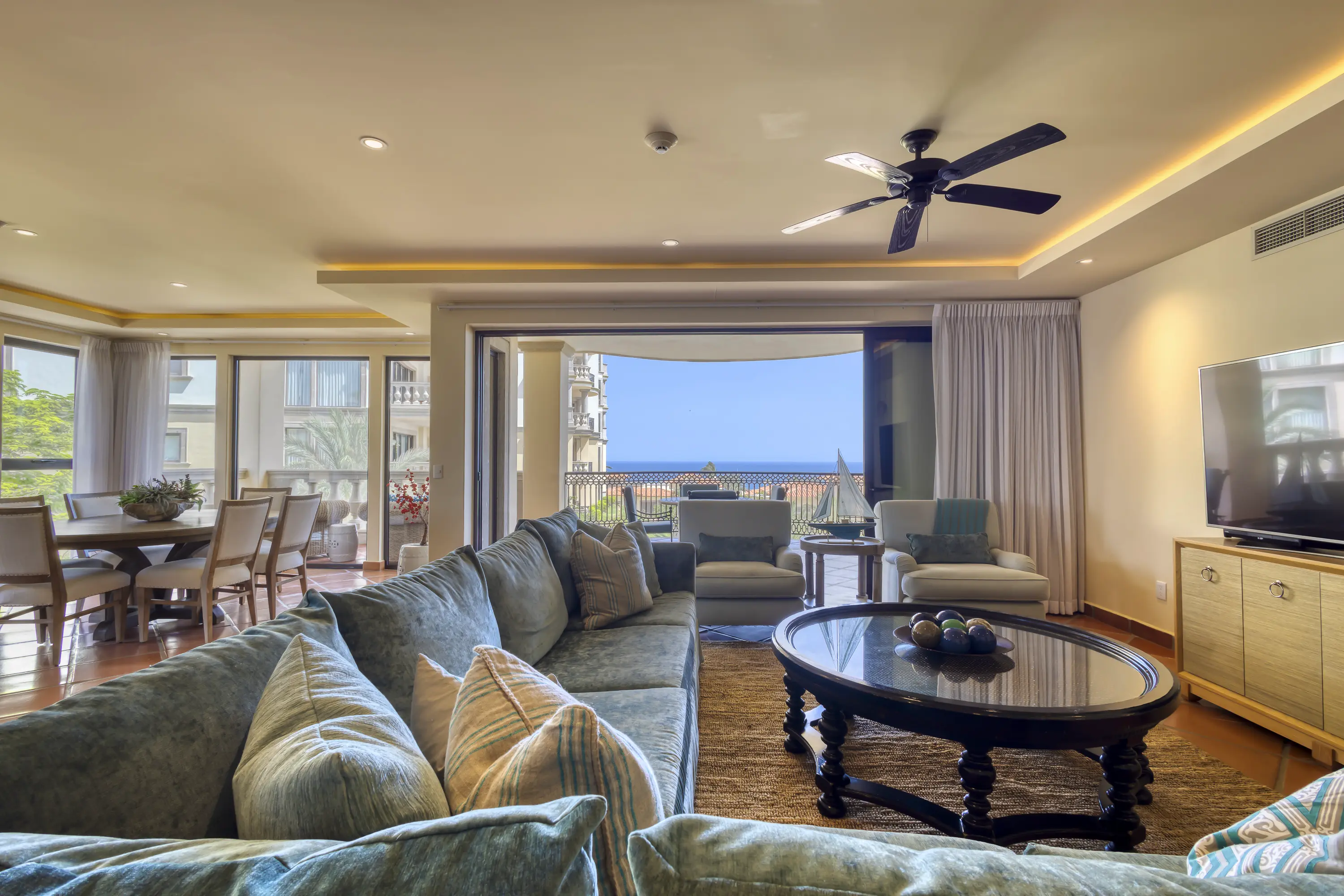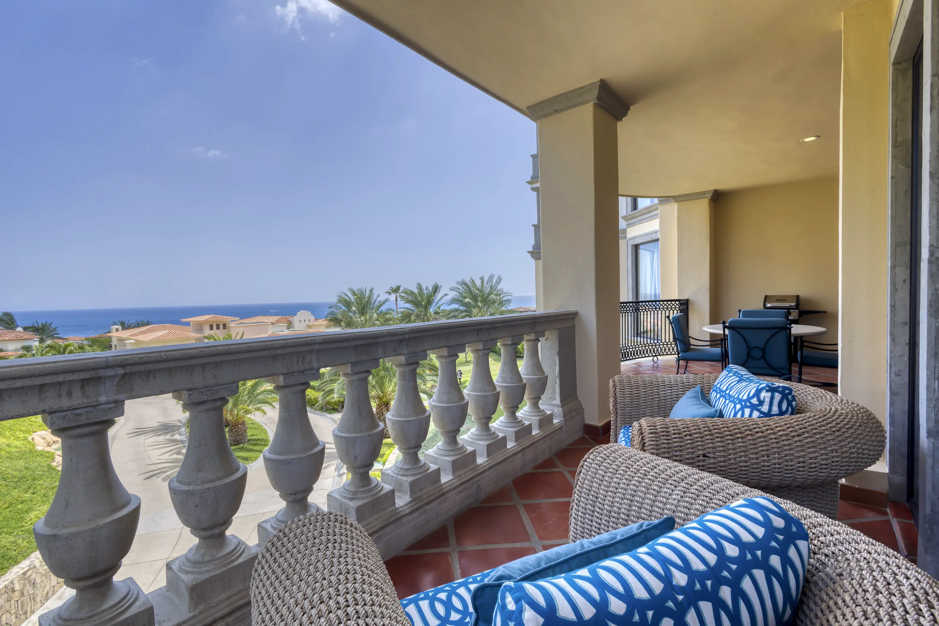 This beautiful 2,500+ square ft. Puerta Del Sol condo offers fantastic ocean views and is located inside the private Cabo del Sol gated golf community. To arrive at Puerta deSol’s three condo towers, you must go through two security gates, ensuring high privacy and security.