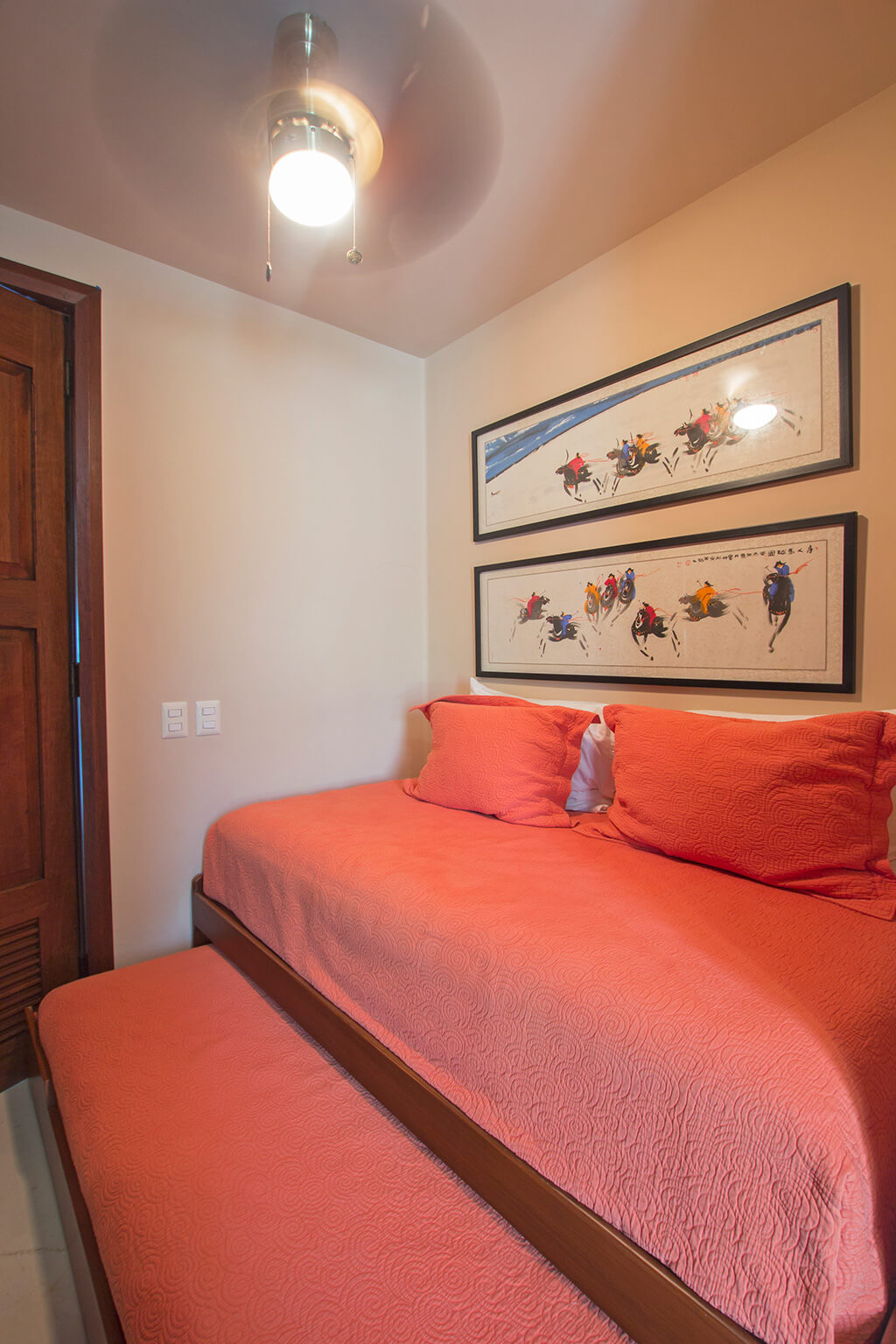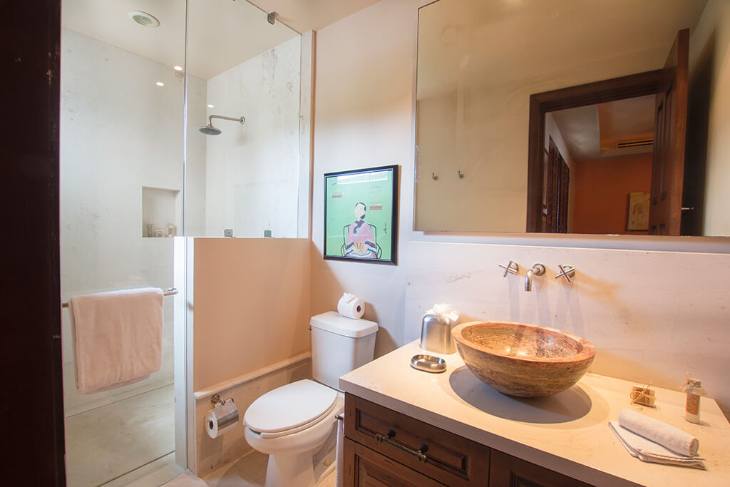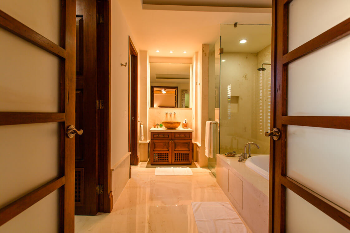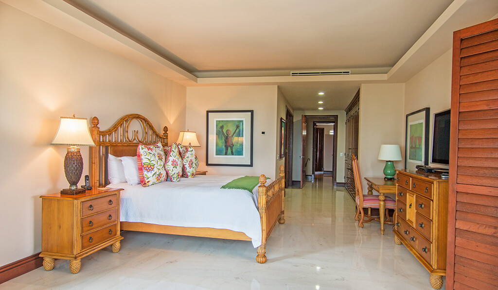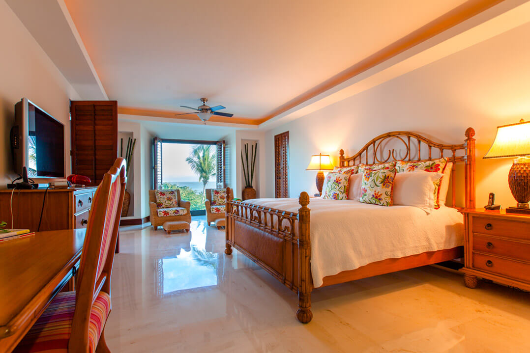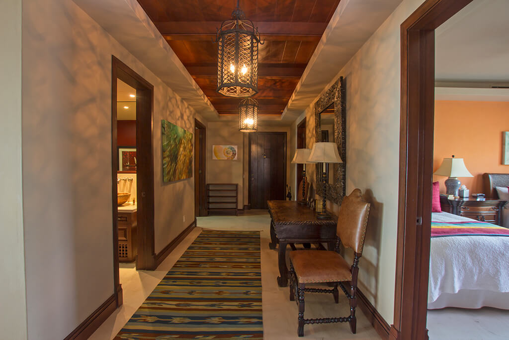Condo Violeta, positioned on the 3rd floor, shares its opulent pool with seven other distinguished Hacienda de Mita units. Additionally, its magnificent balcony offers unhindered panoramic views south and north. The strategic placement of building 4, closer to the ocean than other waterfront constructions, allows for a mesmerizing view of Punta de Mita town’s illuminations on the left and the sprawling golf course to the right. Not to mention a distant view of the enchanting Marietas Islands.