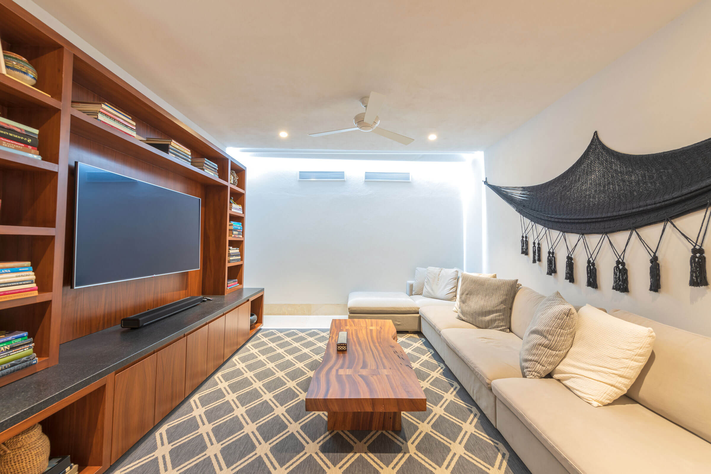 An array of amenities await at Estate La Sierra, starting with a fully equipped kitchen. There’s also internet, a TV room, and a cozy living room with a TV and bar. A Premier Golf Membership is provided to make your stay even more memorable.