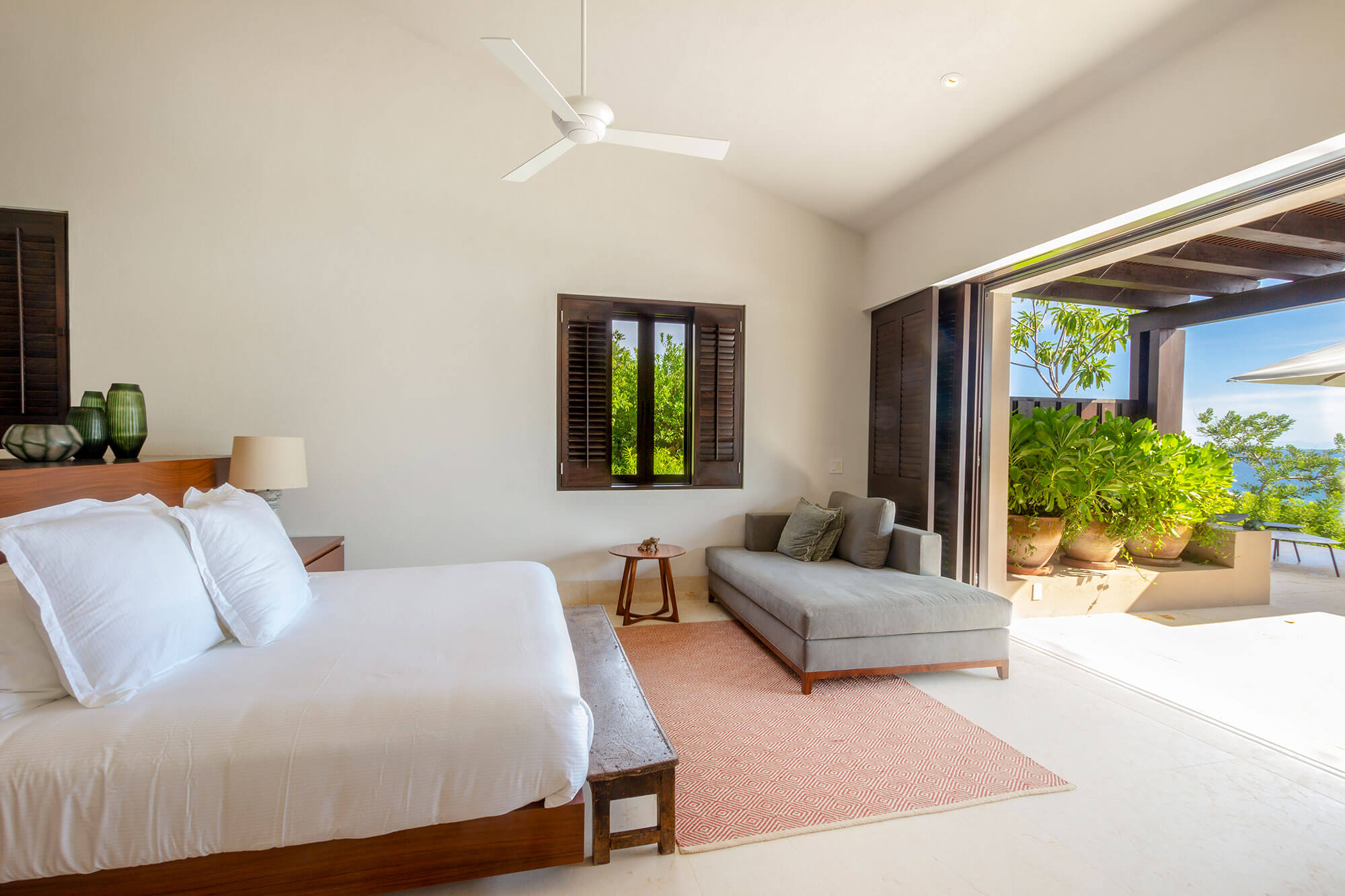Another king-size bed awaits in Bedroom 3, complemented by a TV, air conditioning, and a ceiling fan. Like Bedroom 2, this room has an ensuite bathroom with a shower and a closet. And, of course, it grants mesmerizing ocean views.