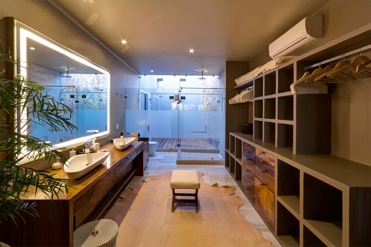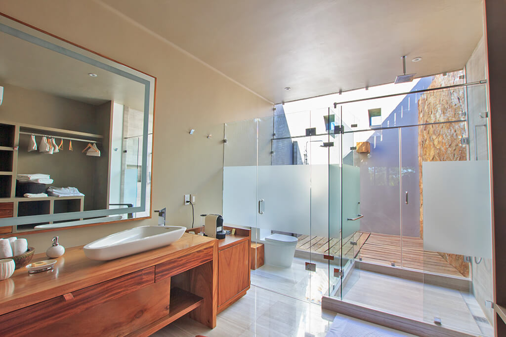 Each bedroom at Estate Palo de Brasil offers a tranquil sanctuary. The design is for unrivaled comfort. The main suite is a spacious refuge. It features a king bed, a private bathroom, a steam room, generous closets, and private terraces. Bedrooms 2 and 3 have the same luxurious standards. They have king beds, private bathrooms, and secluded balconies. Bedrooms 4 and 5 are furnished with double and single beds and private bathrooms. All bedrooms have air conditioning, ceiling fans, a TV, iPod docks, and folding glass doors. Our family room also serves as an ideal sleeping area for children.