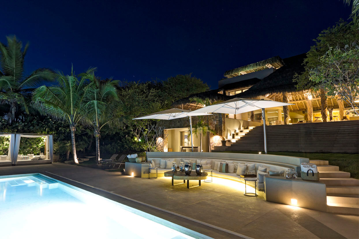 We’ve added an open-air dining room. There’s an expansive palapa featuring a bar. Ocean kayaks and paddleboards are available. A state-of-the-art media room has a 73″ HDTV, satellite TV, surround sound, and DVD. A fully equipped kitchen and on-site gym are open, too.