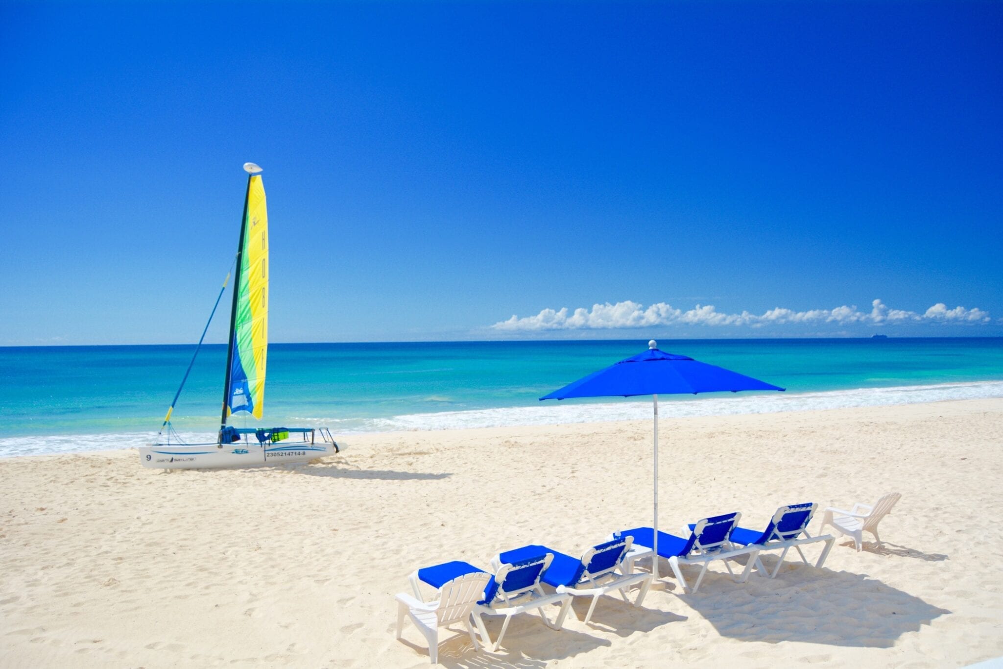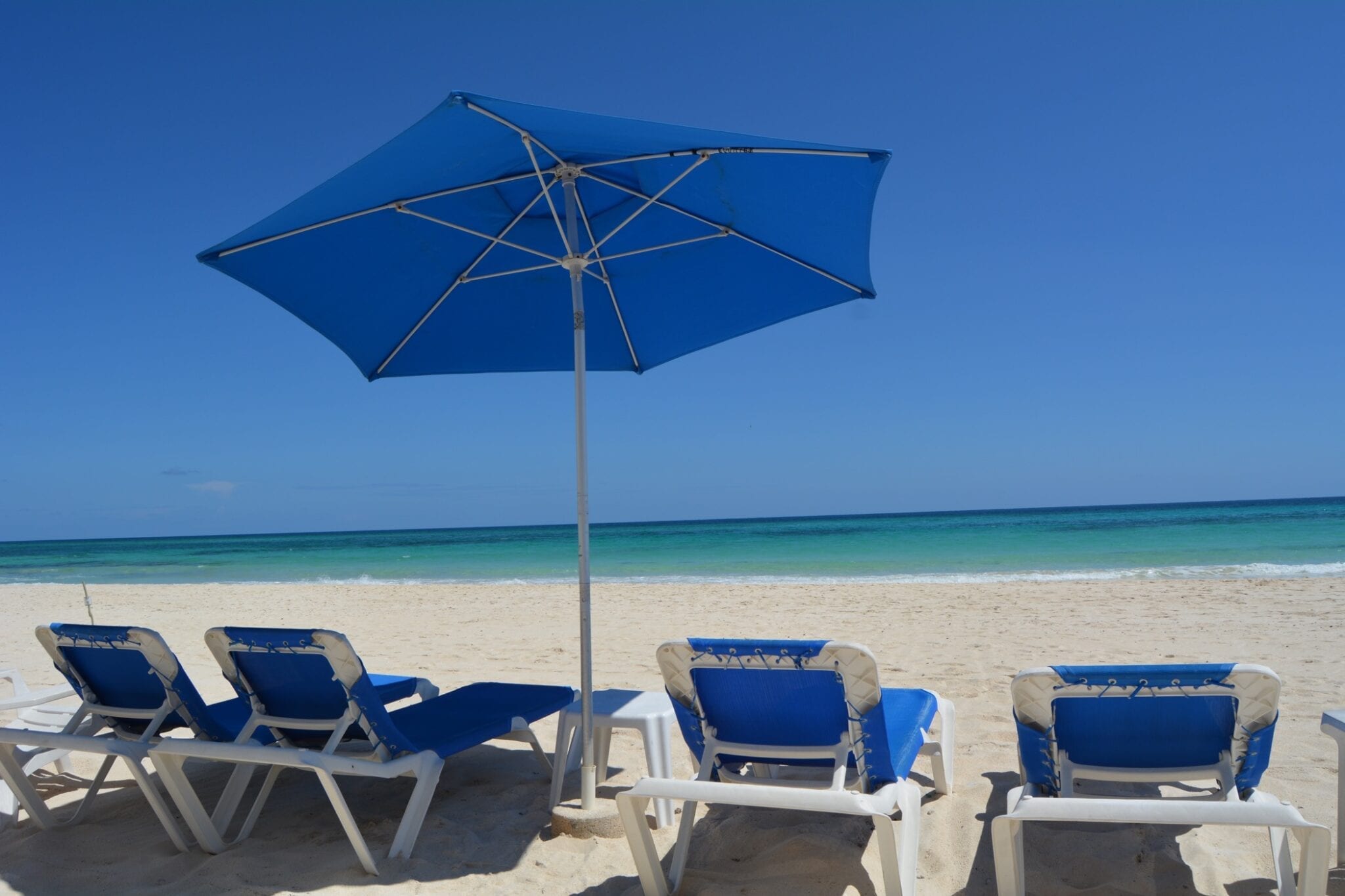 Hammocks on terraces and beaches, beach chairs, and umbrellas.