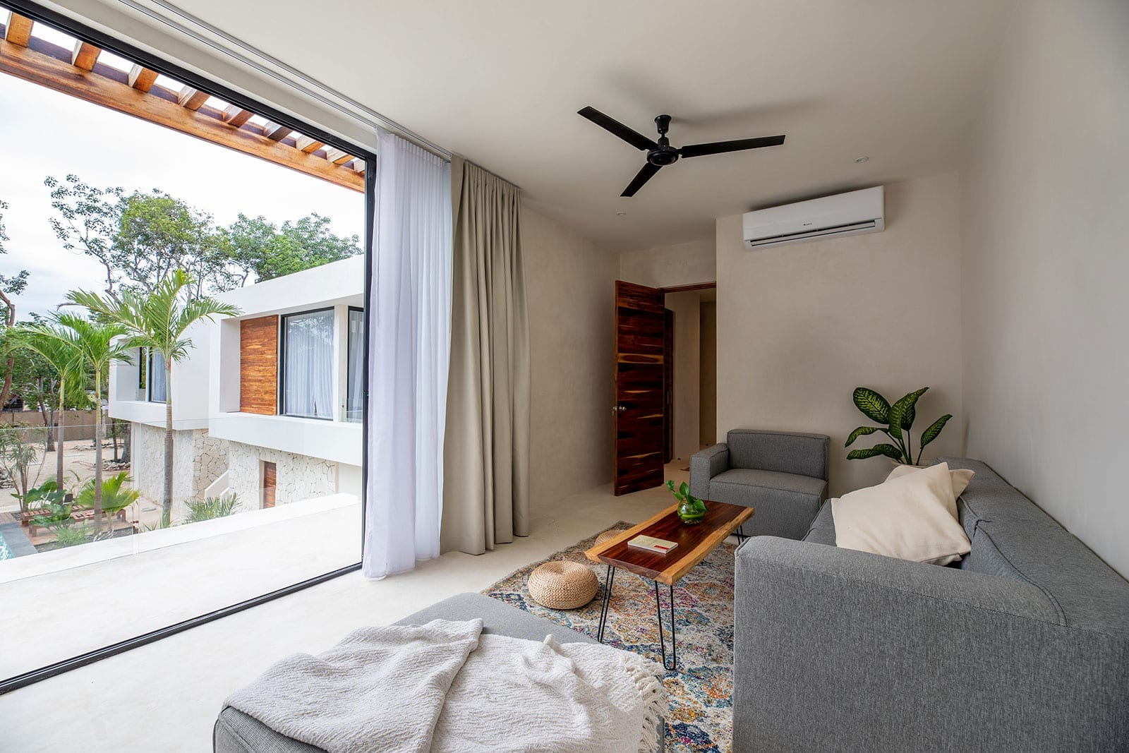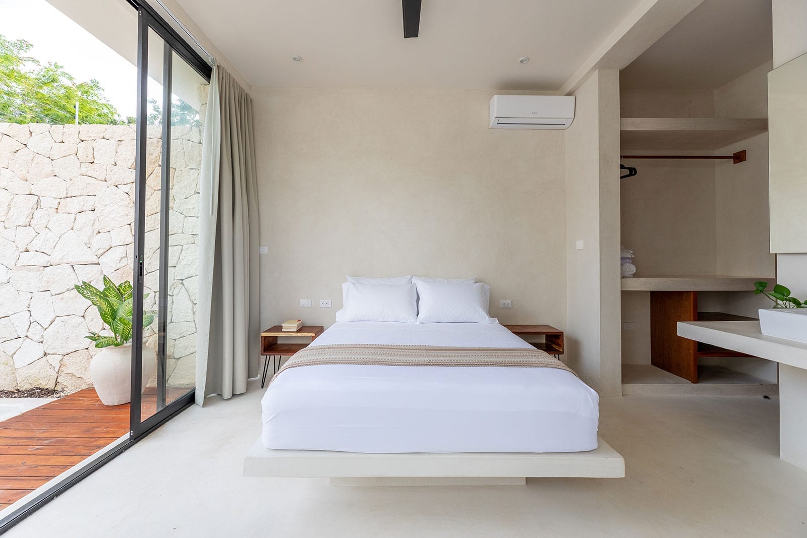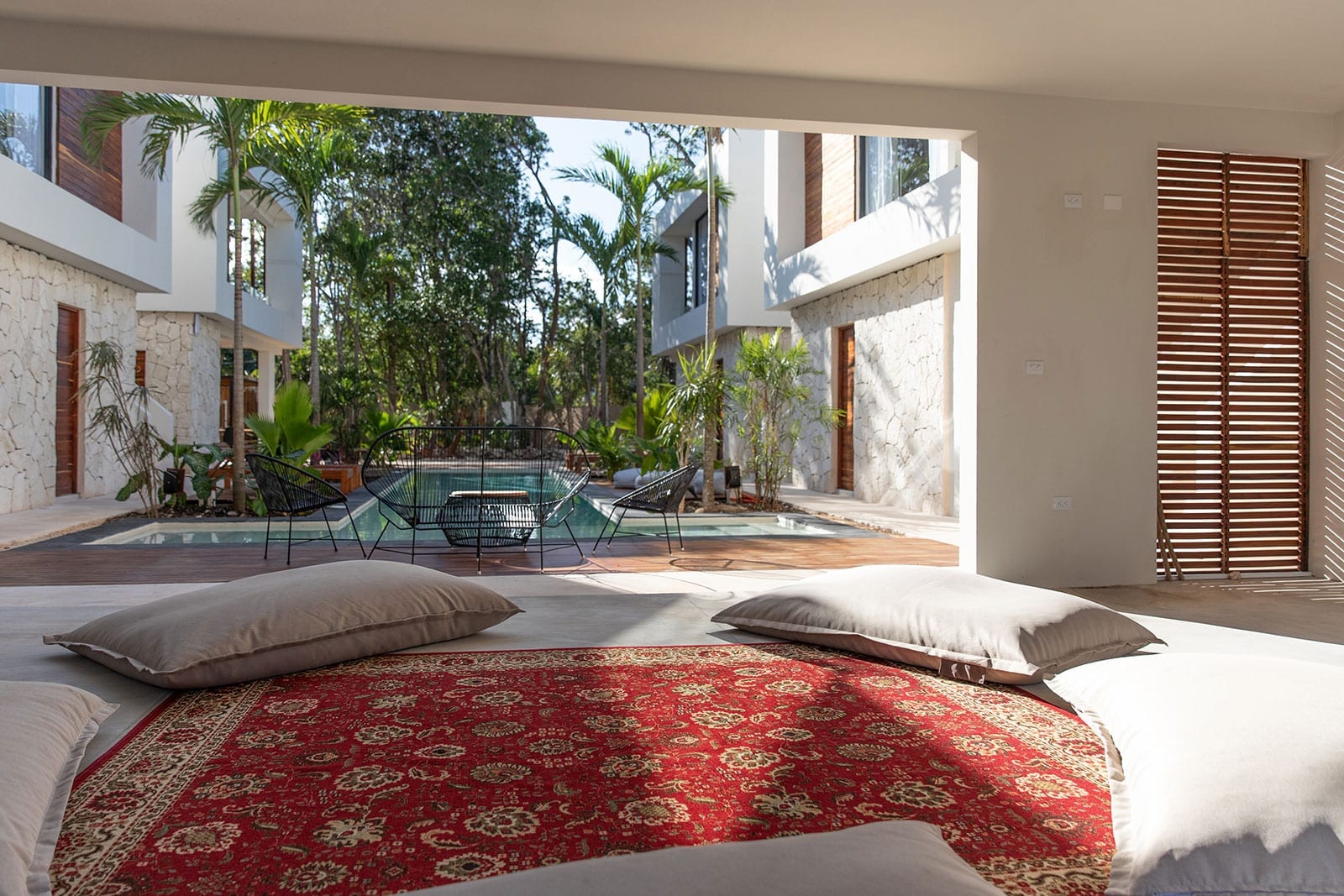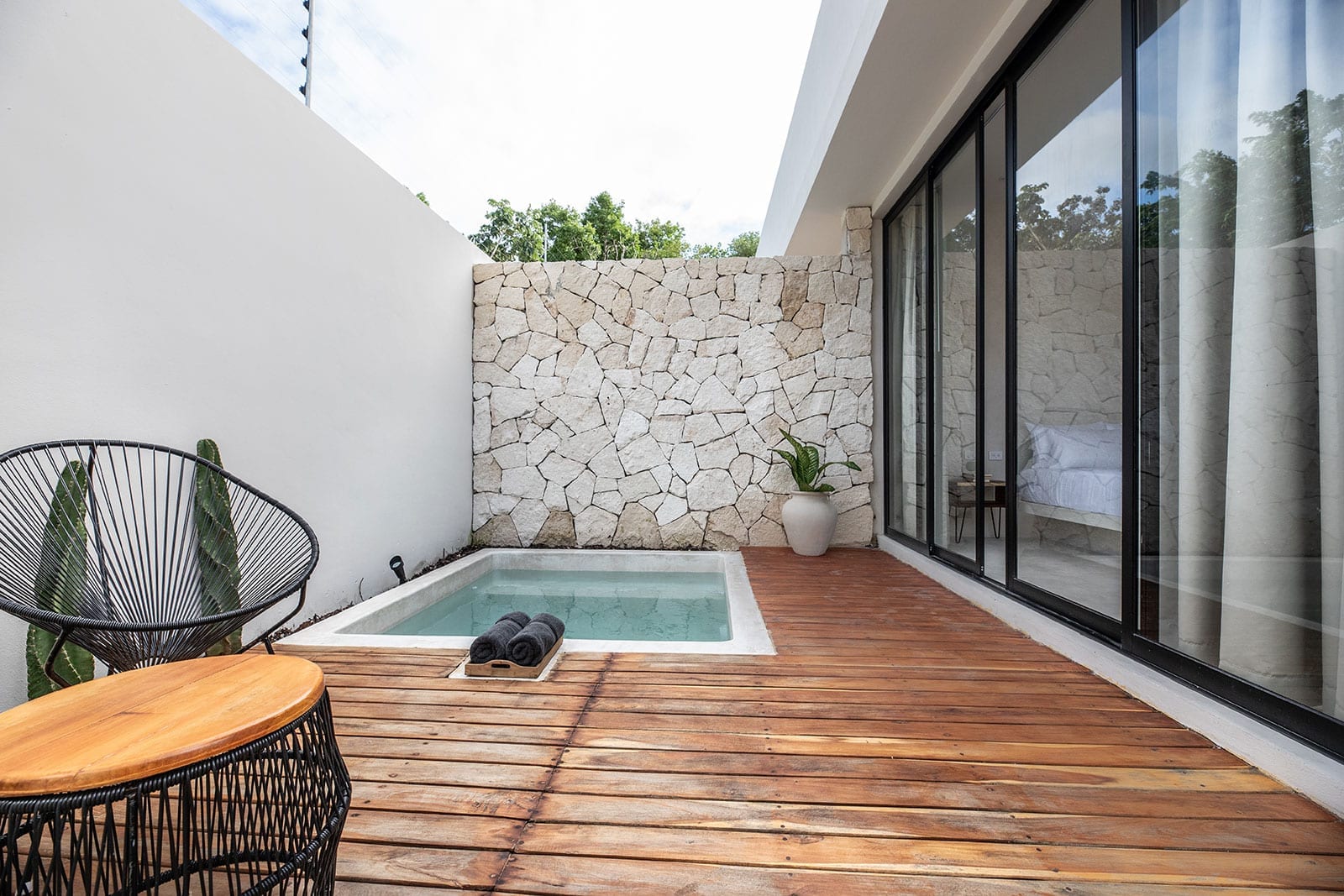 Hacienda 21 is thoughtfully configured for groups, with all rooms enjoying private entrances that support both togetherness and independence. Each room includes air conditioning, a private bathroom, and a private terrace, and several feature individual pools for an added layer of seclusion. The scale of the home allows guests to spread out comfortably, while still feeling part of a single, cohesive retreat.