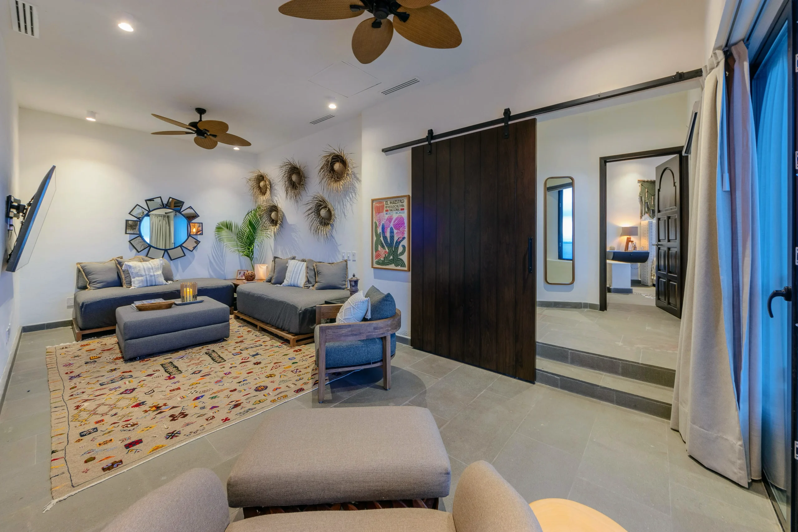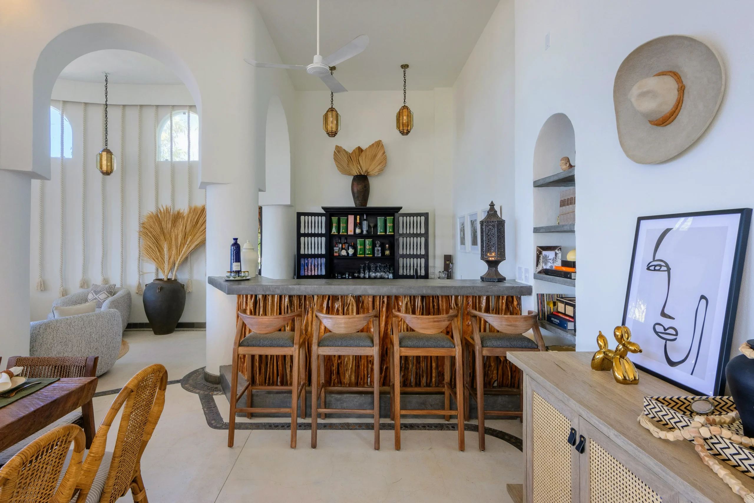 Two distinct yet connected structures—Casa Cosmos and Casa Mia—create a private compound ideal for family retreats, destination weddings, and executive getaways. Panoramic terraces, open-air lounges, and expansive sun decks blur the line between indoors and out, framing the ocean at every turn. Polished concrete, natural stone, tropical hardwoods, and artisan décor define a contemporary Mexican design that feels both elevated and effortlessly relaxed.