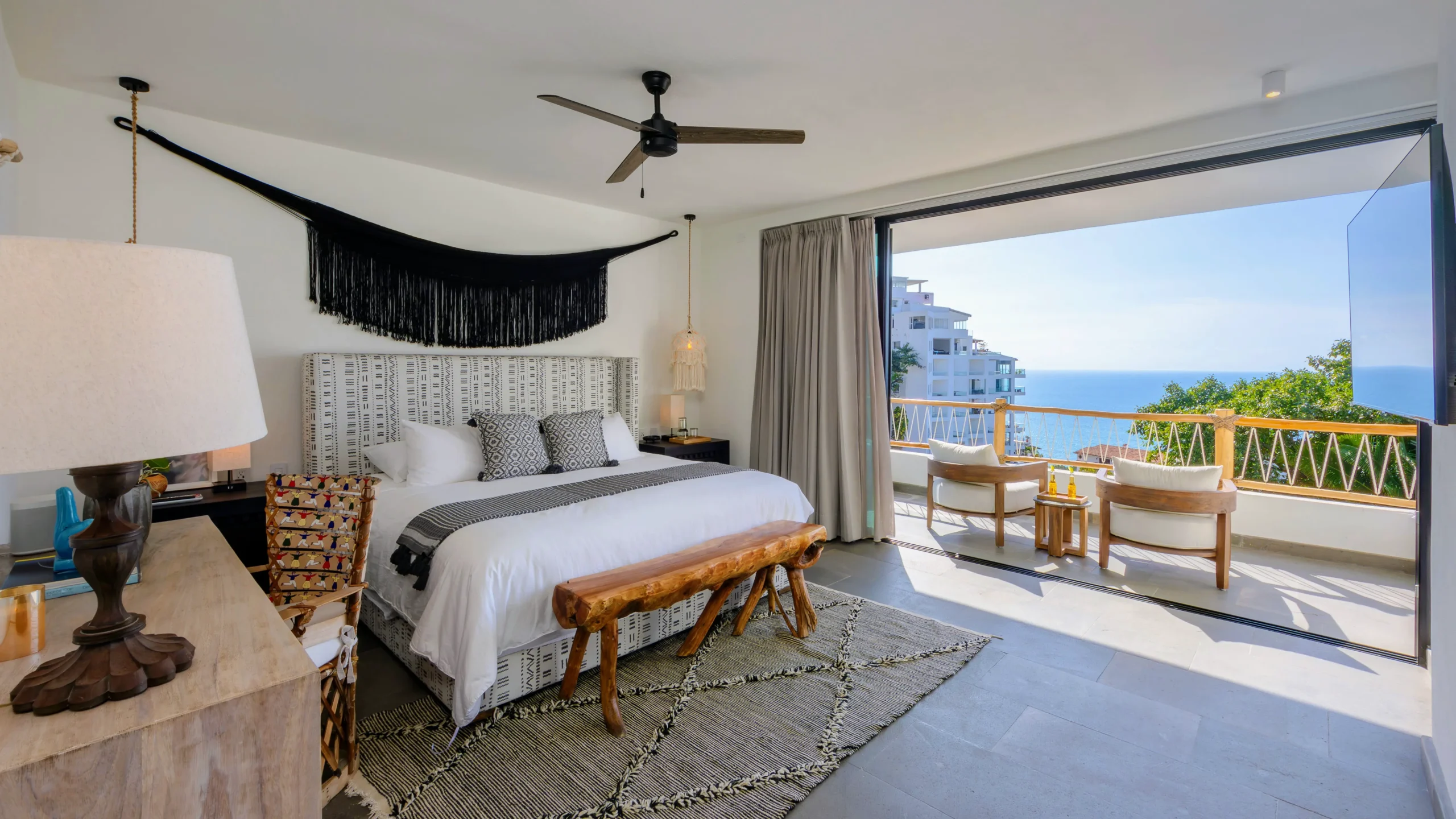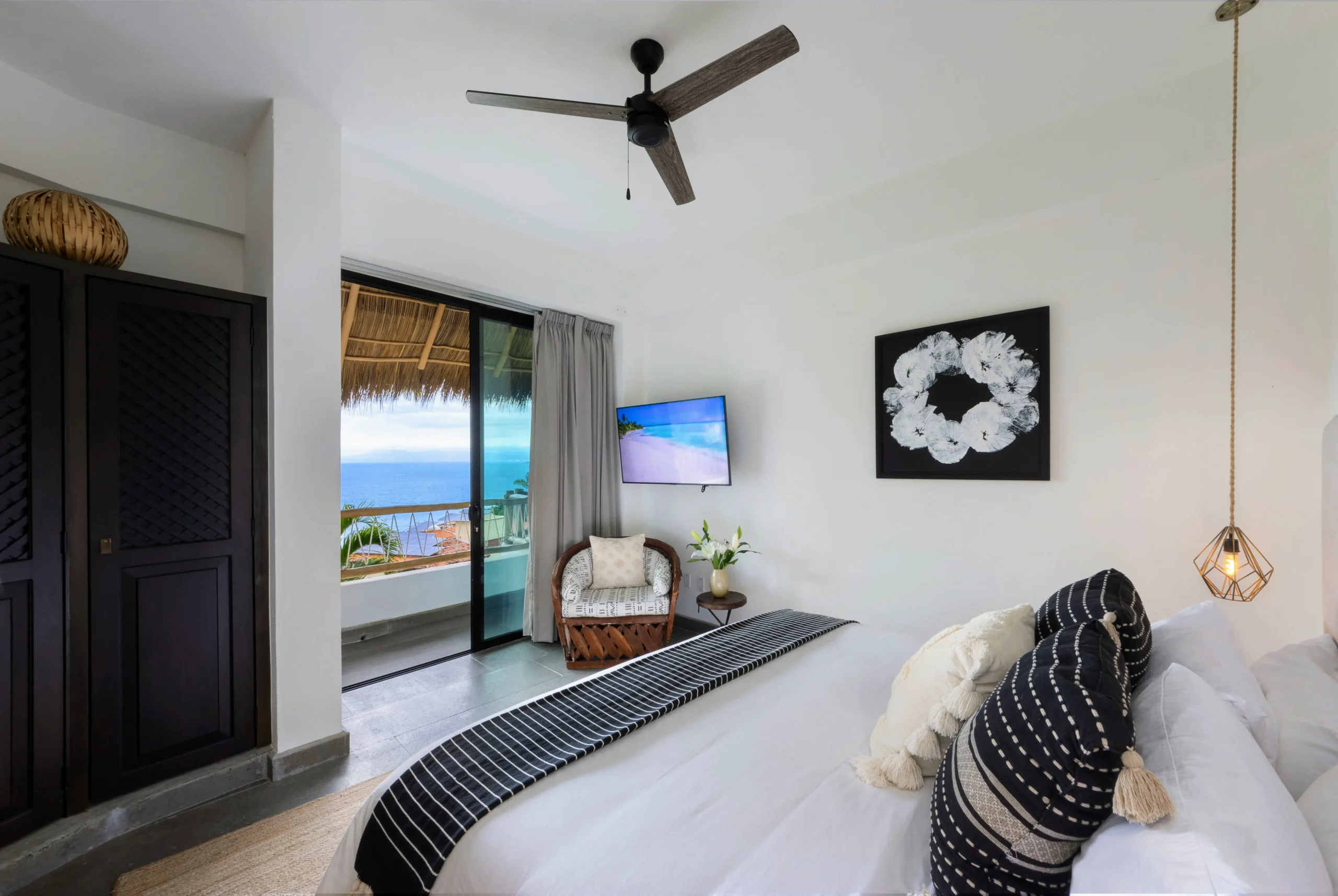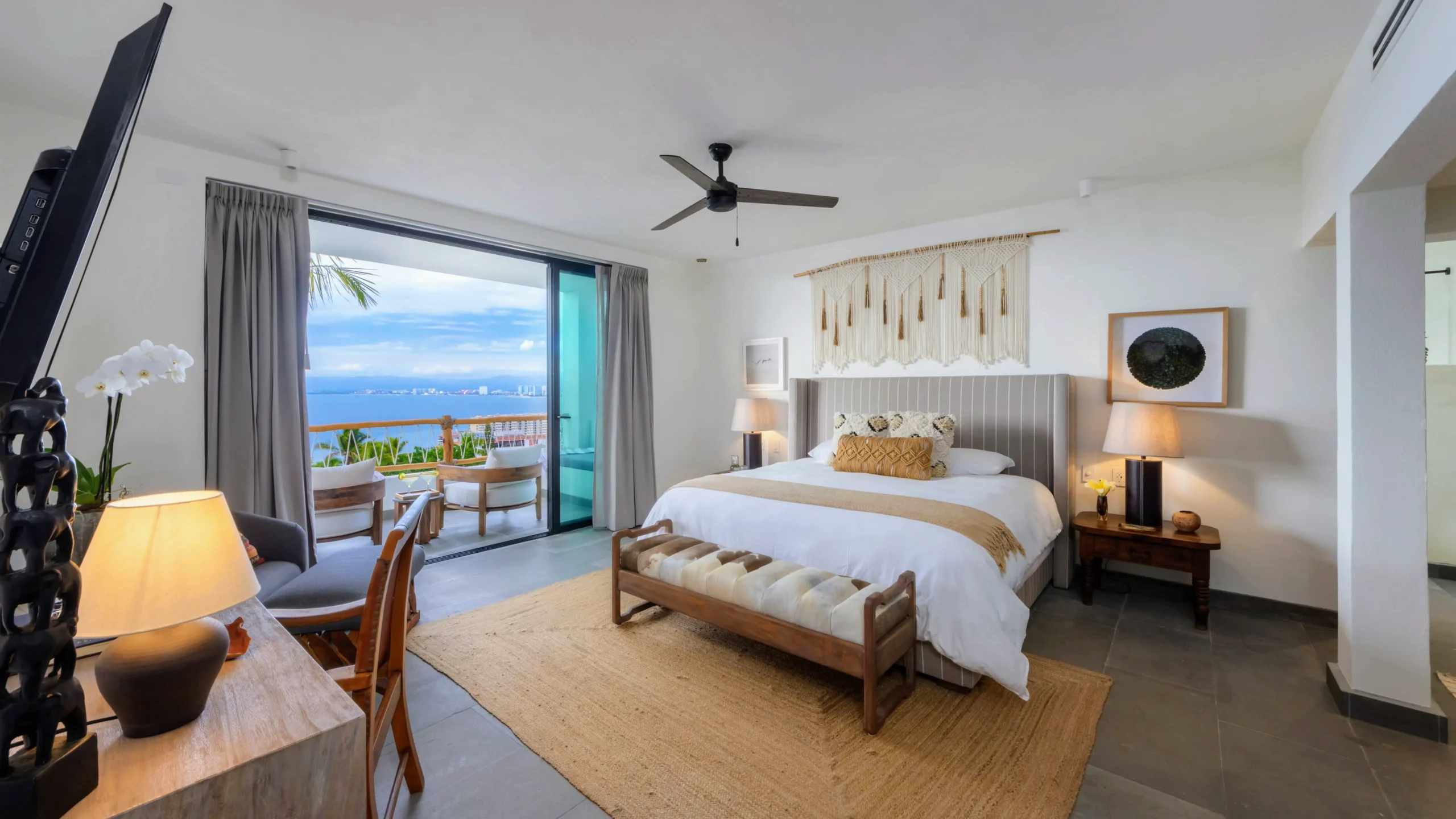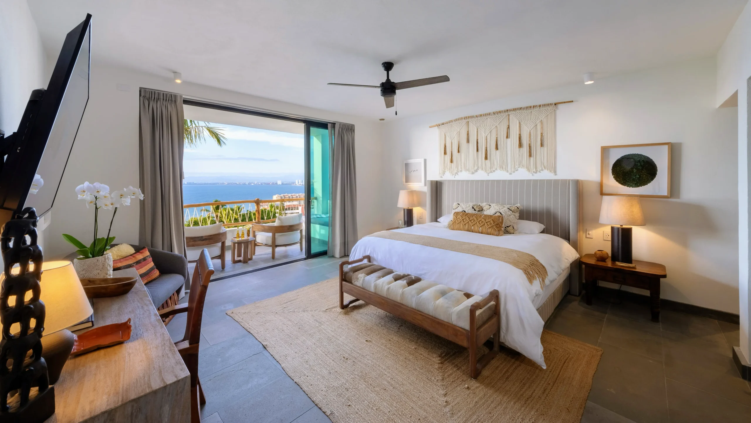 King size bed, En-suite bathroom, Double vanity, Bathtub, Walk-in closet, Ocean view, Terrace, Smart TV, Bluetooth Speaker, Safe, Ceiling Fan, A/C