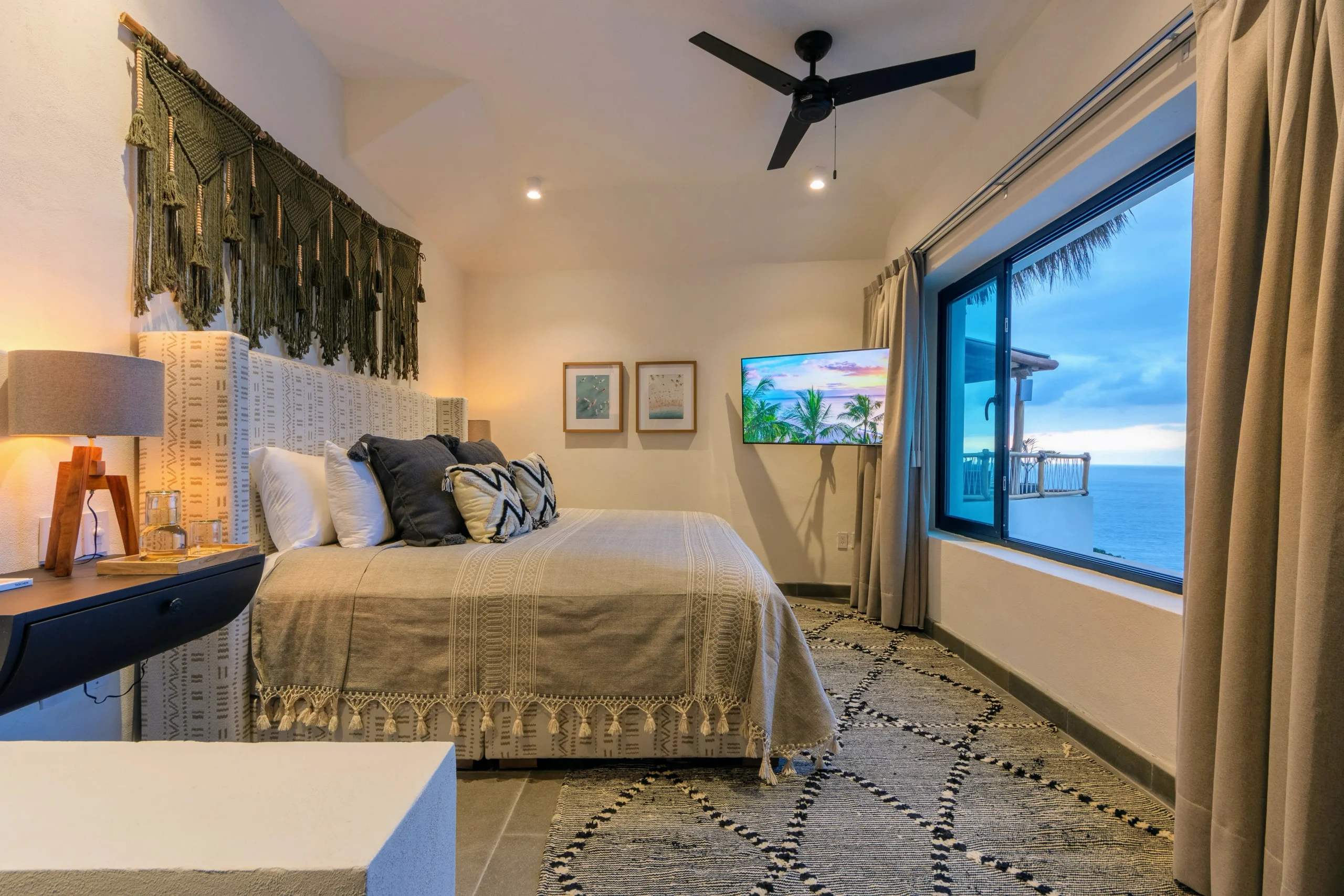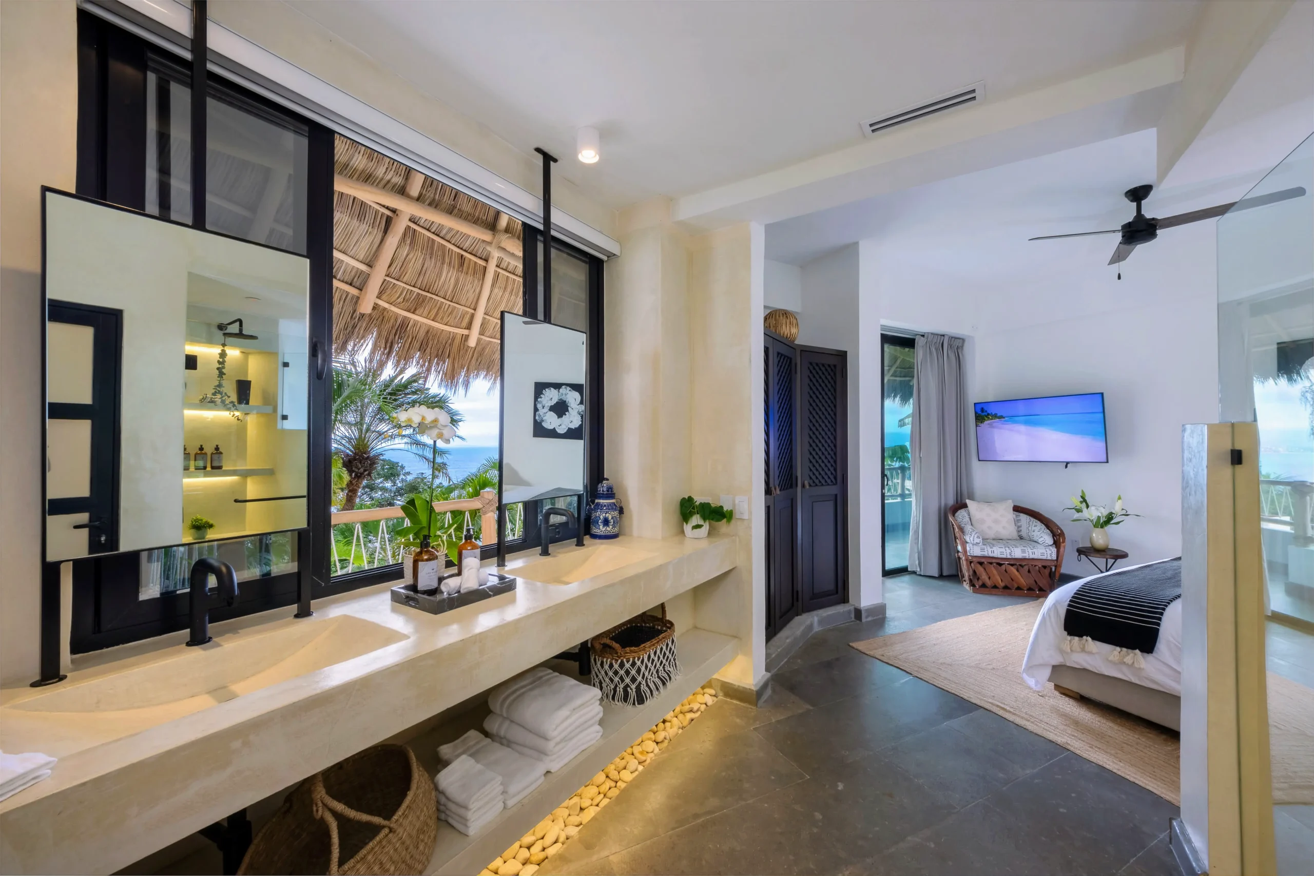 King size bed, En-suite bathroom, Double vanity, Bathtub, Walk-in closet, Ocean view, Smart TV, Bluetooth Speaker, Safe, Ceiling Fan, A/C