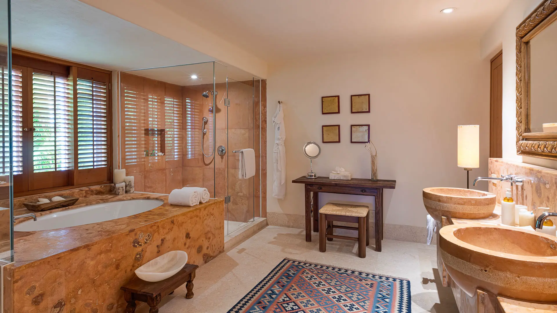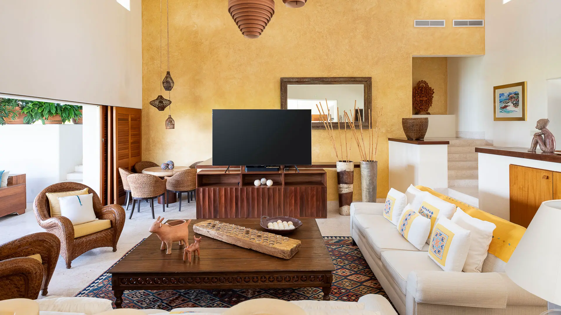 This villa’s interior boasts 8,000 sq. ft. of multi-level living space, offering modern Mexican design with natural tones and rich textures. Key features include: