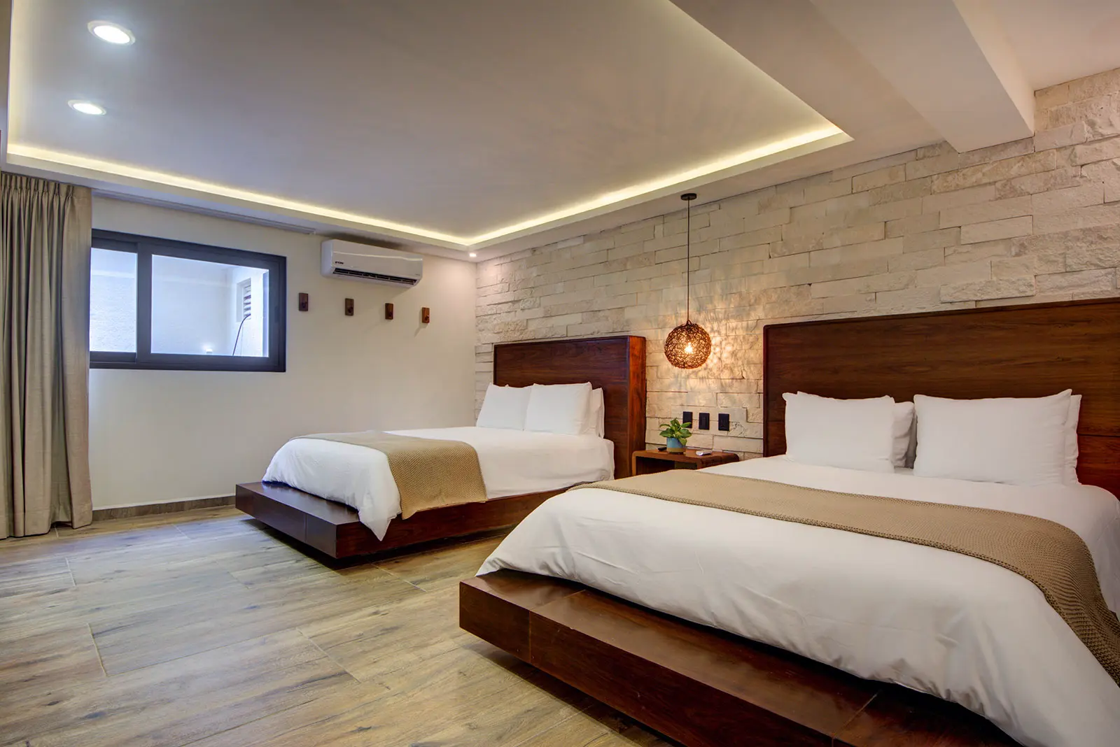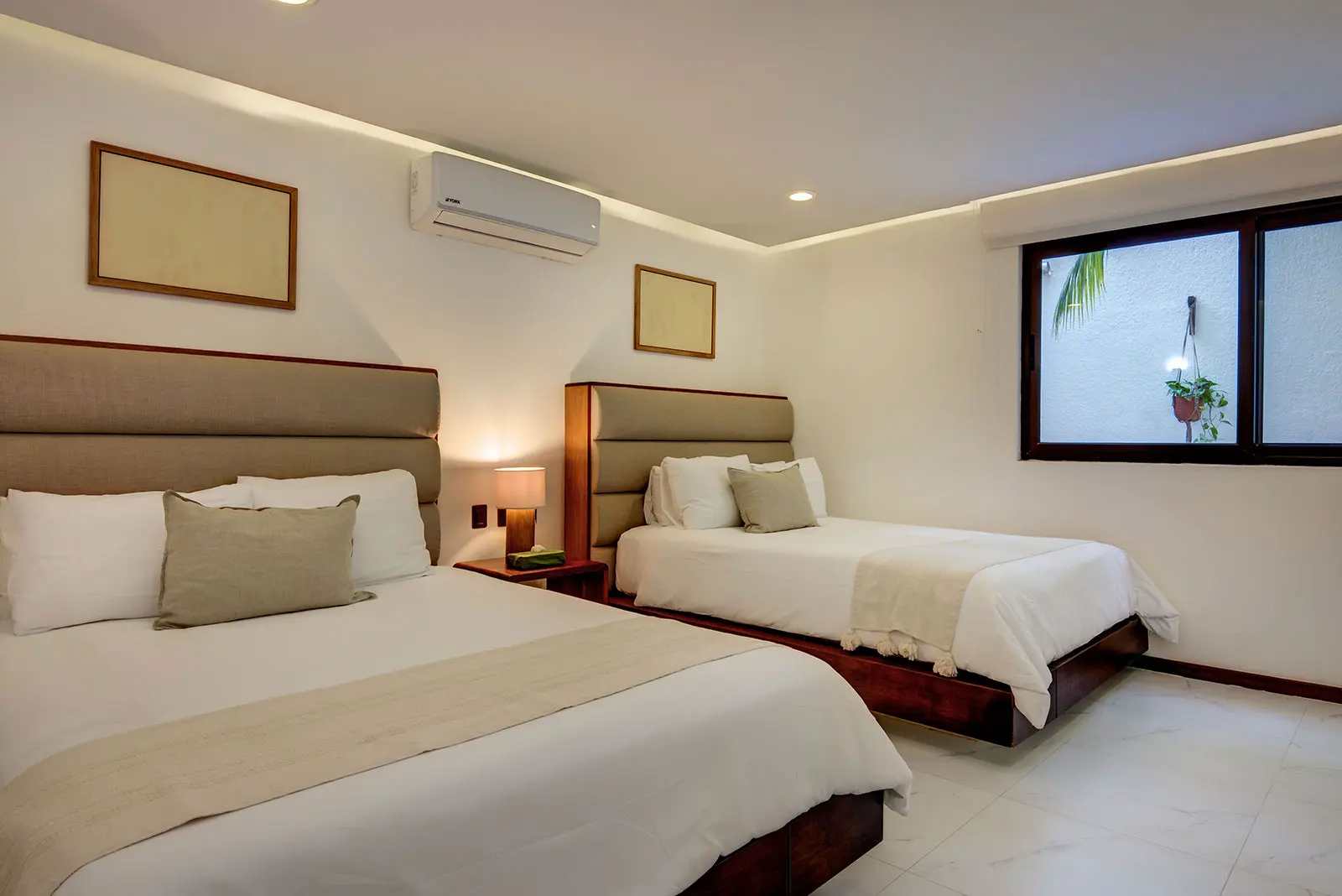2 Queen beds, Air conditioning, Ensuite bathroom with large walk-in shower, Hairdryer, Nespresso machine, Organic toiletries, Safety box, TV, Wifi access