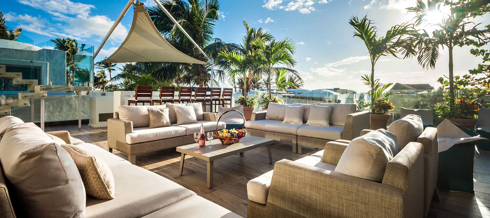 • Rooftop terrace with seating area and ocean view
