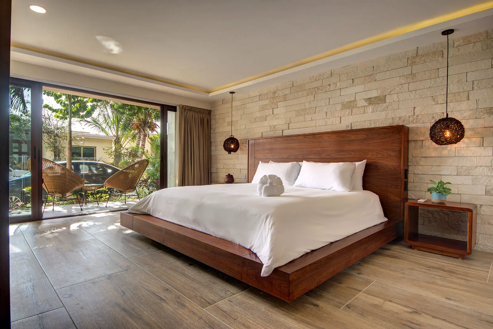 King size bed, Air conditioning, Ensuite bathroom with large walk-in shower, Hairdryer, Nespresso machine, Organic toiletries, Private patio with seating area, Safety box, TV, Wifi access