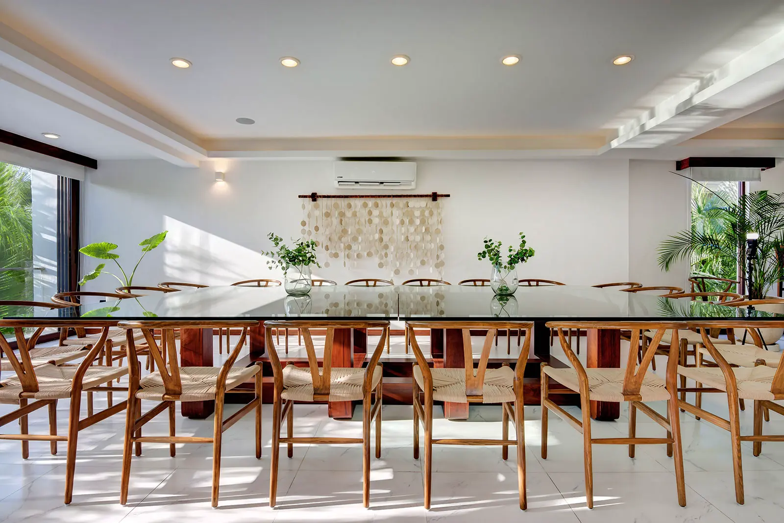 Playacar Vista Estate combines Vista Hermosa and Alta Vista, two side-by-side villas that can be opened up to function as a single, larger property. Together, they accommodate up to 42 guests across 16 deluxe bedrooms, offering a scale well suited to multi-generational families, milestone celebrations, or group getaways. The configuration allows guests to enjoy the sense of a shared estate while still benefiting from the privacy and flexibility of two independent residences.