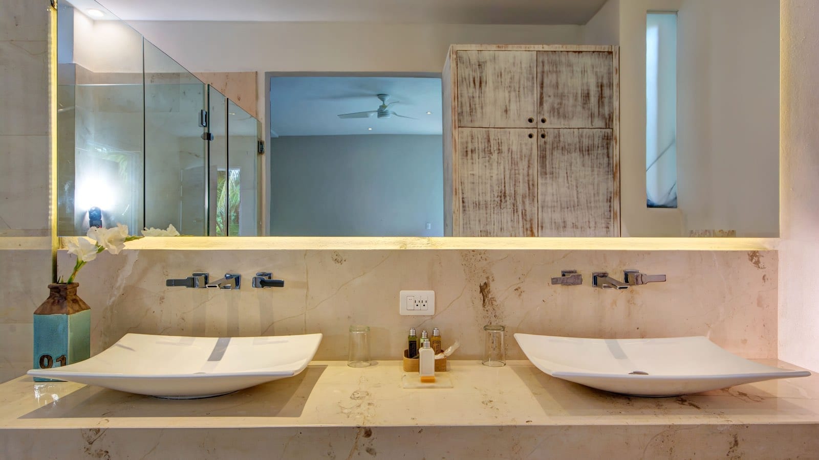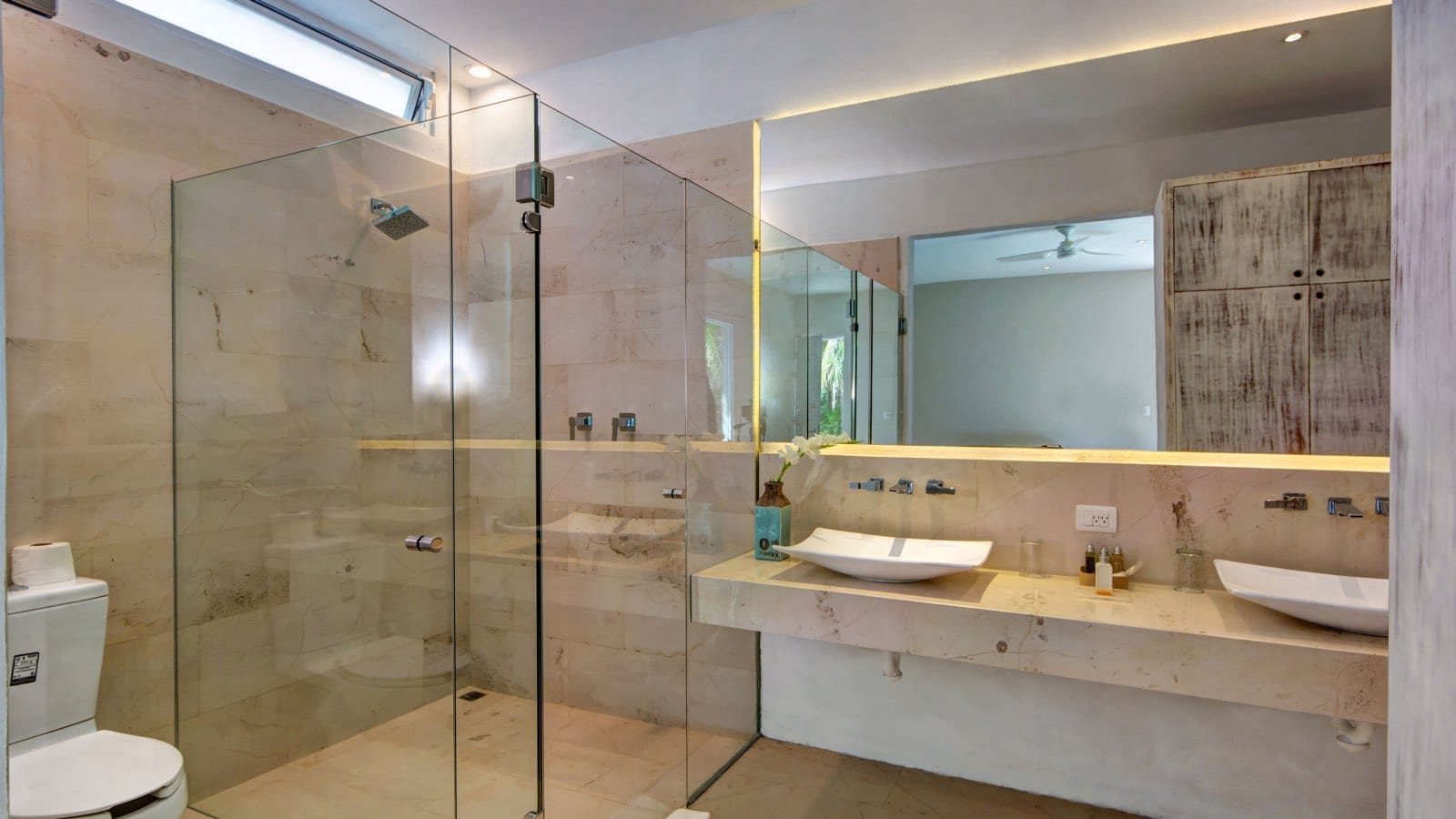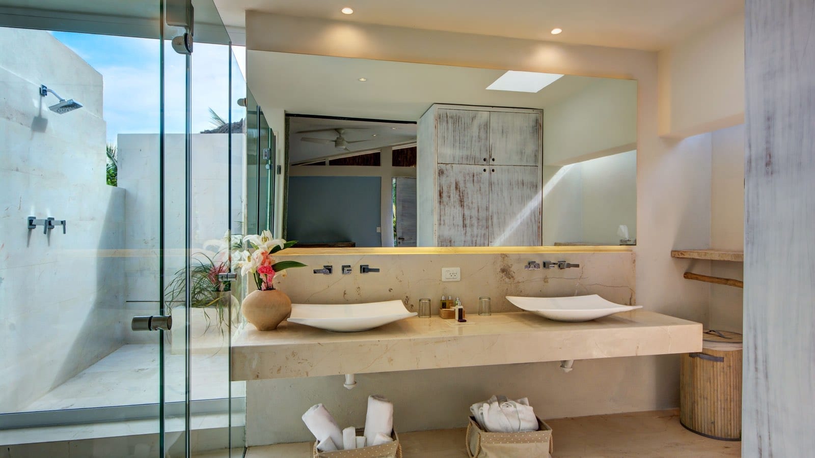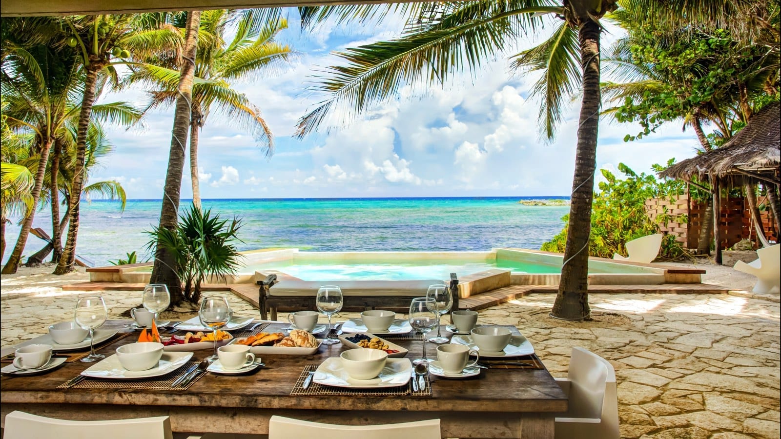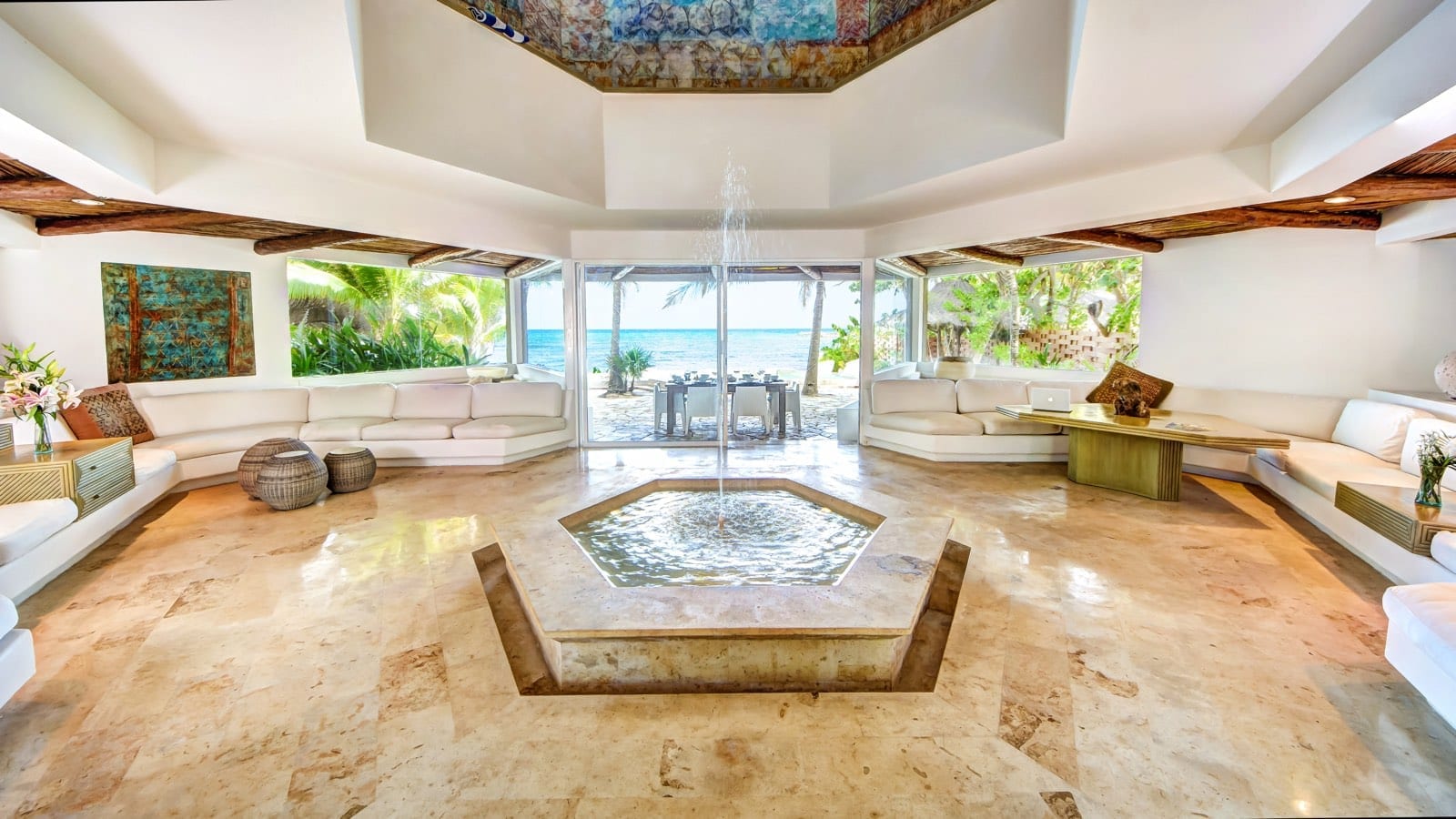 Originally designed as two independent villas, Casa del Agua and Zacil Na have been thoughtfully combined to accommodate larger groups within a single, cohesive estate. The layout allows guests to enjoy generous indoor and outdoor living areas, complemented by two swimming pools and expansive terraces. This configuration offers flexibility for multi-generational families, groups of friends, or parties seeking both shared spaces and the option of separation when desired.