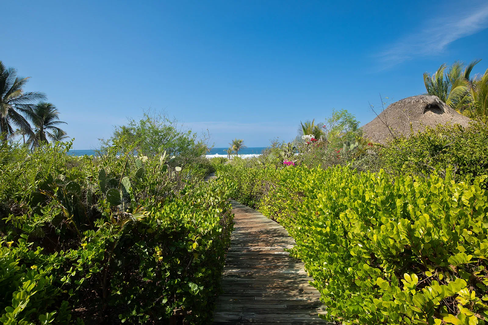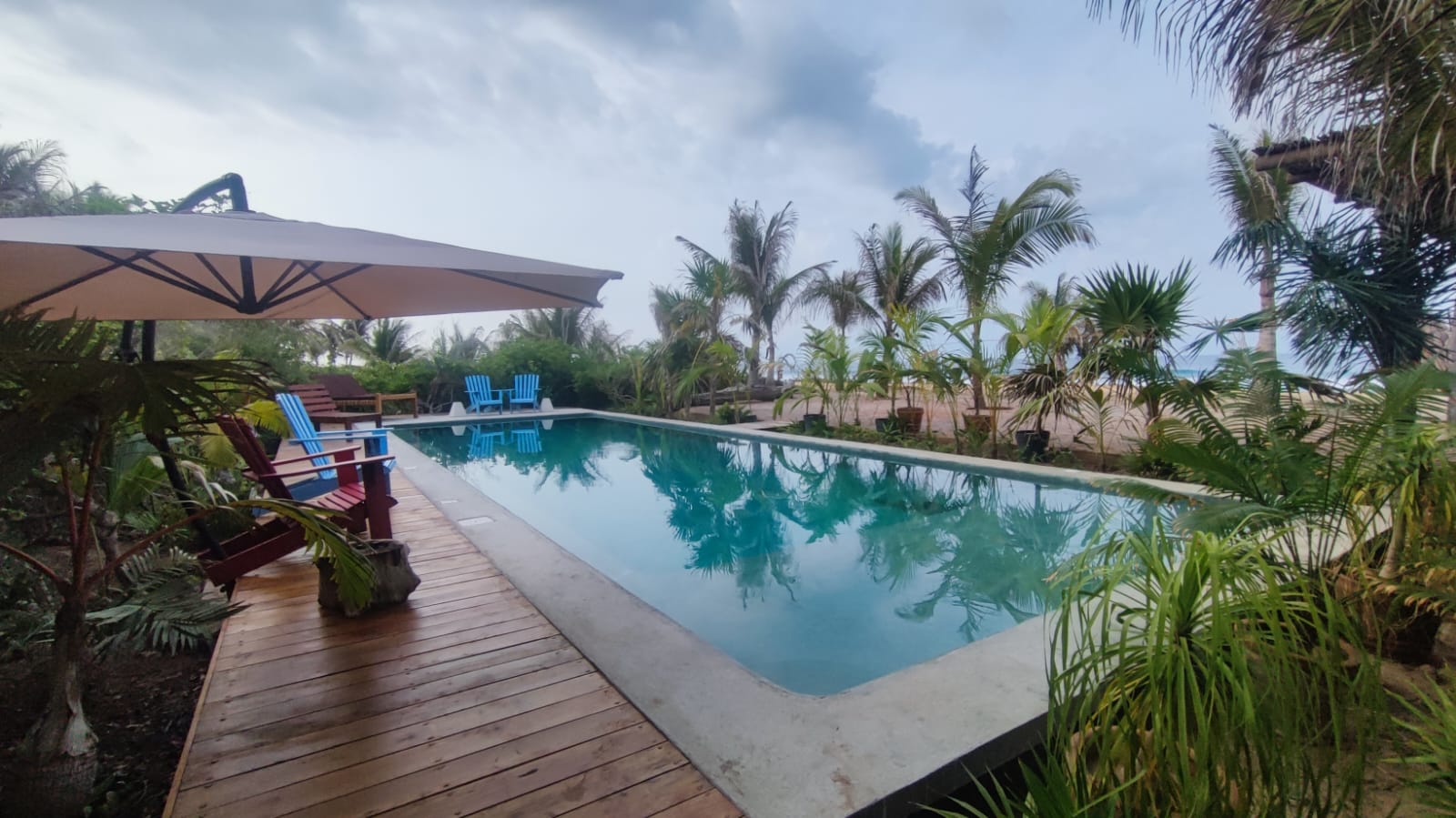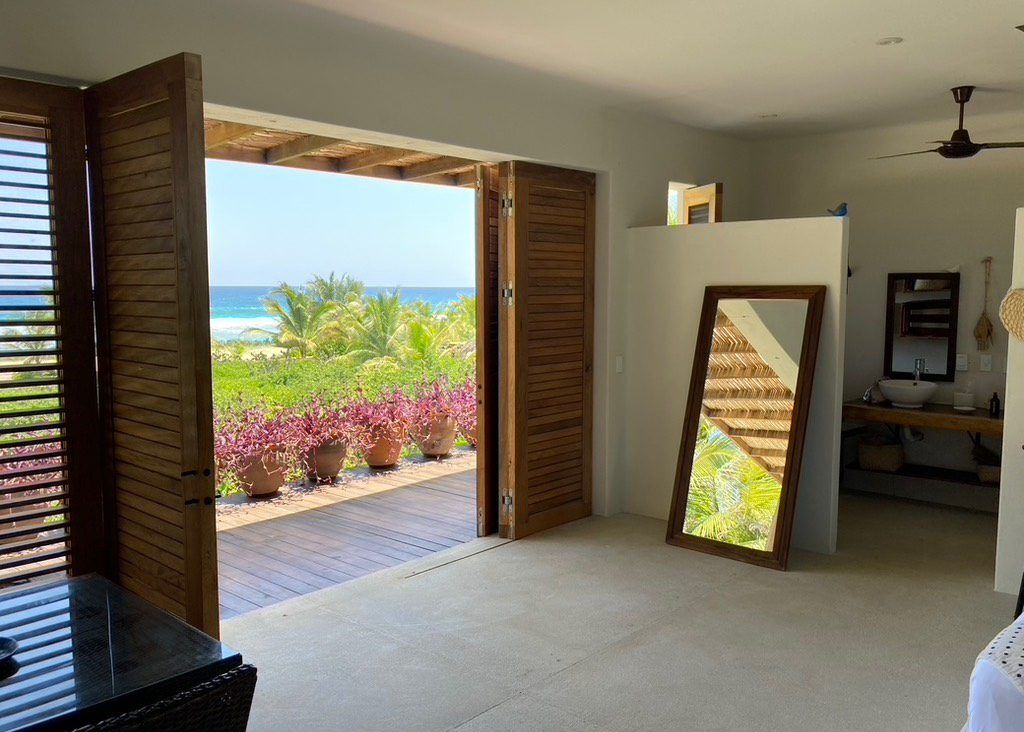 Our tropical abode emphasizes its stunning Oaxacan setting. Though laden with modern amenities, it’s designed to harmonize with nature, providing a tranquil, immersive experience. Central to the home is its open design, encompassing common living areas, pool zones, and beachfront palapas. These spots are perfect for relaxing, whether lounging beachside, enjoying the scenic views from our shaded areas, or indulging in a delightful meal on the terrace.