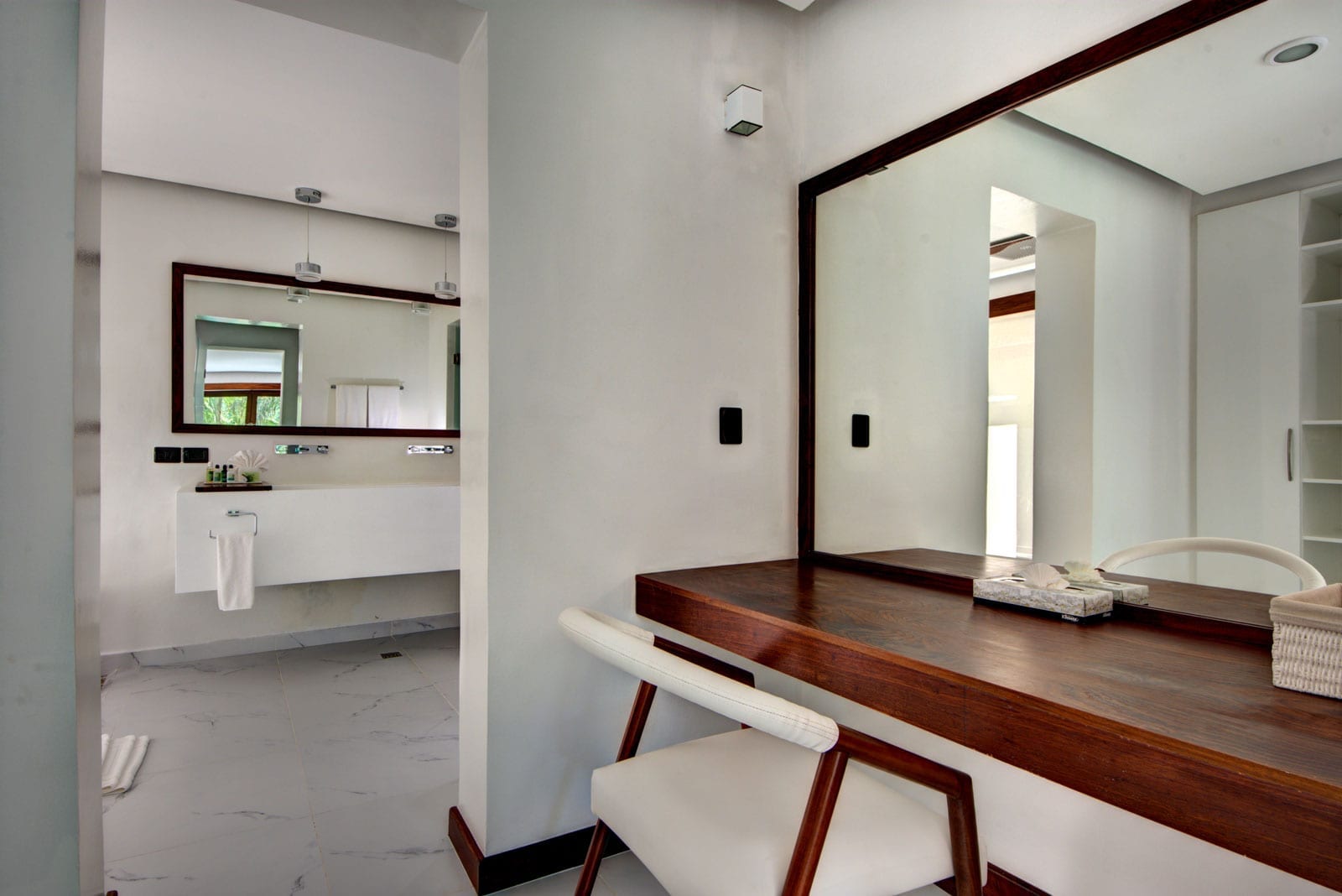 Designed to welcome larger groups, the villa’s eight suites each come with a private bathroom, giving every guest a self-contained space to retreat to at the end of the day. The mix of king and queen-bed suites allows for flexible sleeping arrangements, while the overall layout supports both group gatherings and quieter corners for downtime.