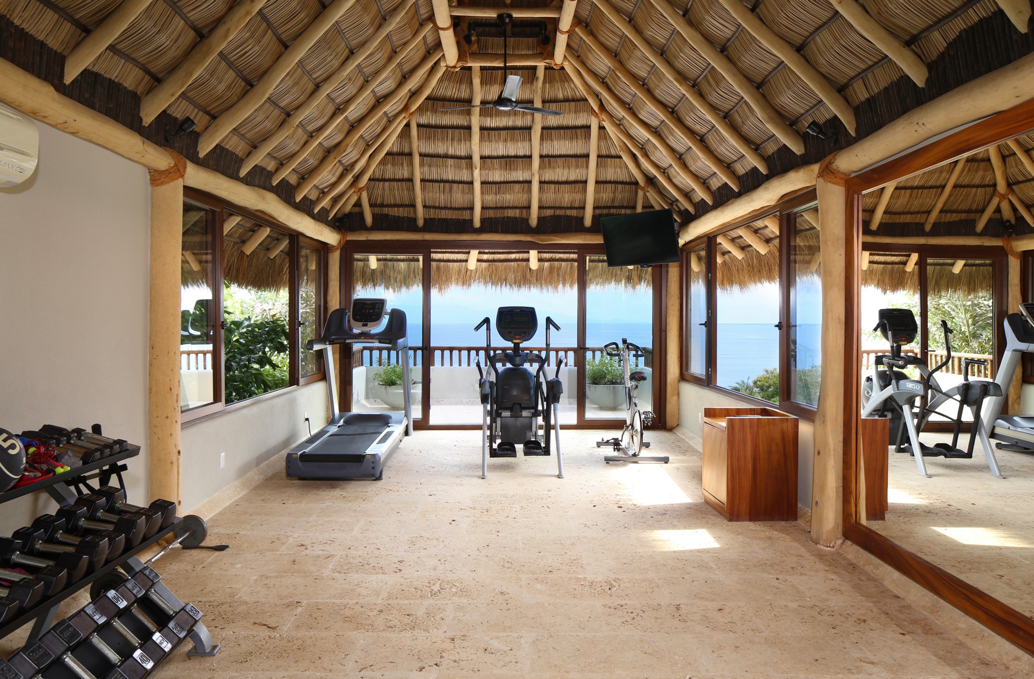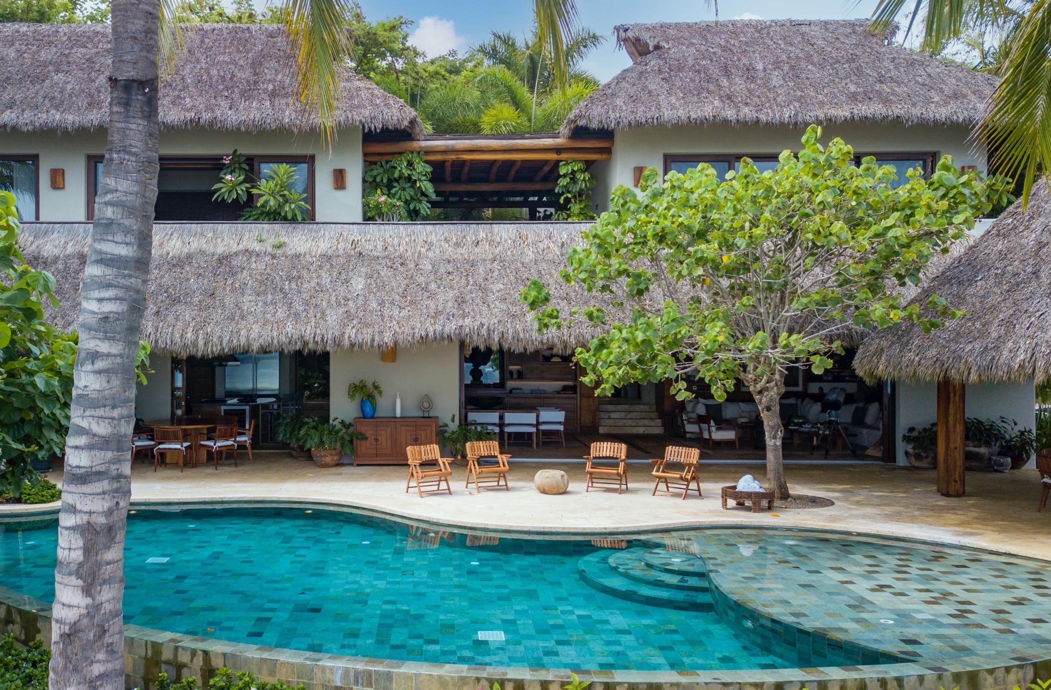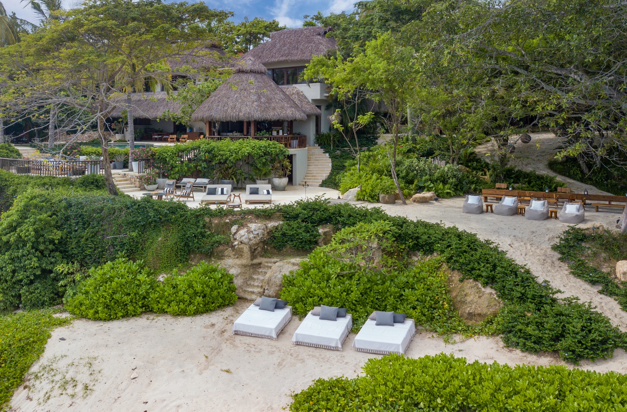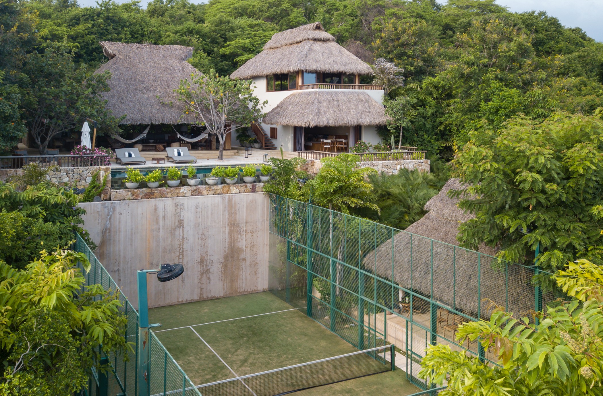 The villa houses seven lavish bedrooms, full baths, two refined studios, a gym, and a paddle tennis court. With 12,000 square feet of entertaining space, it features an infinity pool and an ocean-facing surf bar. Dining options vary from an intimate palapa seating ten to a grander palapa with sprawling benches for great gatherings. Dive into the saltwater swimming pool or unwind in the Jacuzzi.