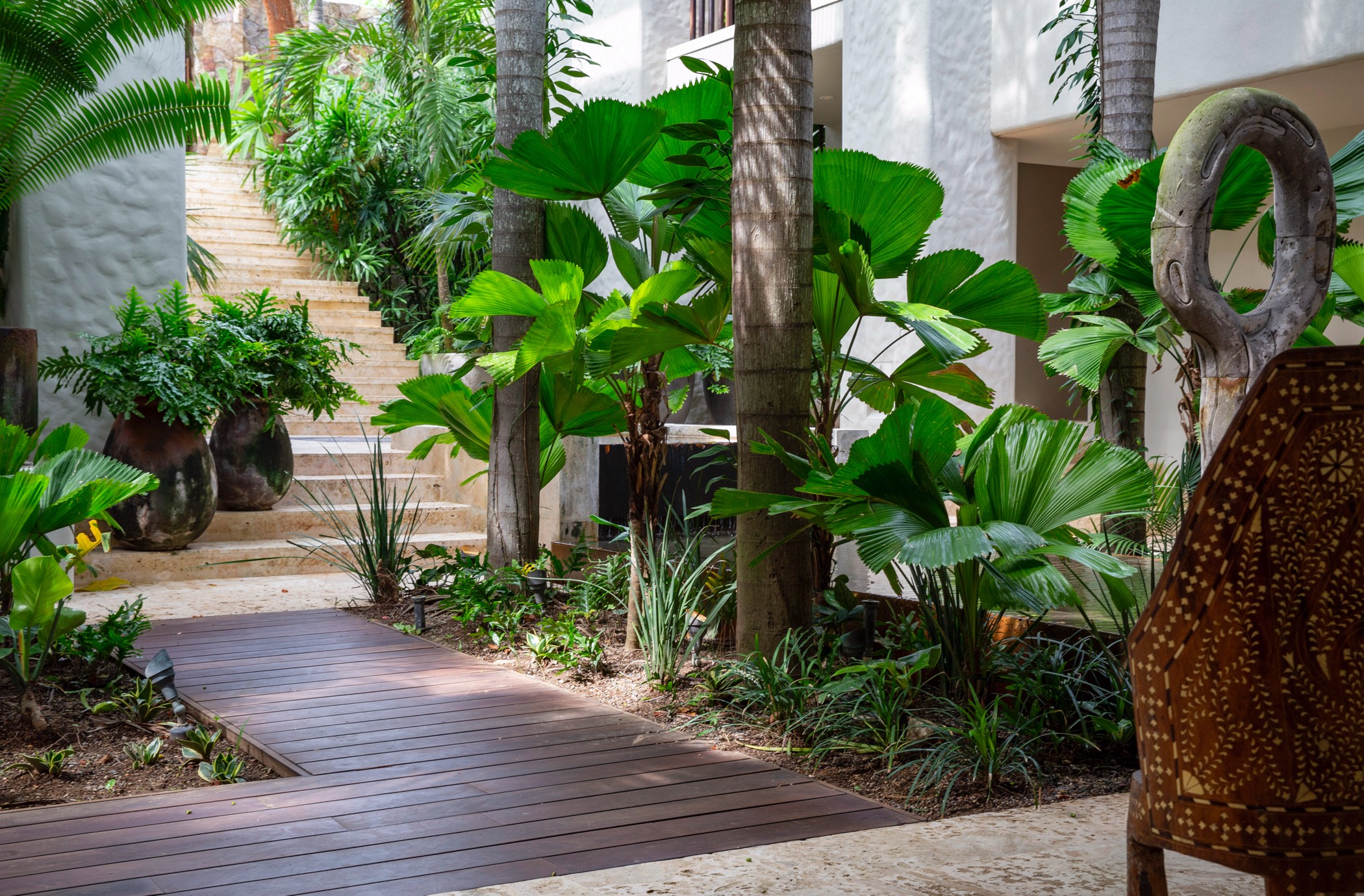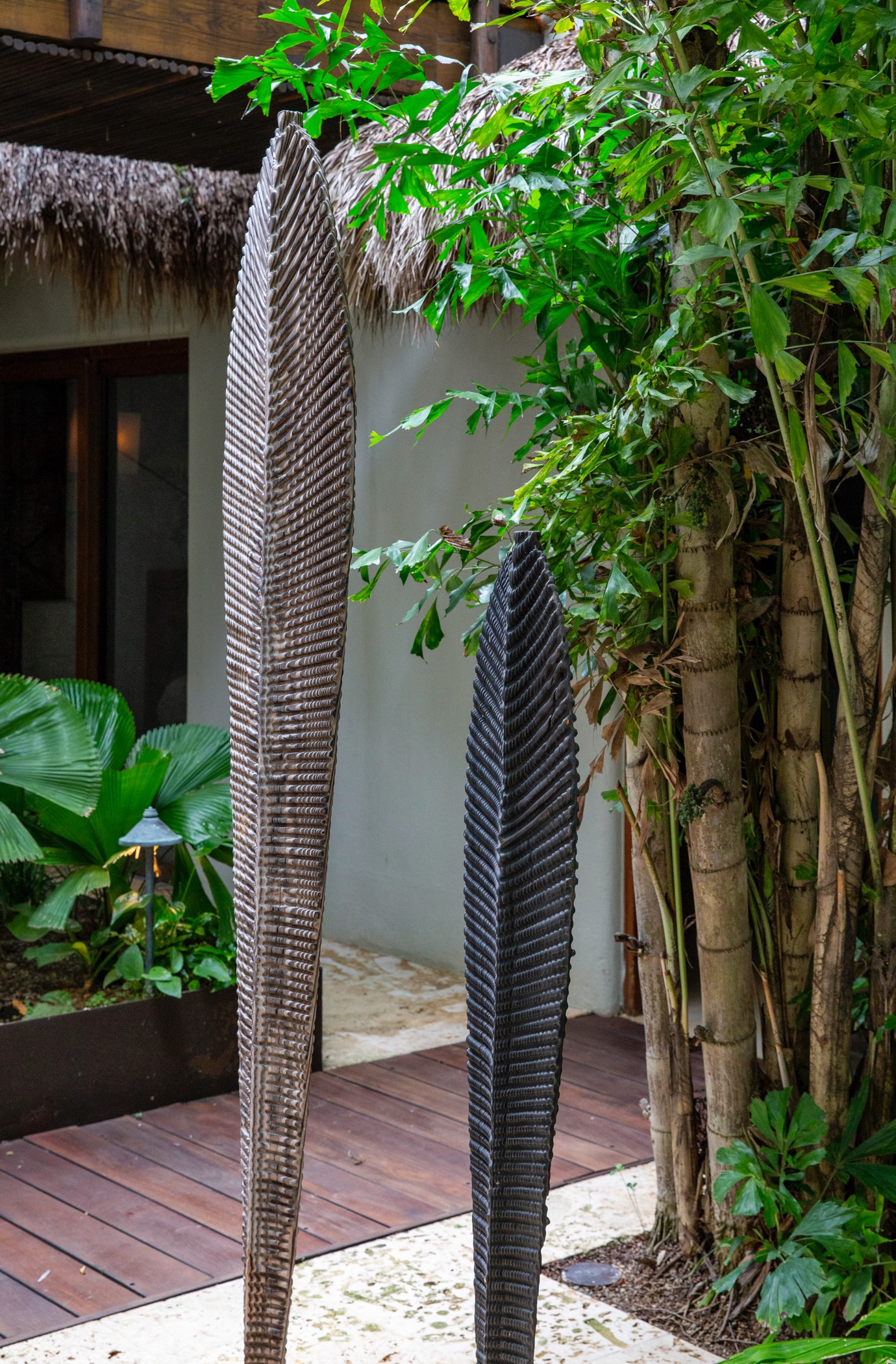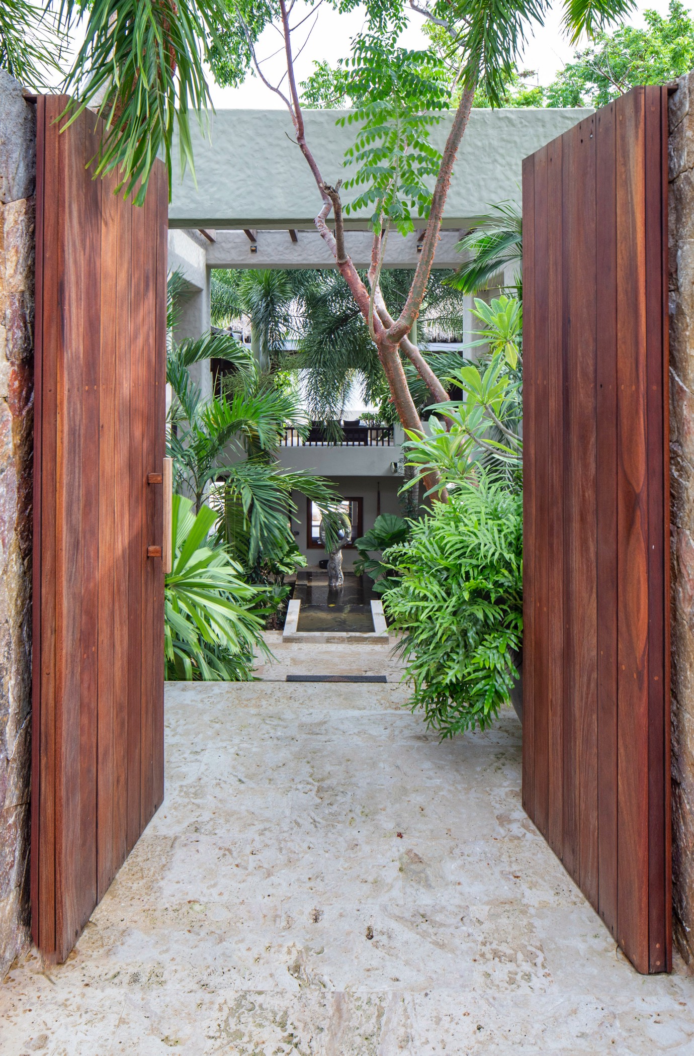 As you enter, an evocative mural sets the tone for an estate where nature and design converge. Romantic outdoor lounges, cascading water features, majestic wooden palapas, and intricate stonework contribute to the villa’s charm. The architecture and landscape merge harmoniously, ensuring the boundaries between indoors and outdoors effortlessly blur.