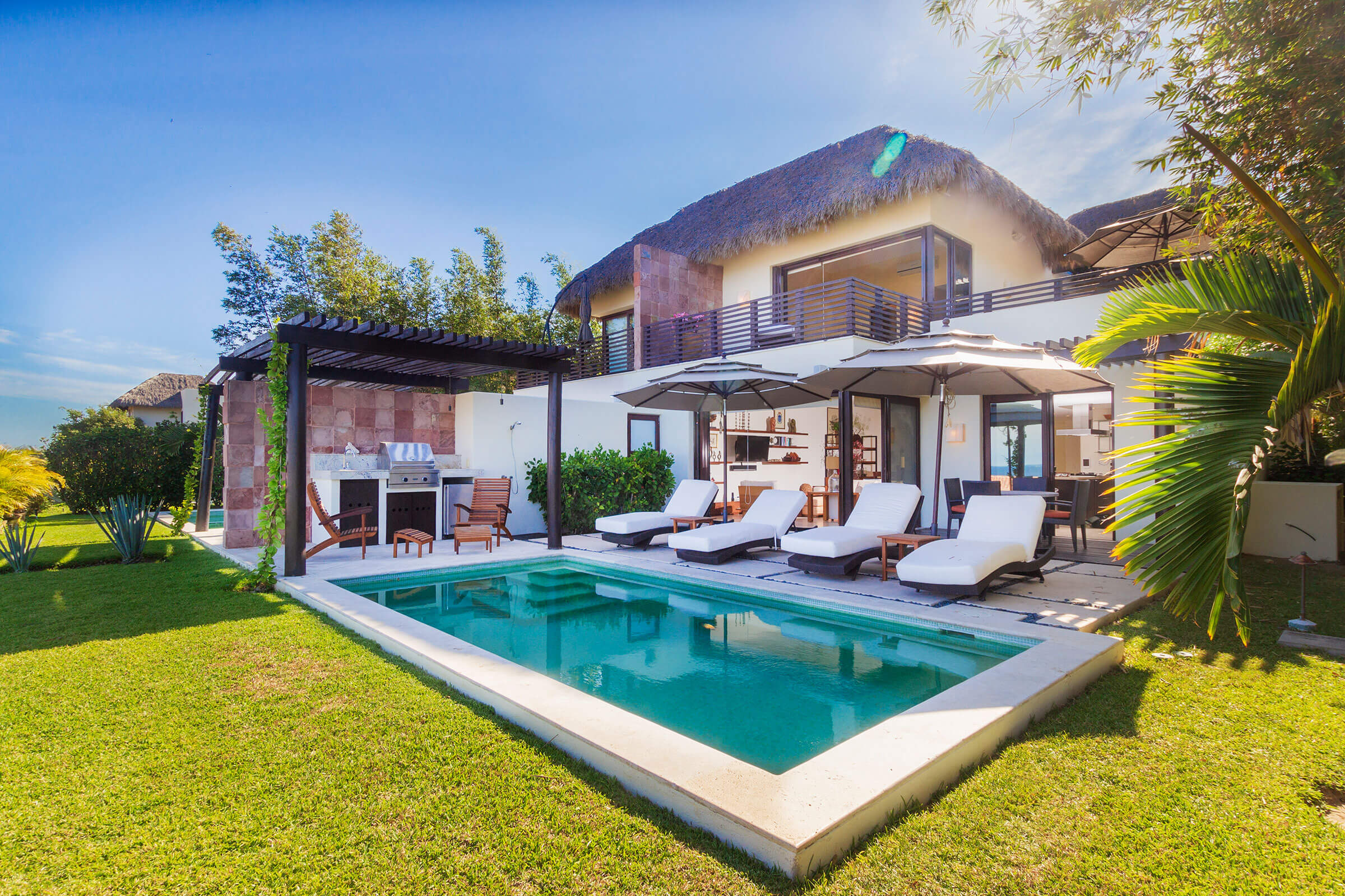 Experience the epitome of luxury at Villa Aquamarina, situated in the prestigious Porta Fortuna community in Punta Mita, Mexico. This two-story casita spans approximately 3,807 square feet and seamlessly blends indoor and outdoor living spaces. With its stunning golf course and ocean views, Villa Aguamarina provides an unmatched vacation experience for up to 10 guests.