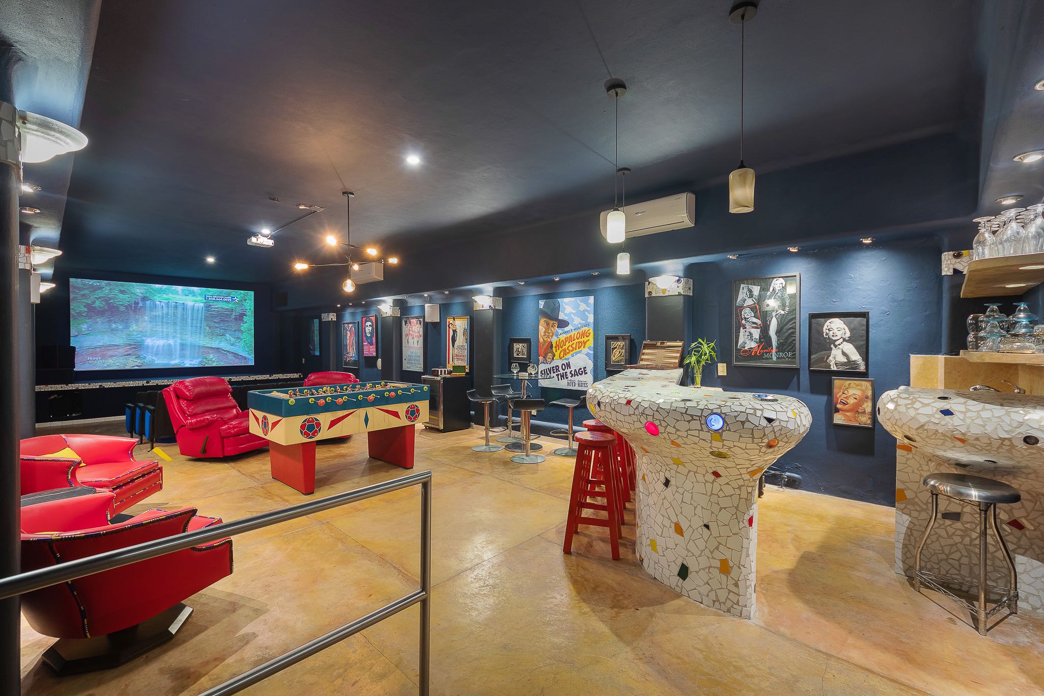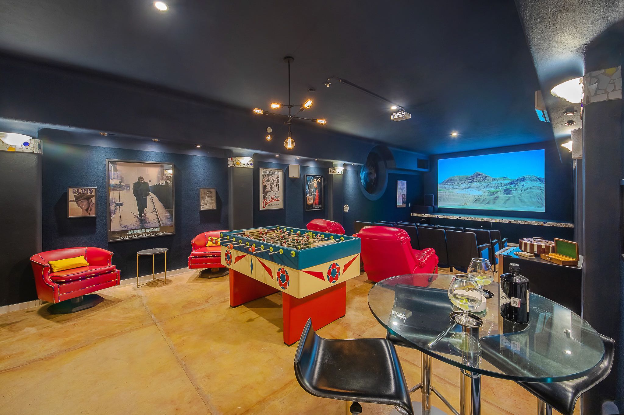 Villa Balboa offers a range of luxurious amenities, including a heated infinity pool, a private movie theater, and an elevator for easy access.