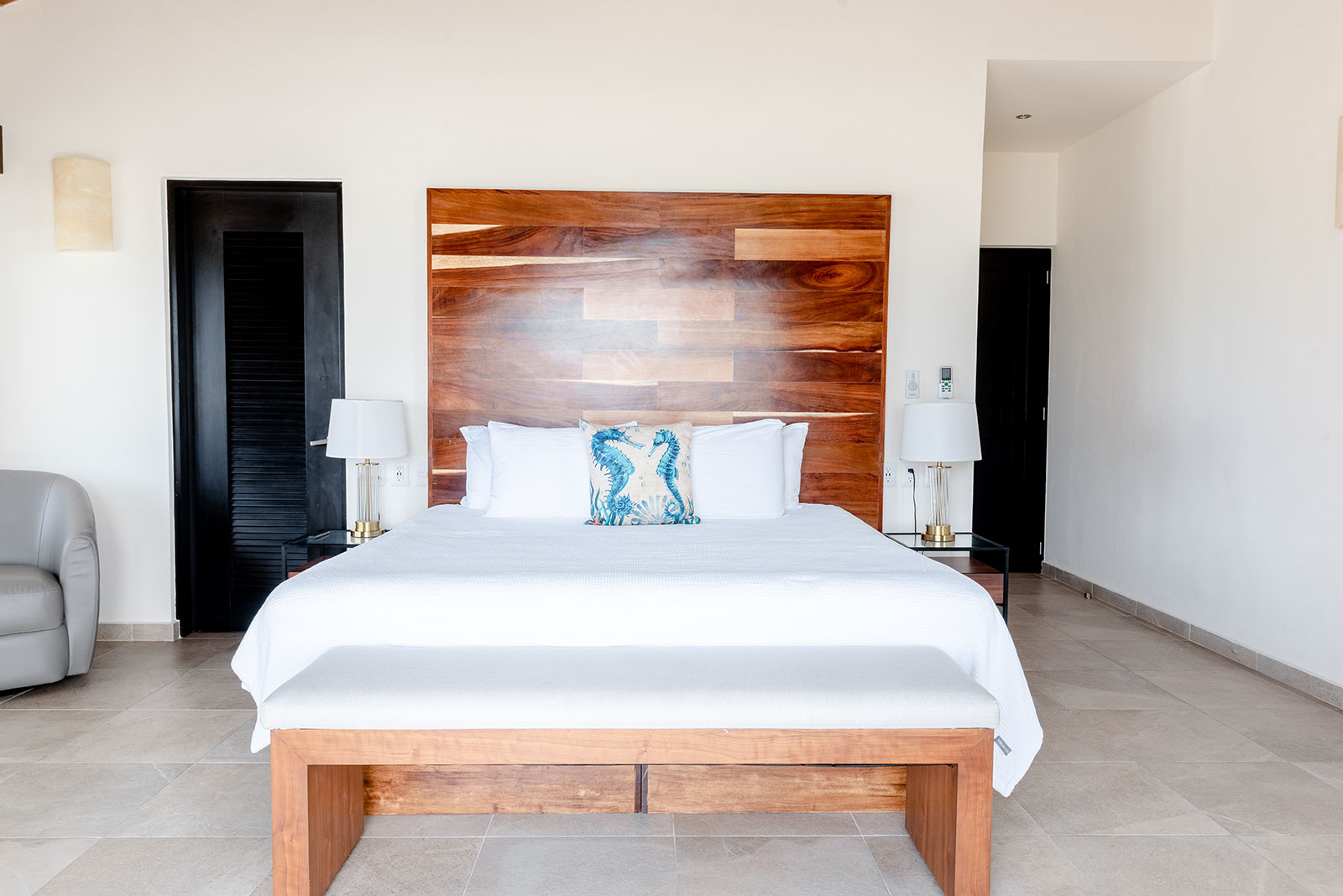 The home’s layout is conceived for comfort and simplicity, with generous interiors that feel bright and modern. Four bedrooms, all with king-size beds, provide a cohesive sense of space for families or small groups, while three ensuite bathrooms add an extra layer of privacy. Upstairs, the balcony and second-floor rooms maintain a constant visual connection to the water, reinforcing the villa’s close relationship with the beach.