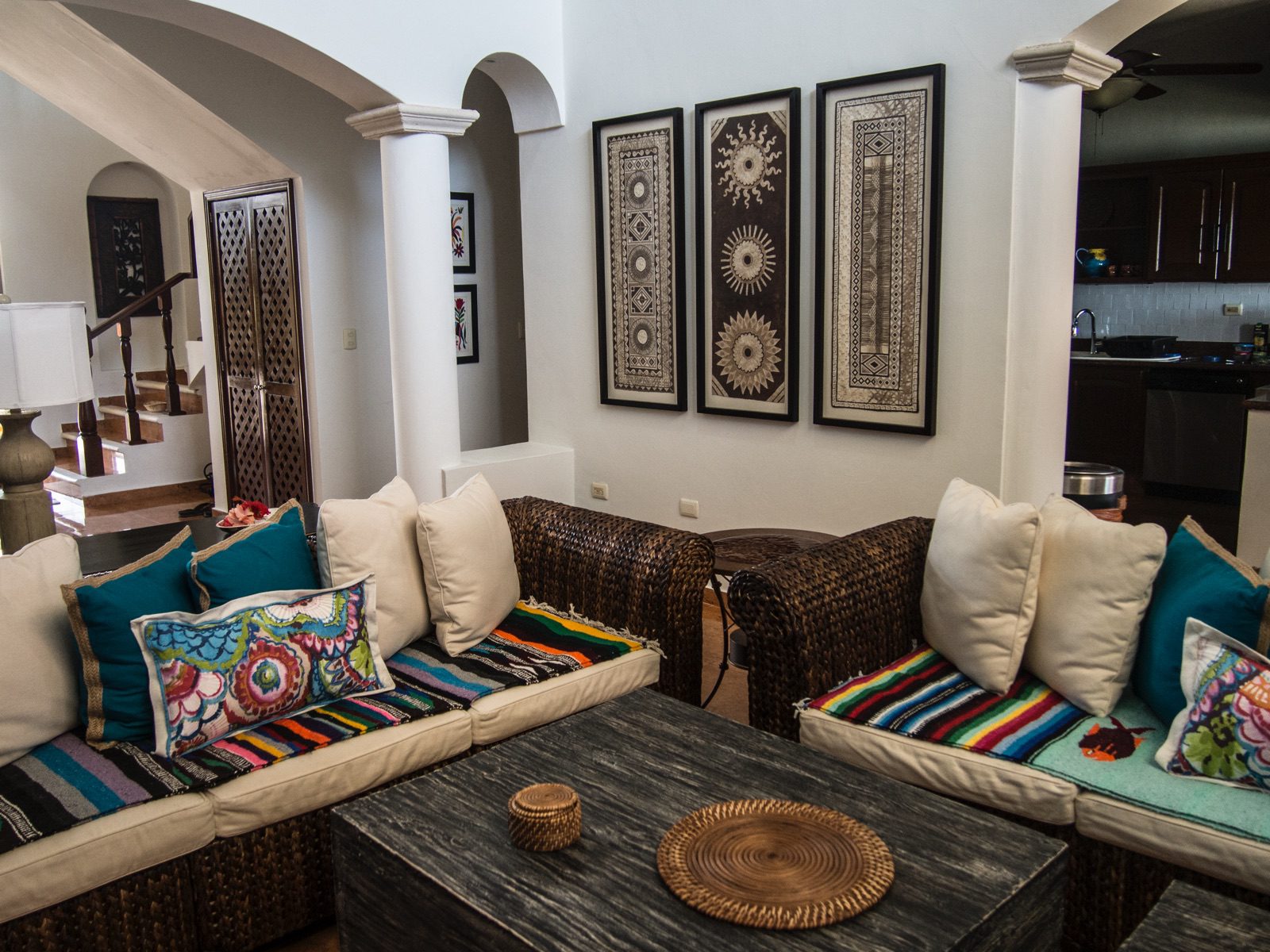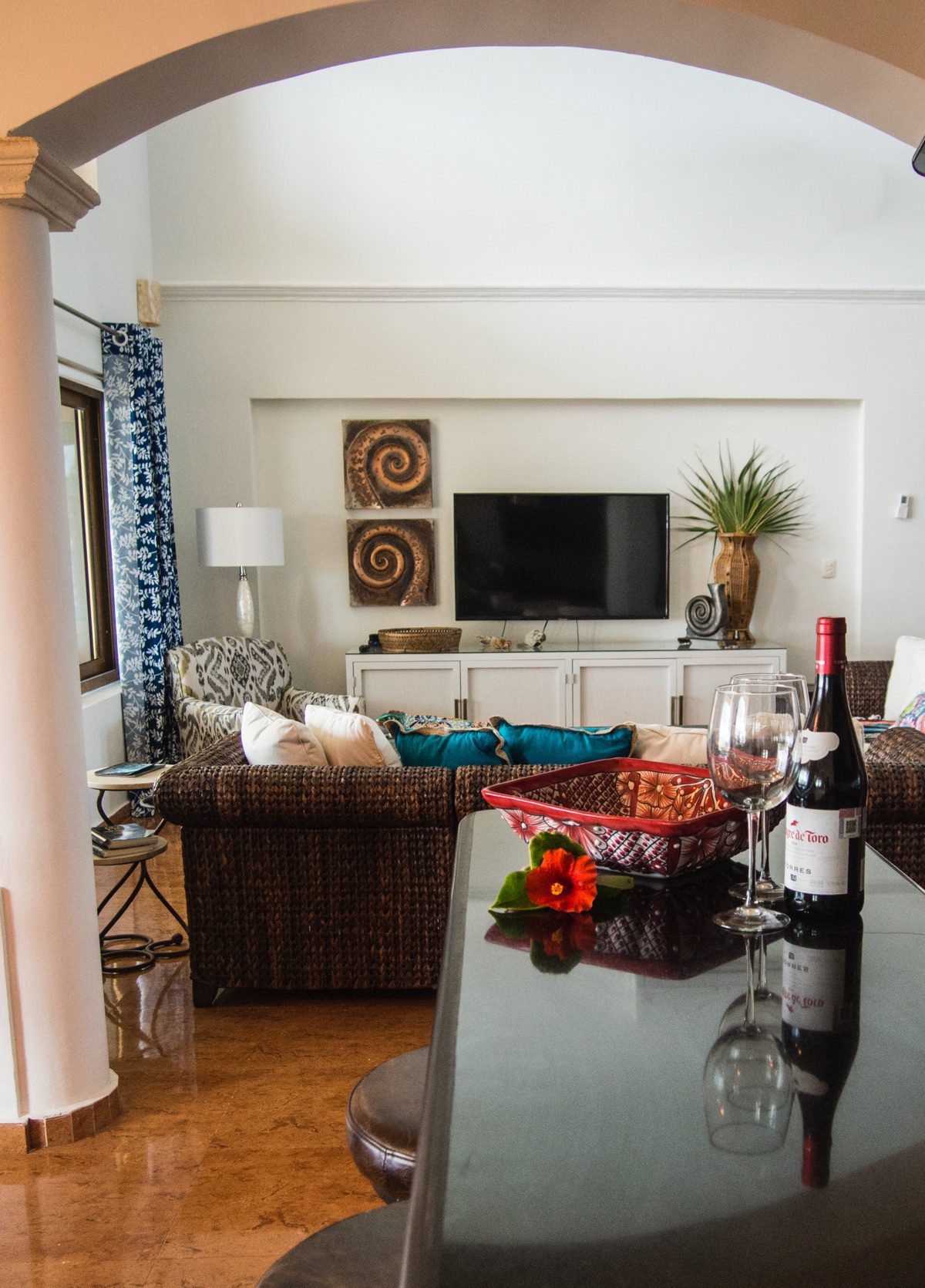 Designed by renowned local architect Jesús Romero, the property is a newly built, five-bedroom residence with four and a half bathrooms, conceived for guests who appreciate thoughtful architecture and materials. Mahogany doors and cabinetry, granite countertops, and ceramic tile floors create a cohesive aesthetic that feels both solid and understated. The overall scale is generous enough for families or small groups, while remaining intimate enough to feel like a private home rather than a resort.