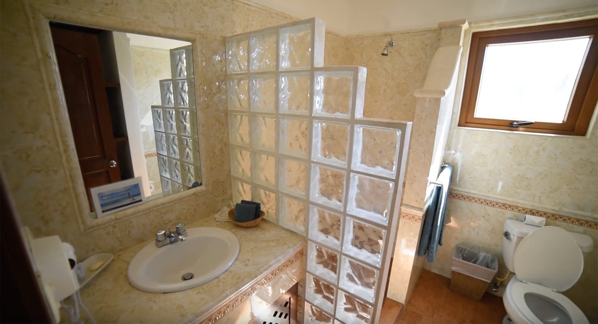 King size bed, Air conditioning, Ceiling fan, Hairdryer, Safety box, Shared bathroom with bedroom 3, Toiletries